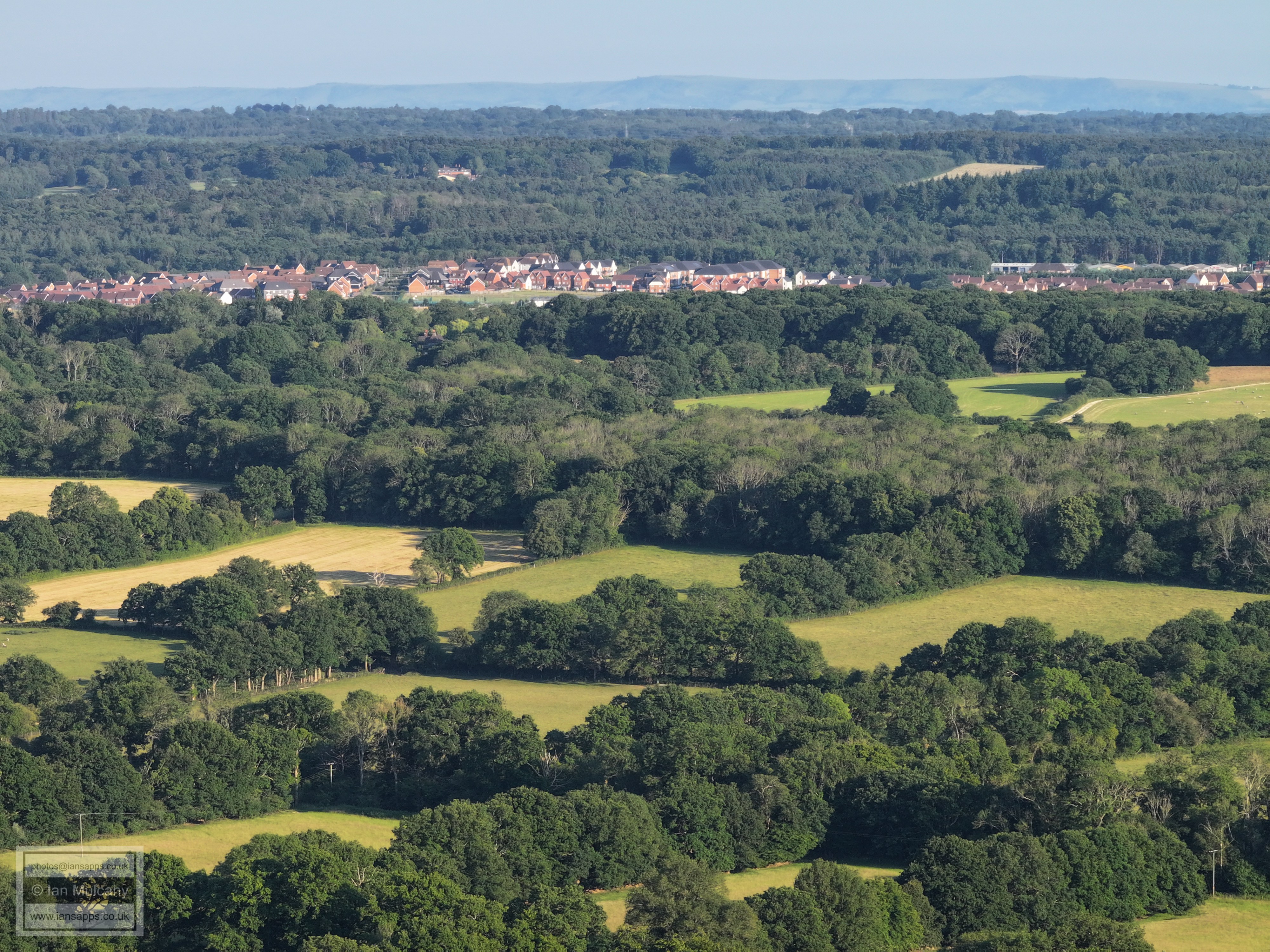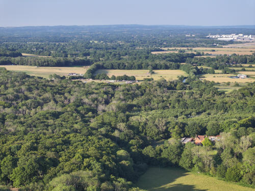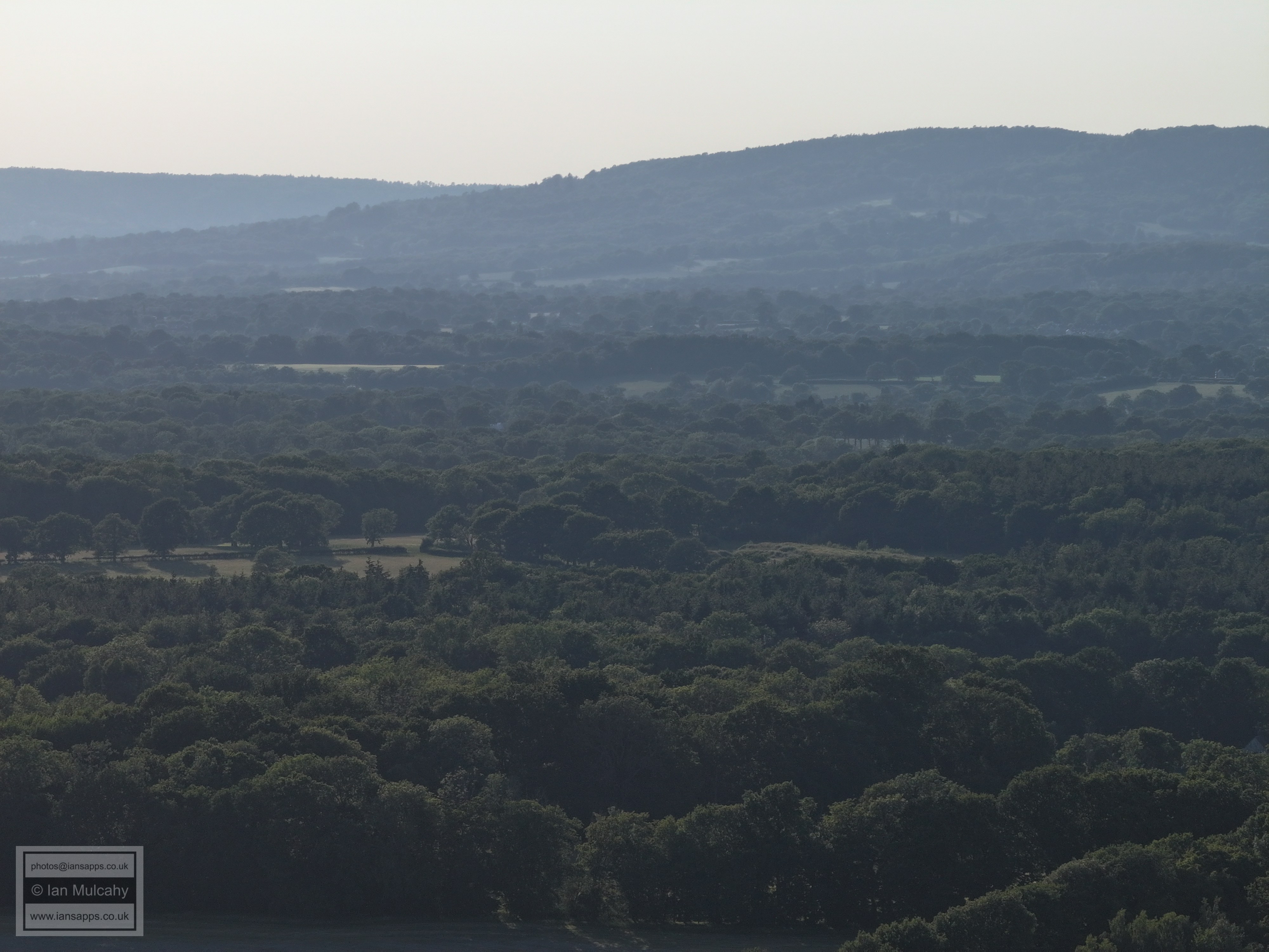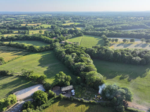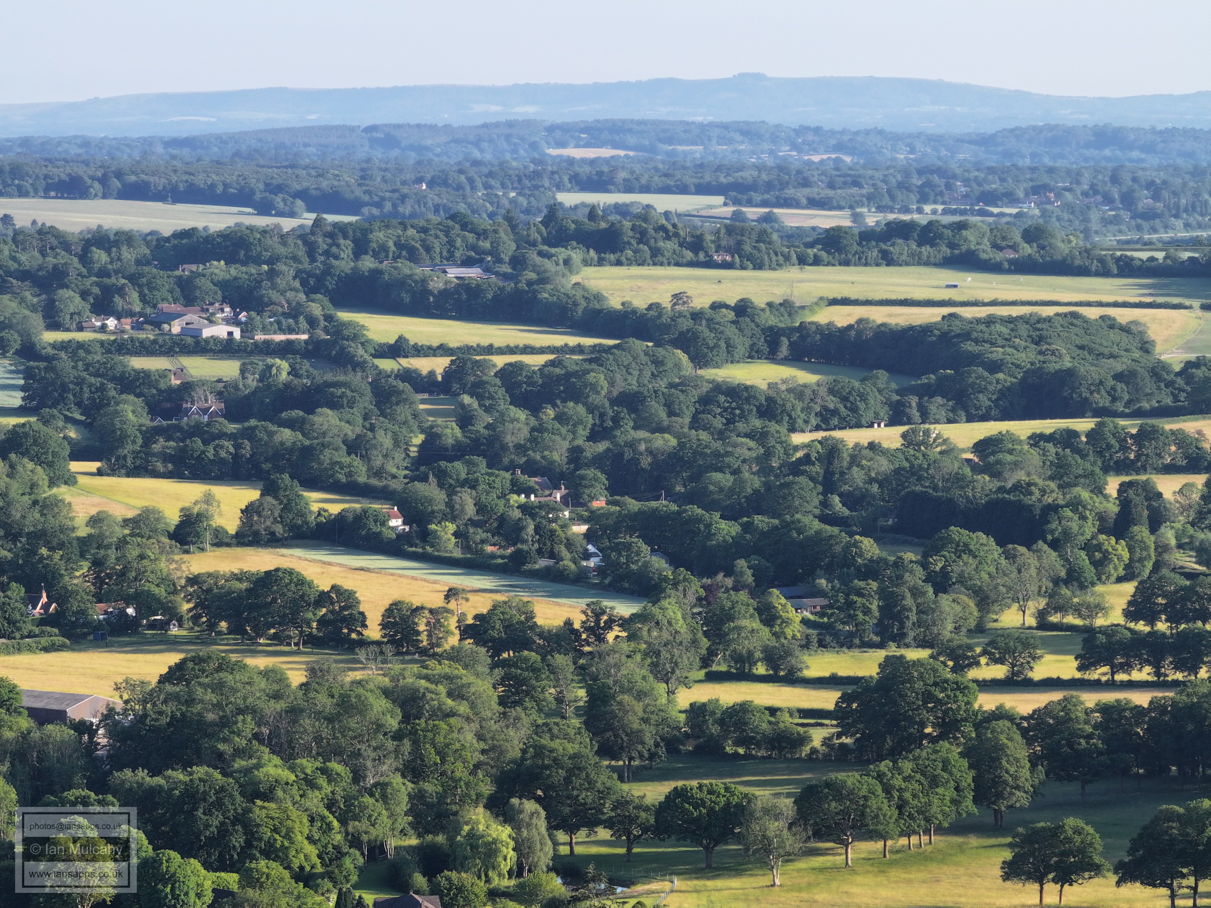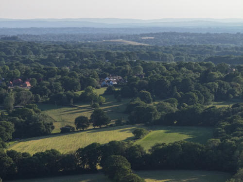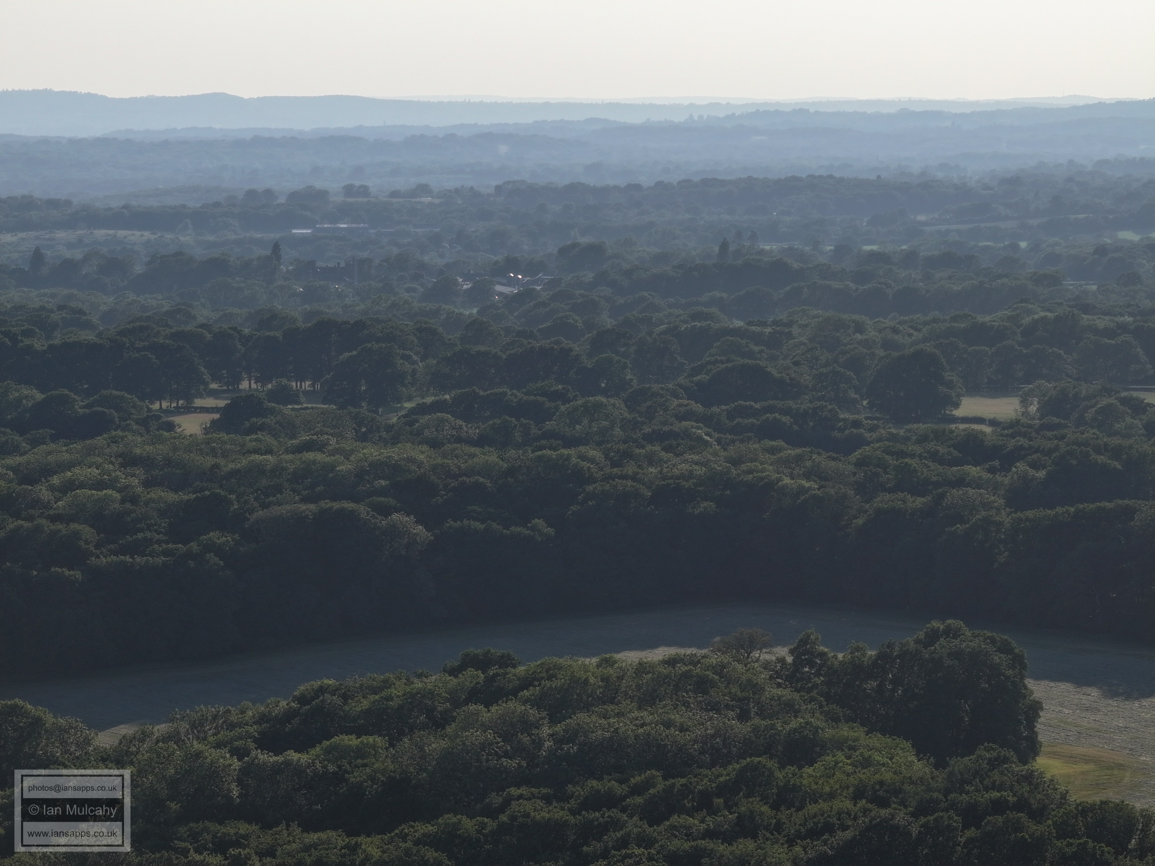 61 aerial photographs, of varying focal lengths, taken behind from a field west of Langhurst Lane close to Peters Farm in Rusper, West Sussex on the evening of 18 June 2025. I have annotated some of the photos.