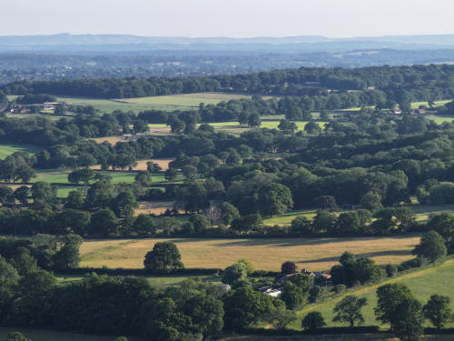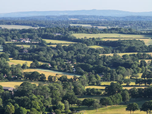 In the foreground on the left is The Mount and a fair way above is St Margaret's Church, Ifield. To the right of the barns at Bonwyckes Farm, just below the church, are the chimneys of Bonwyckes Place. To the right of St Margaret's are the fields of Ifield Court Farm, currently under serious threat of development courtesy of Horsham District Council and Homes England.