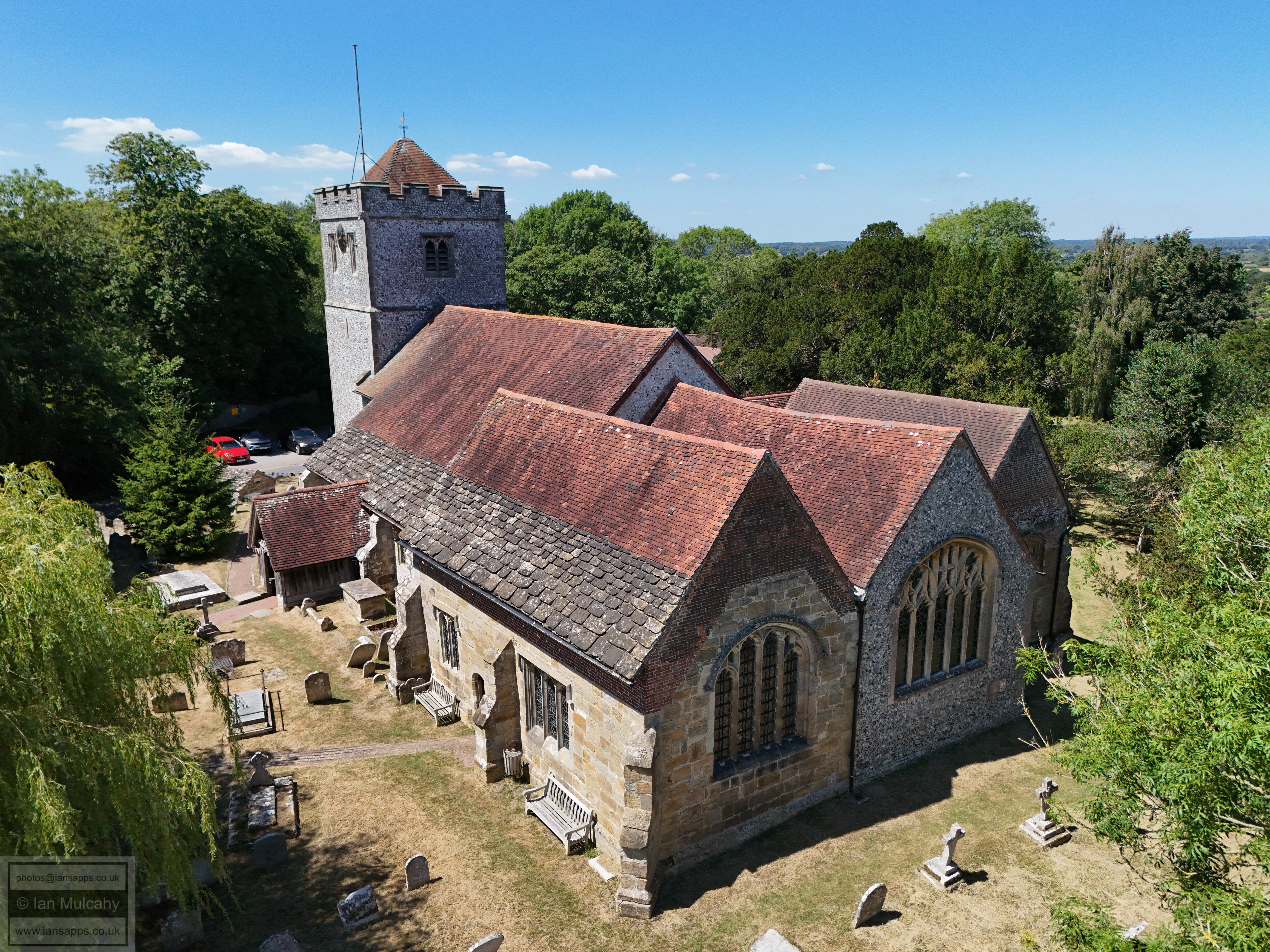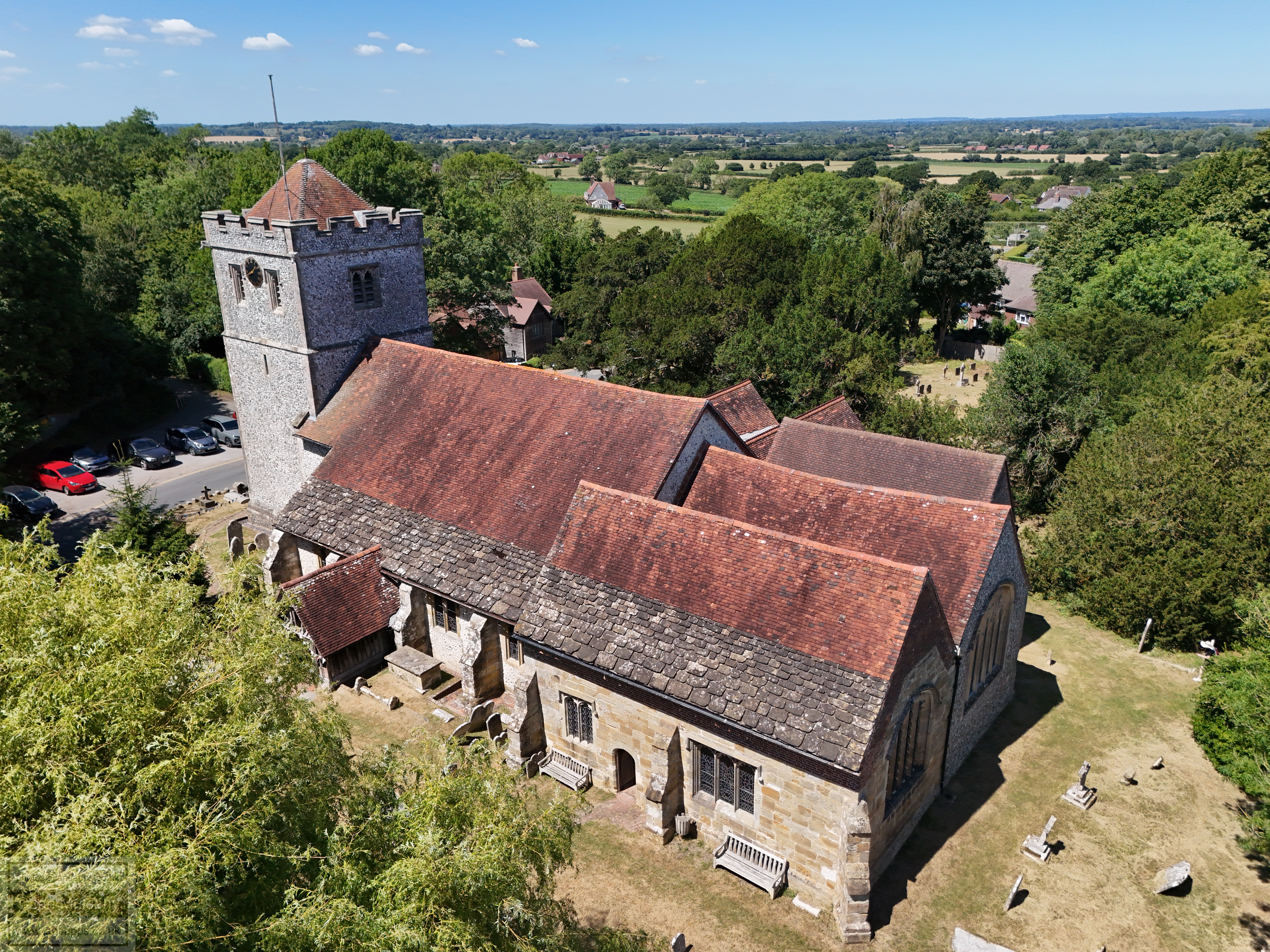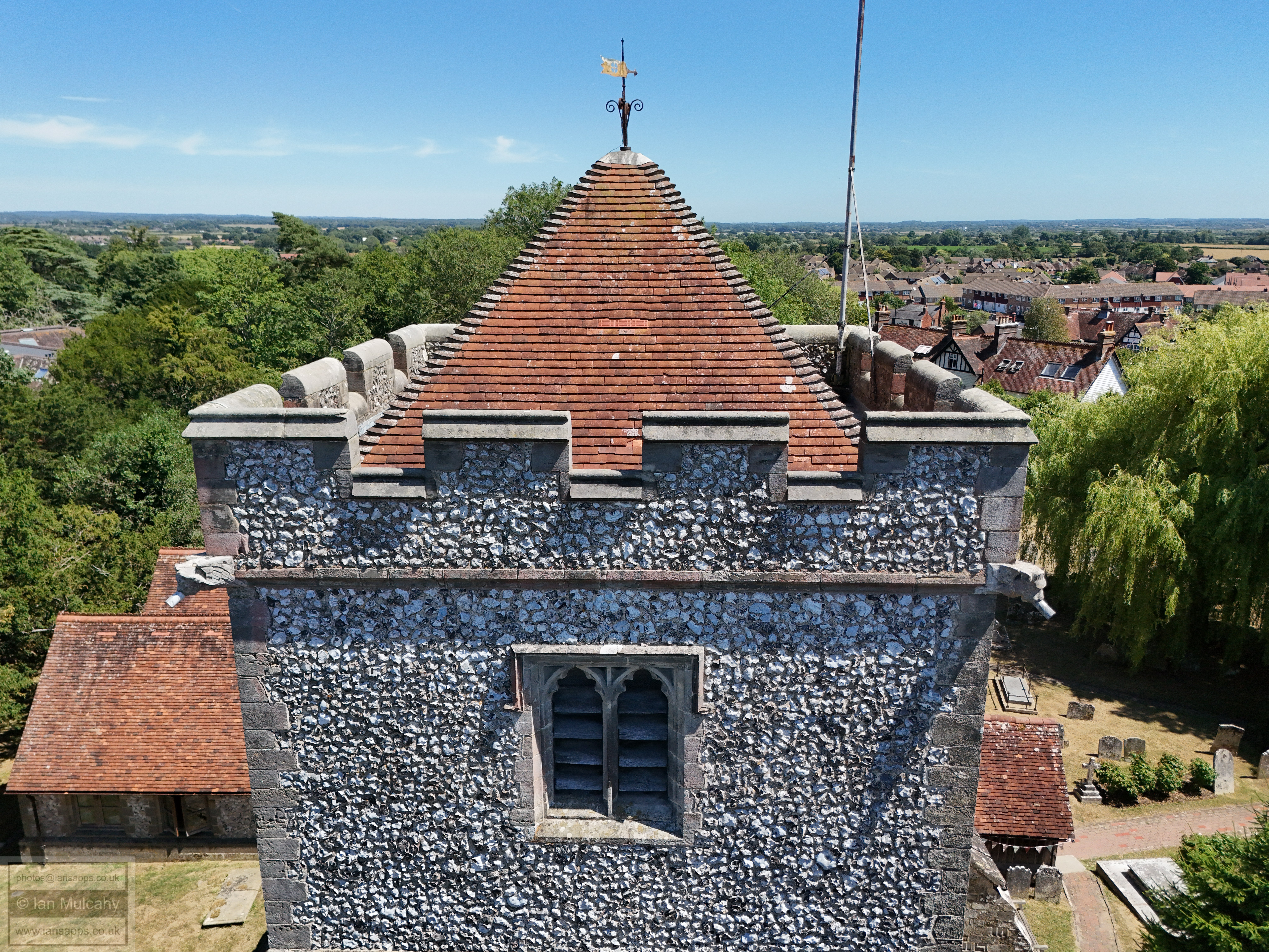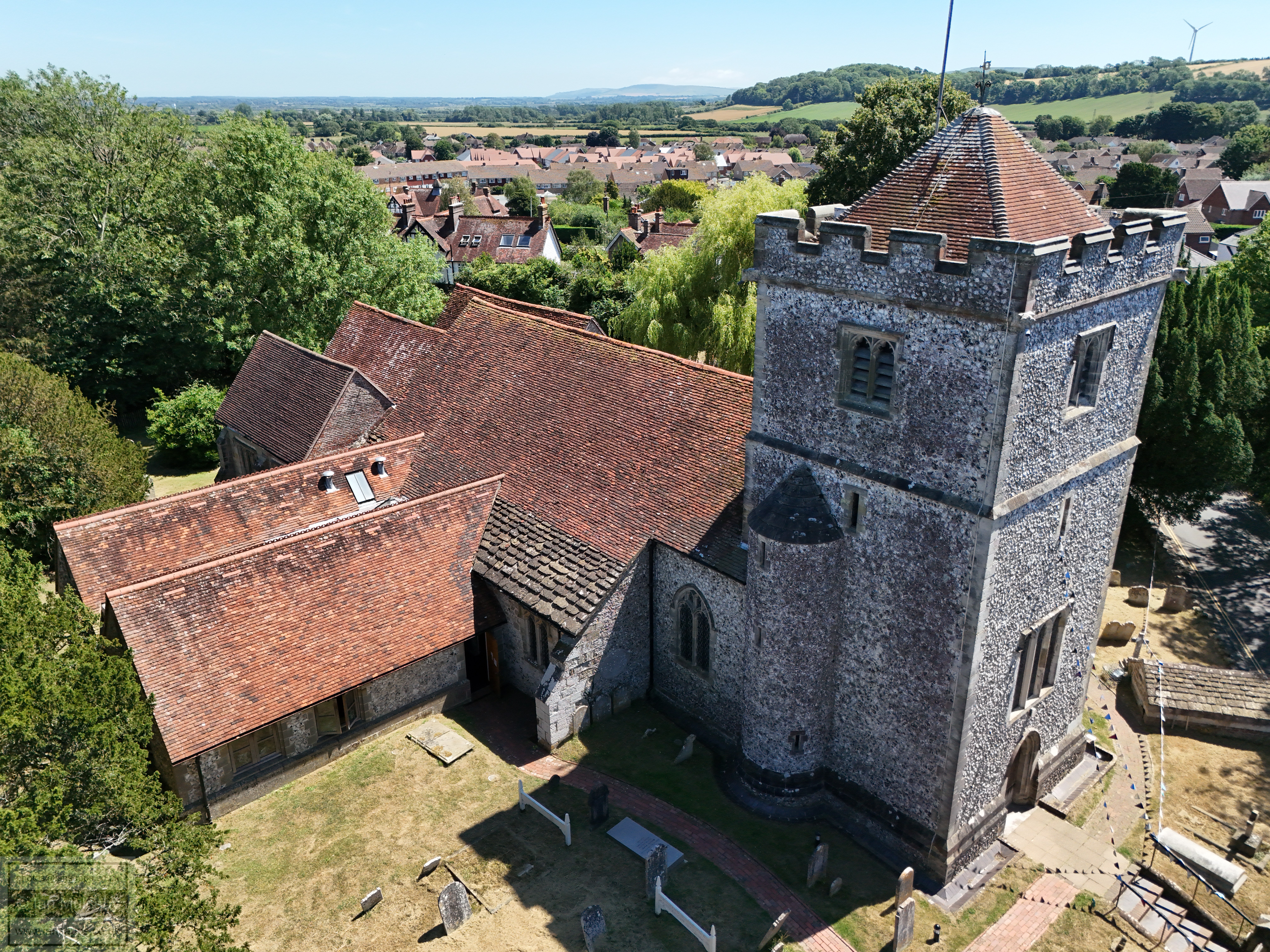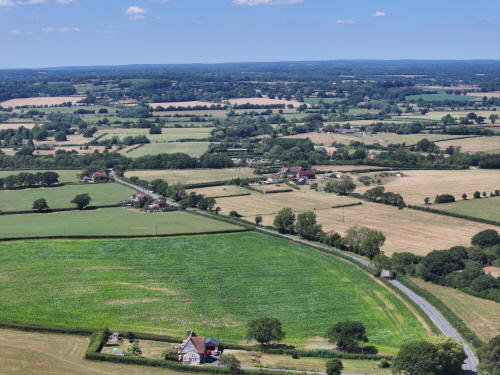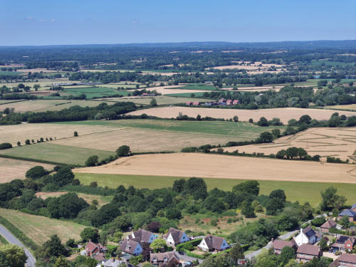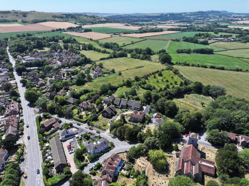 74 aerial photos of varying focal length taken from above the western end of Ringmer Village Green in East Sussex, and a handful around the church with the Mini 4, on 12 July 2025.