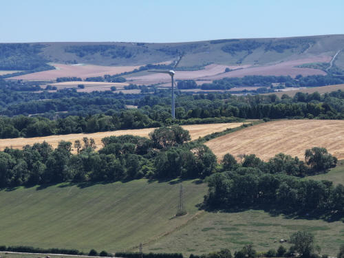 The wind turbine near Glyndebourne with Beddingham Hill behind.