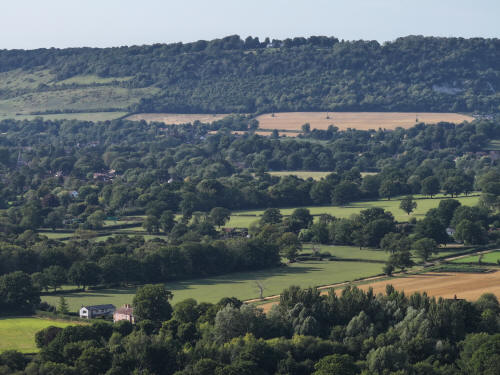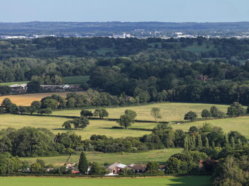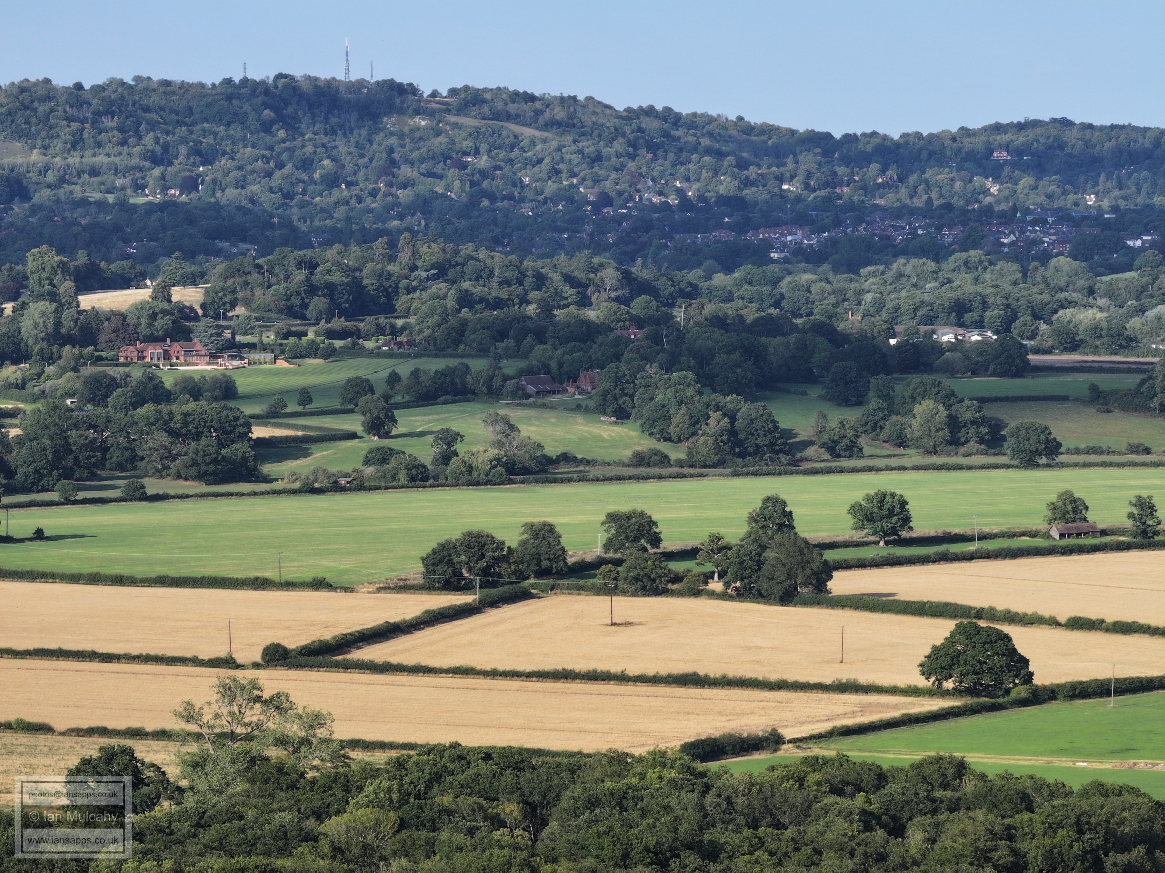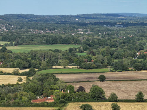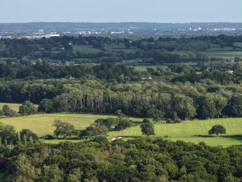 Just left of centre at the very top is Colley Hill Water Tower. Lower down to the right is the windmill on Reigate Heath.