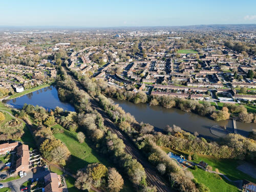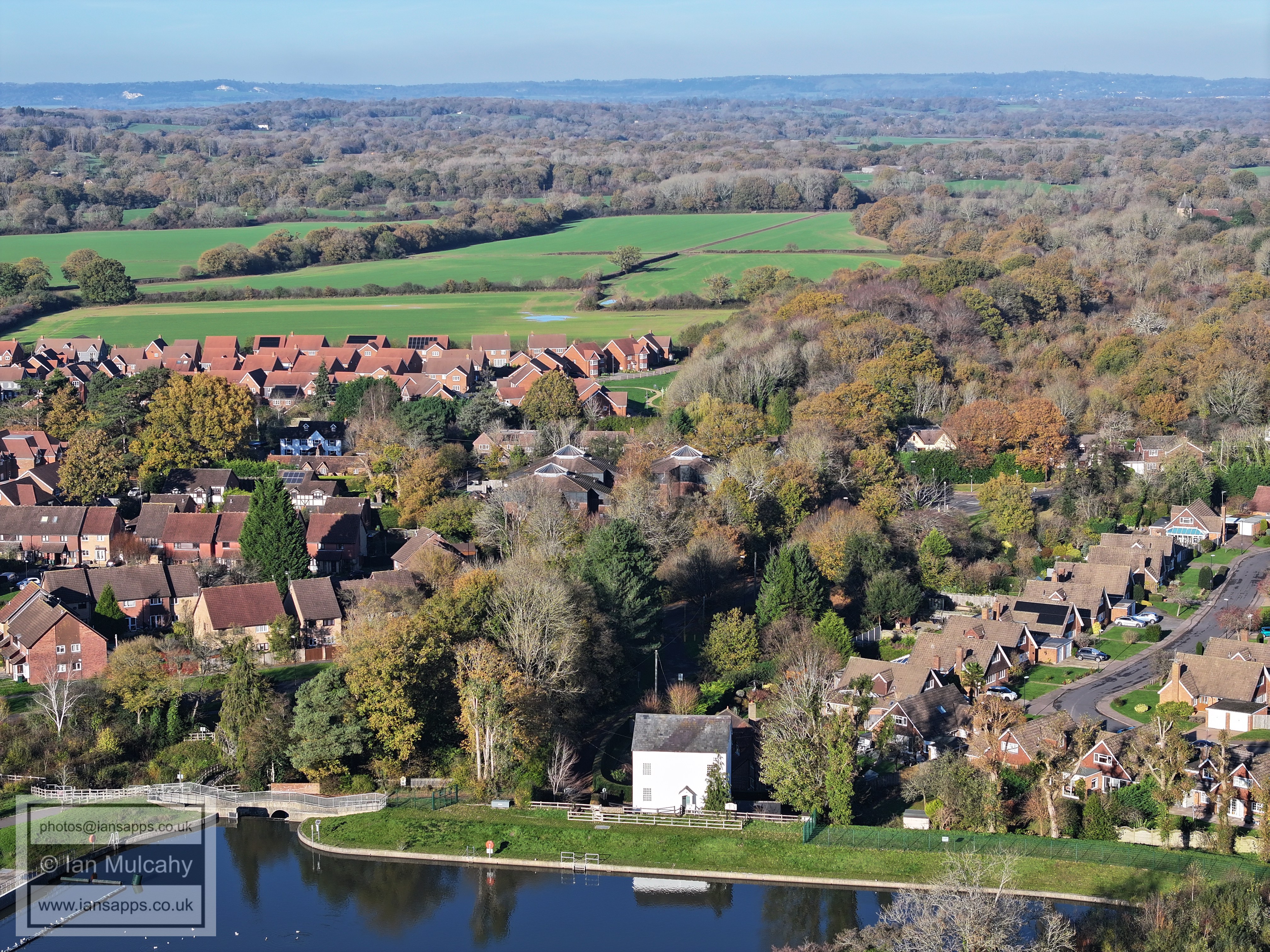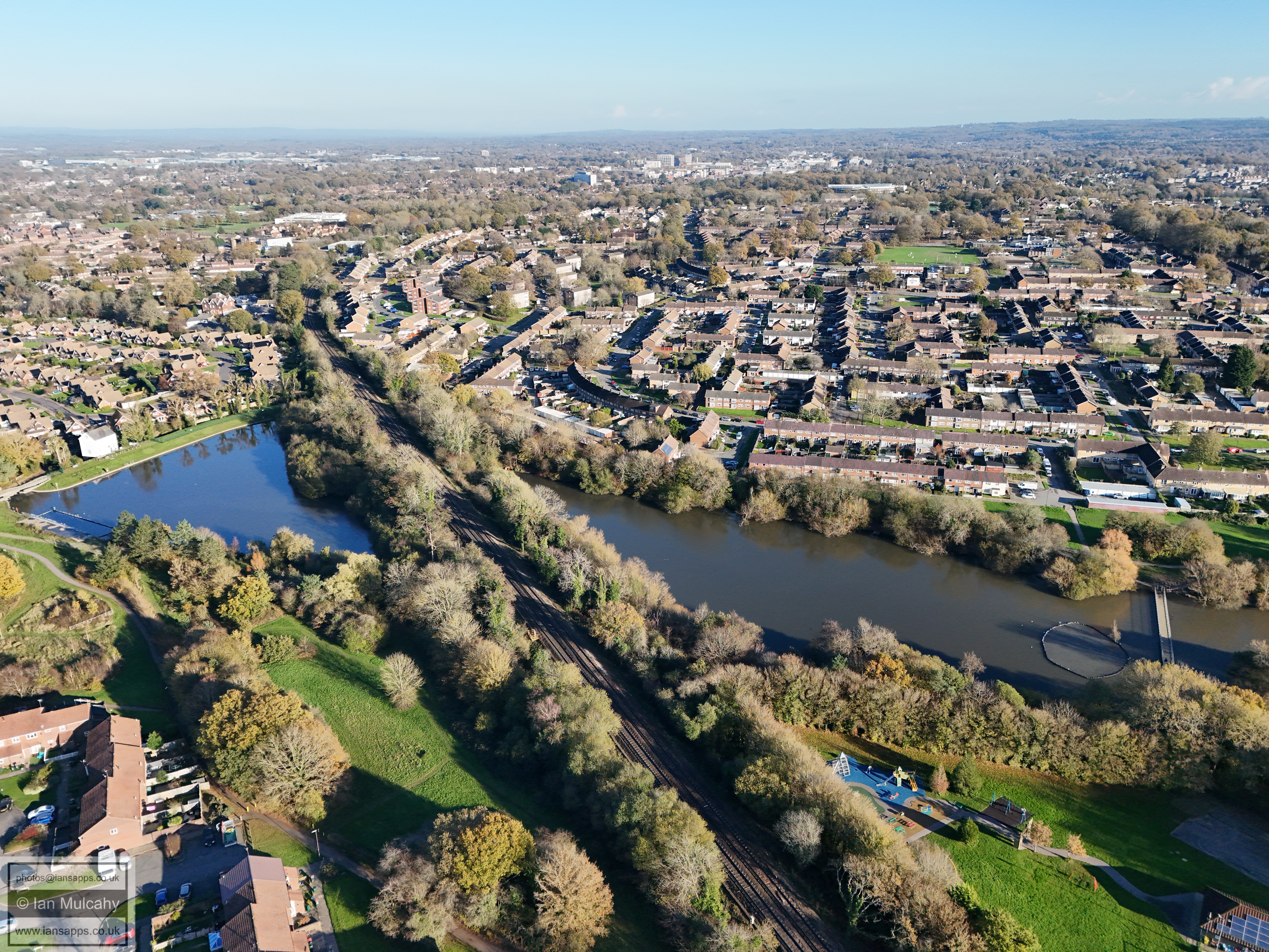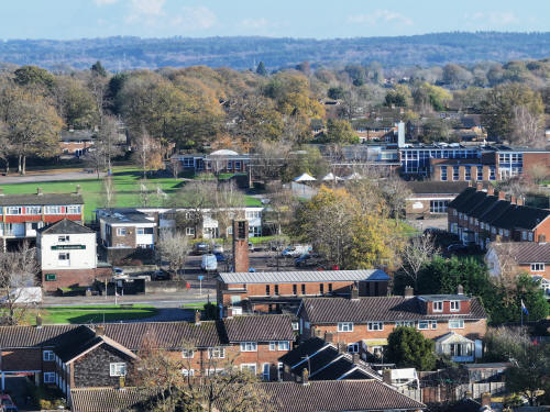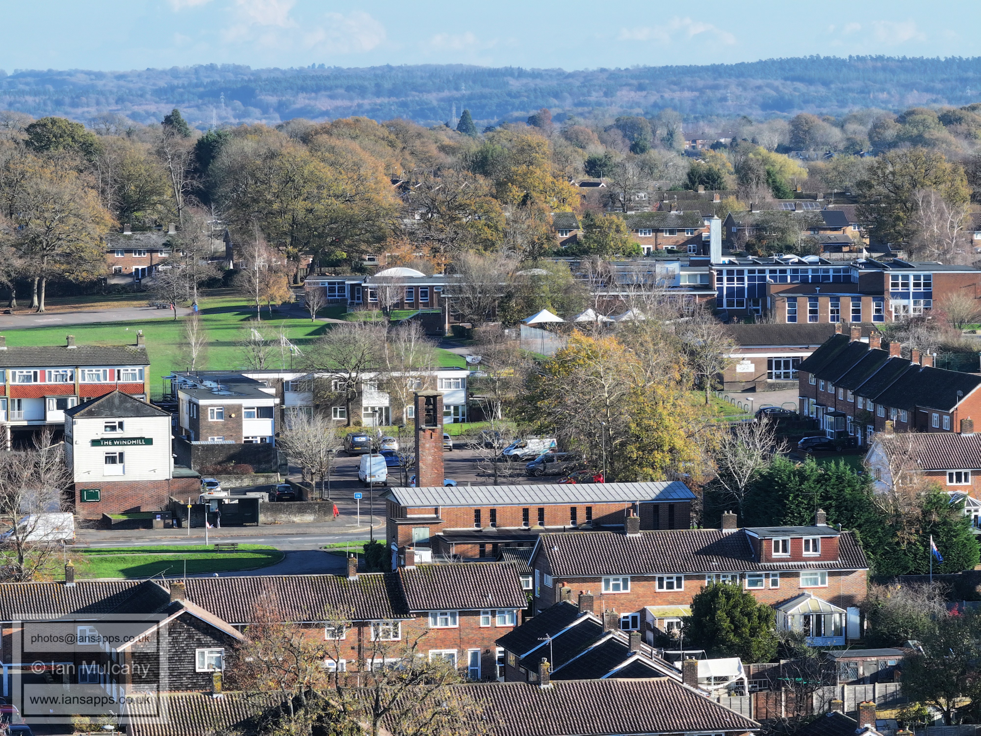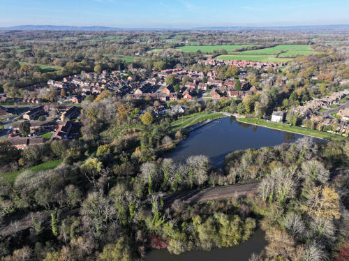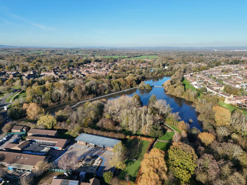 A small set of 25 aerial images of varying focal length taken in the Millpond area on 21 November 2025. Photos are from the path leading to the pond from Lea Close in Gossops Green, the path beside the Dowster Brook behind Hawksmoor Road in Bewbush and in Hanbury Road in Ifield West. I have annotated some of the photos.