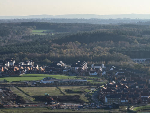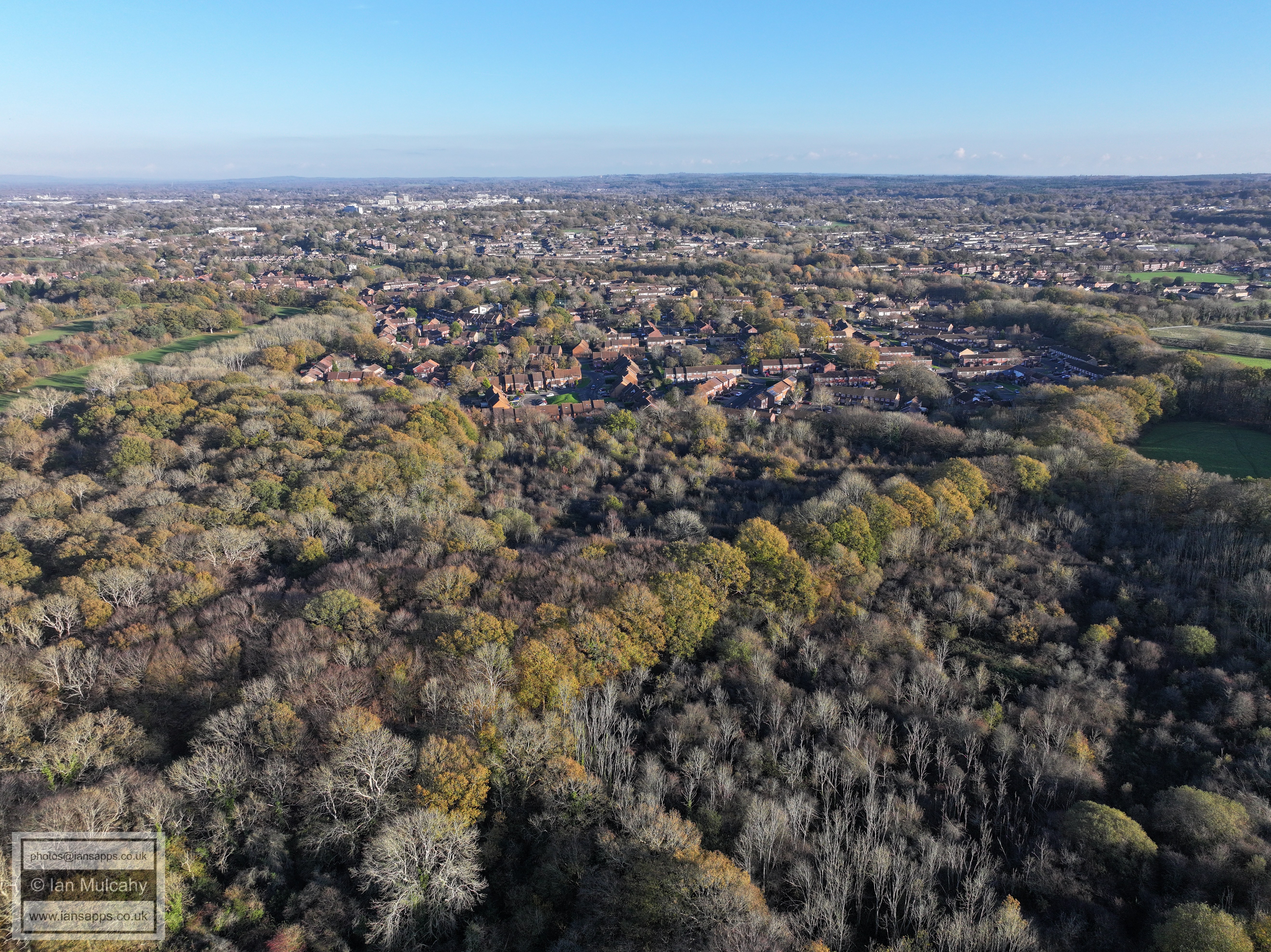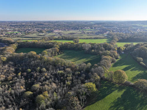 The woods across the centre are Furzefield and Burnt Stubbs off Kilnwood Lane