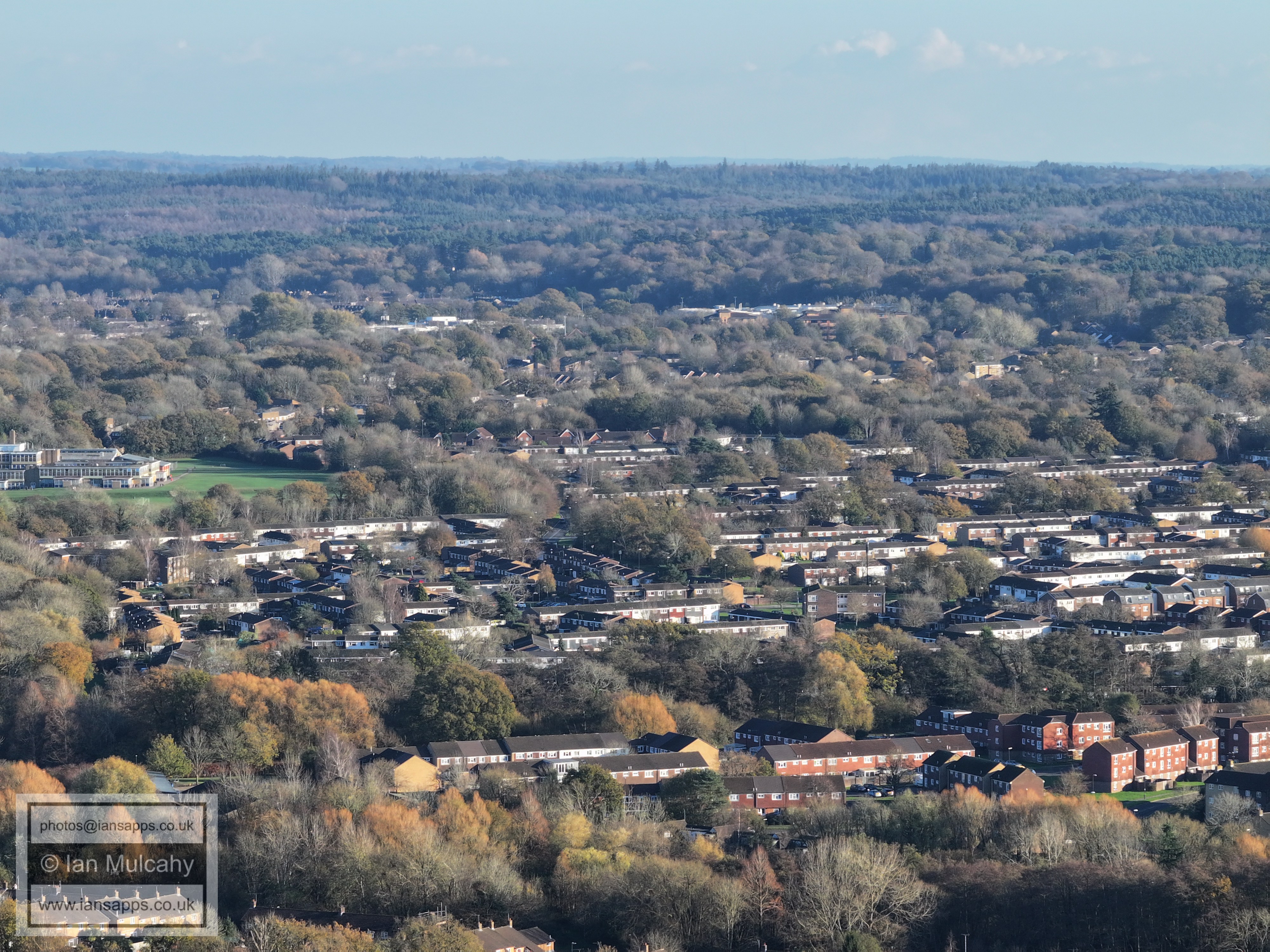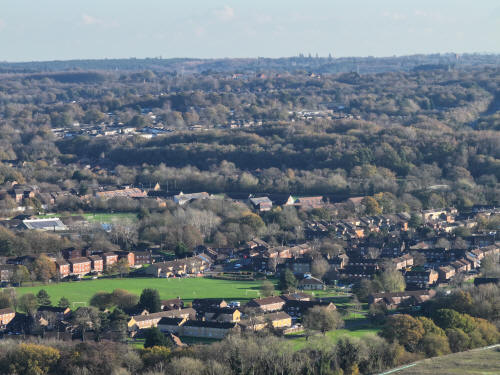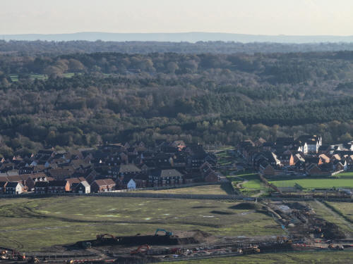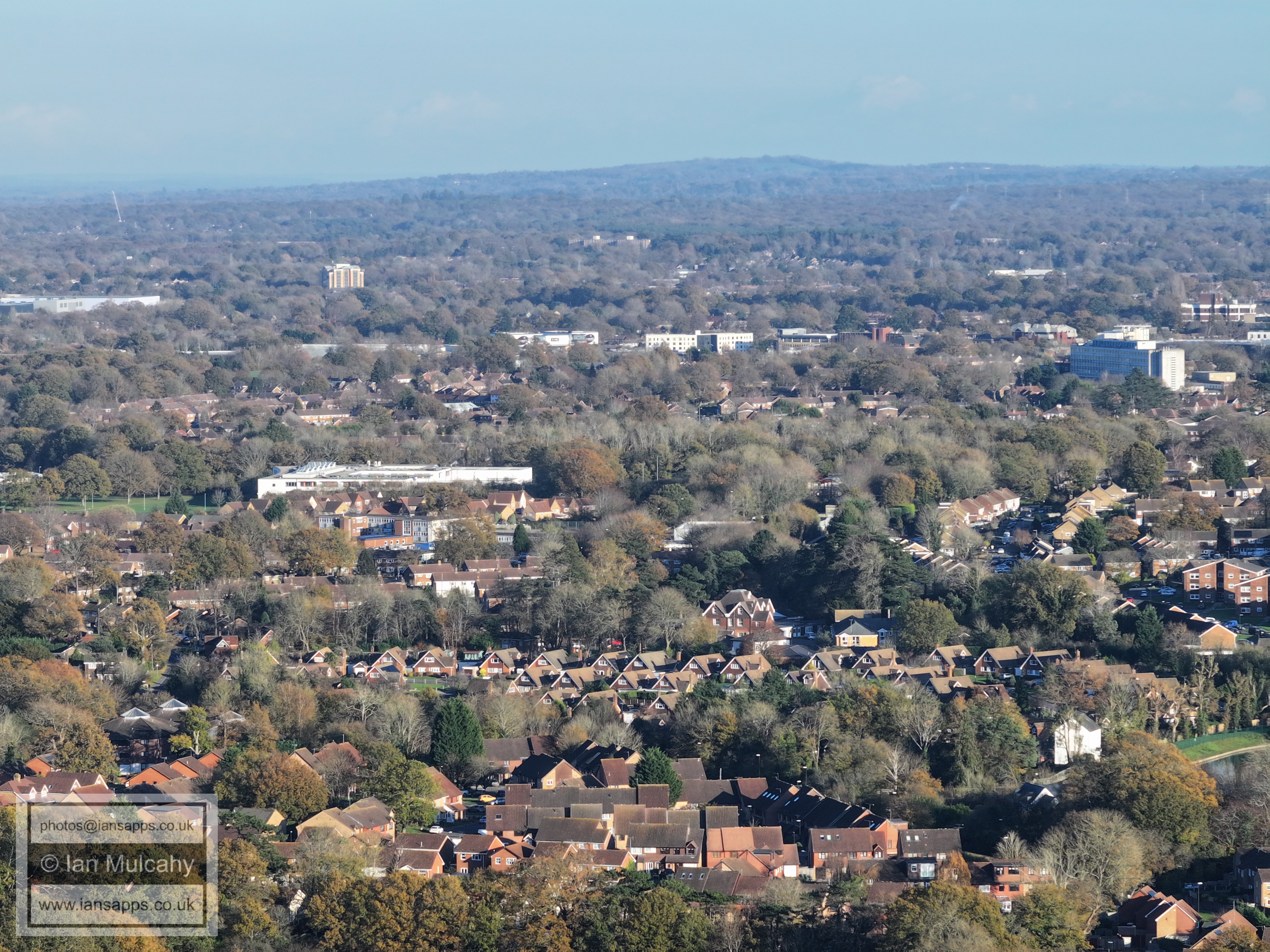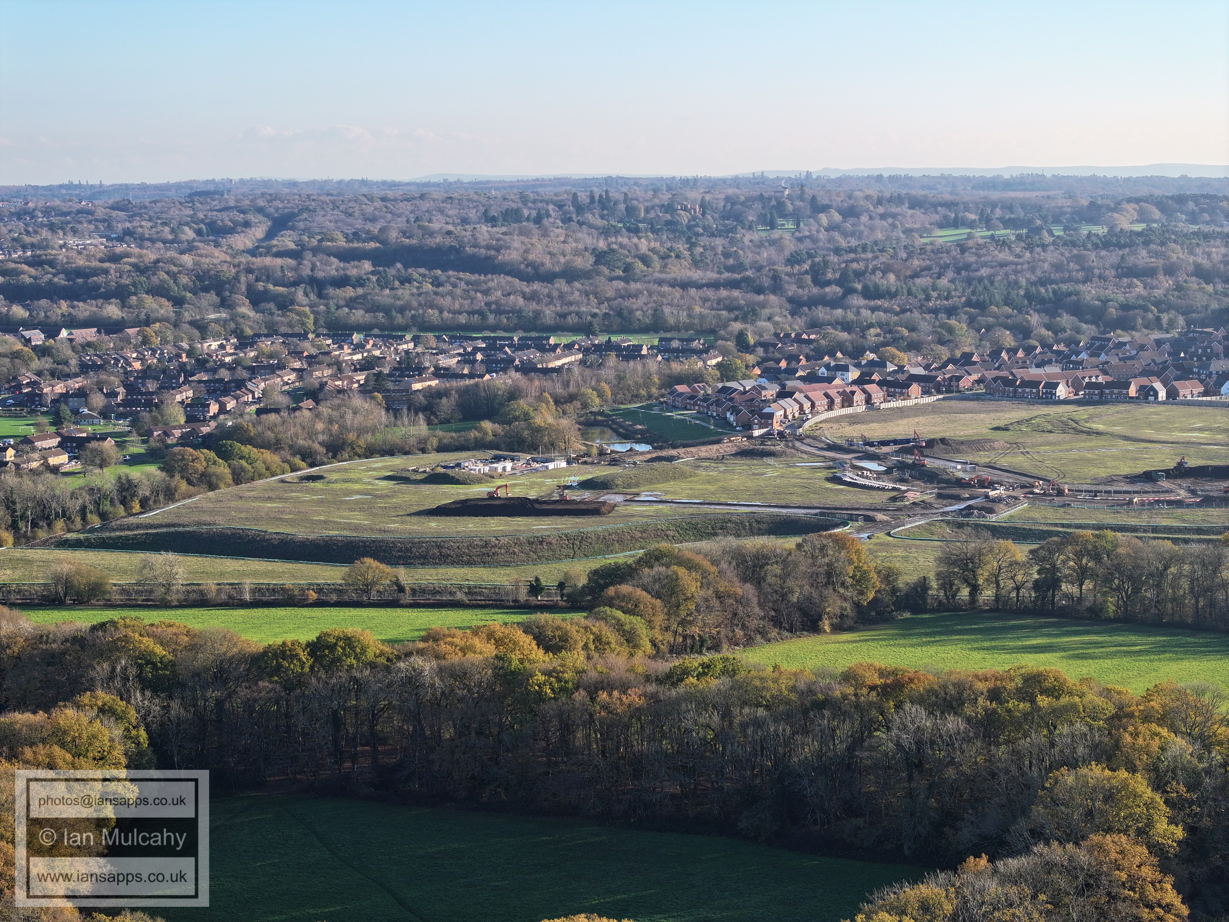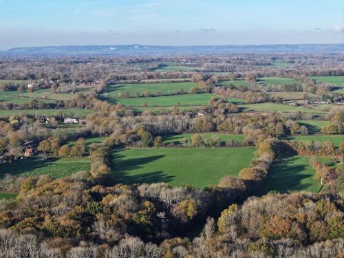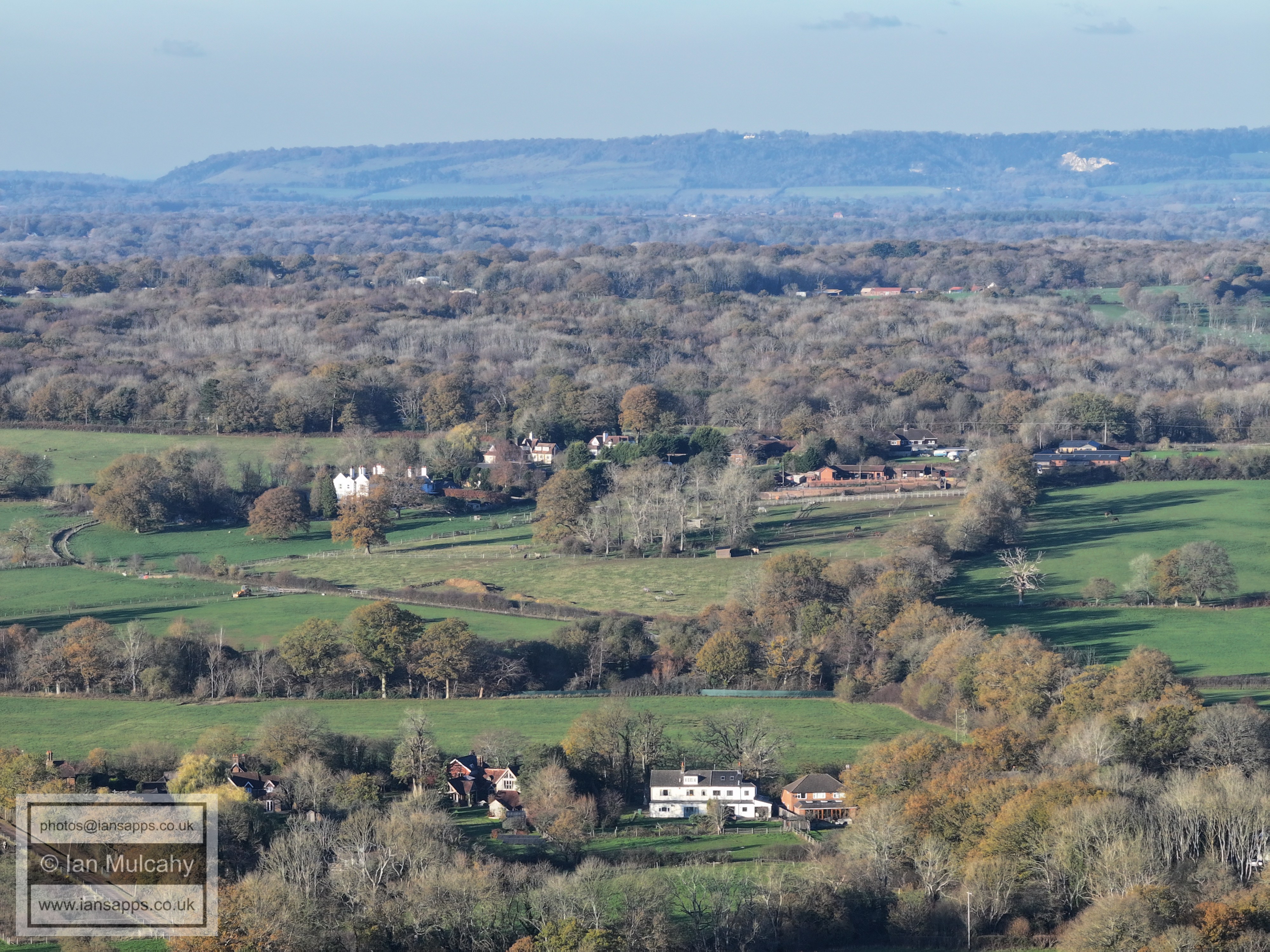 66 aerial images of varying focal length taken from fields west of Hyde Hill Woods in the Rusper, close to the boundary with Ifield, on 21 November 2025. The photos looking south are a bit hazy, but in other directions are clear views of Crawley, Gatwick & Rusper as well as across the Low Weald to the North Downs. I have annotated some of the photos.