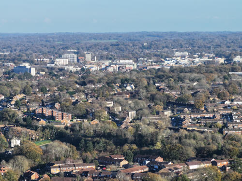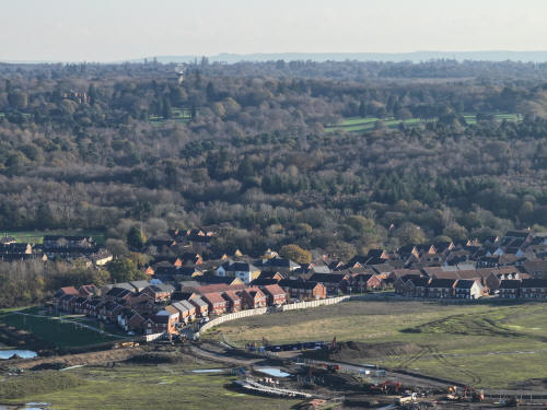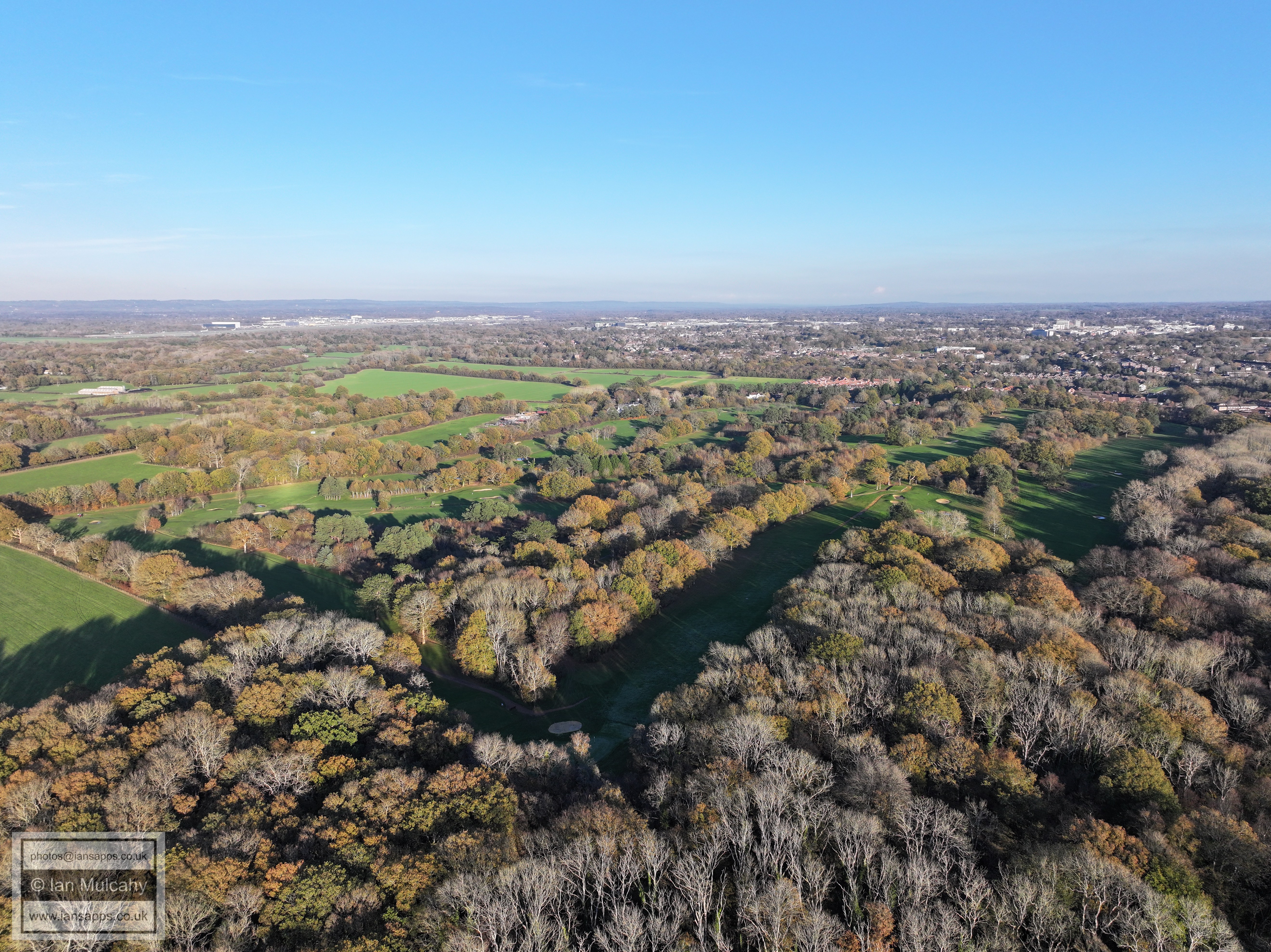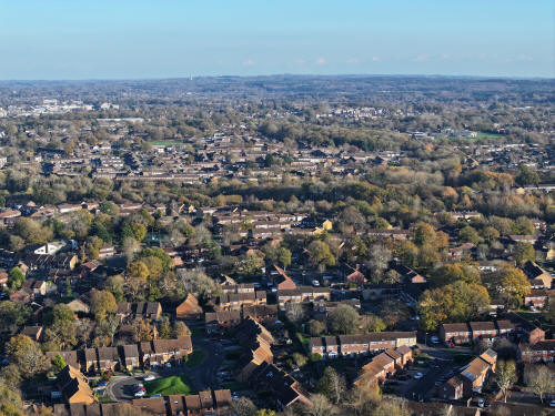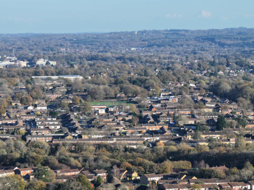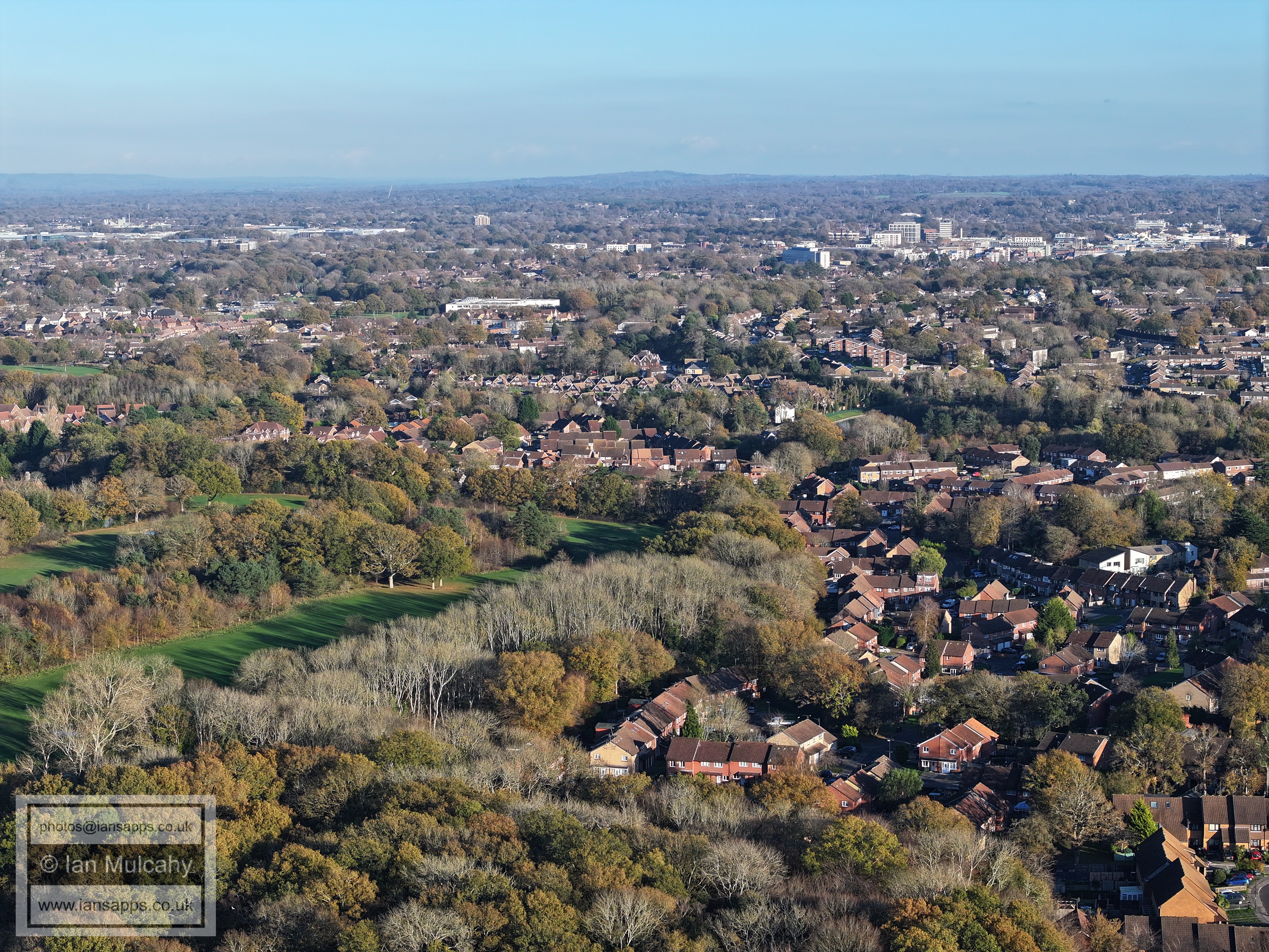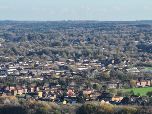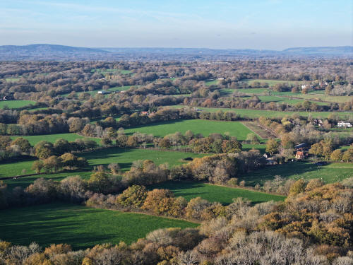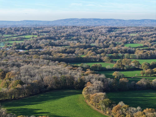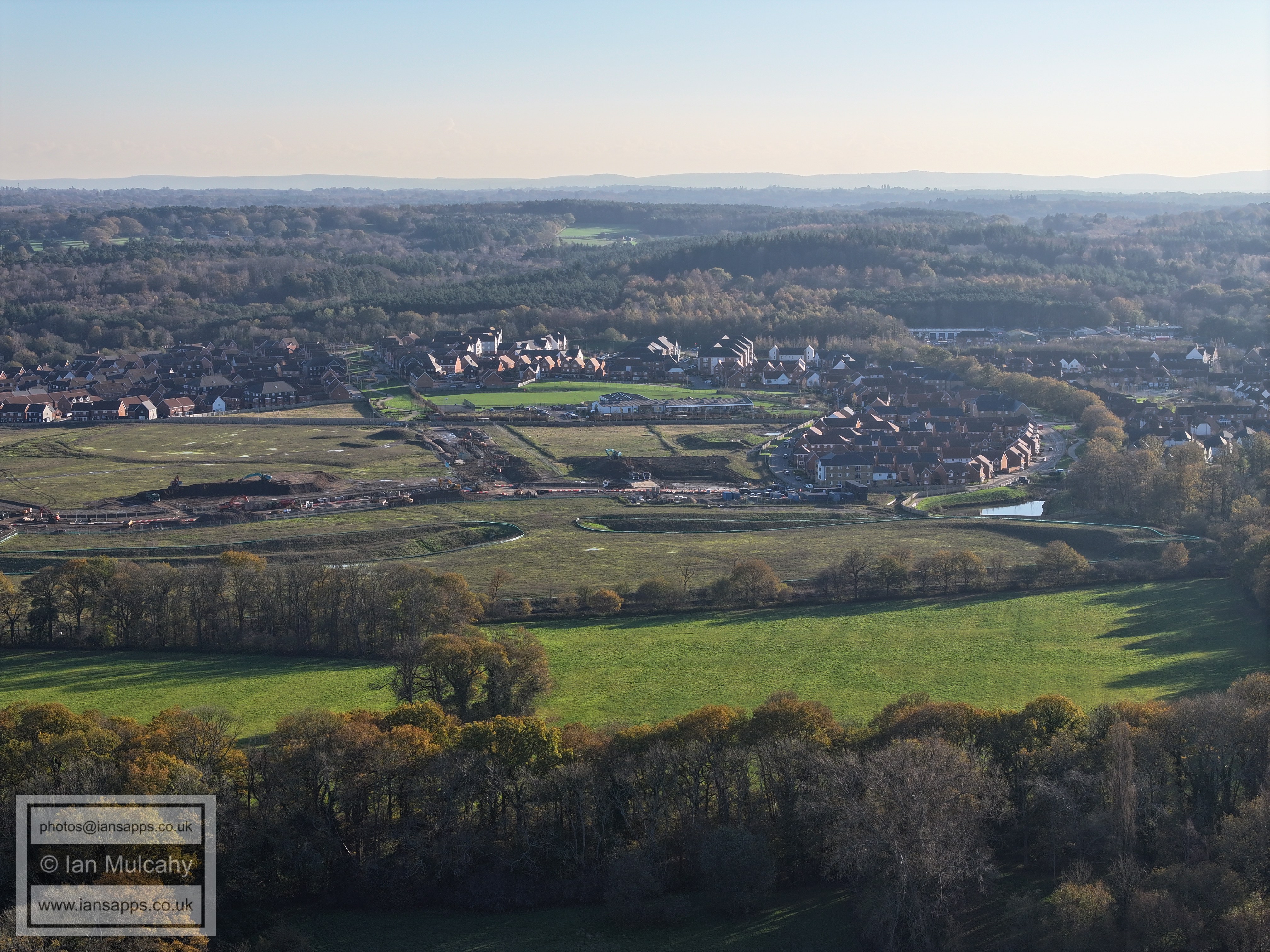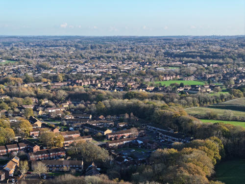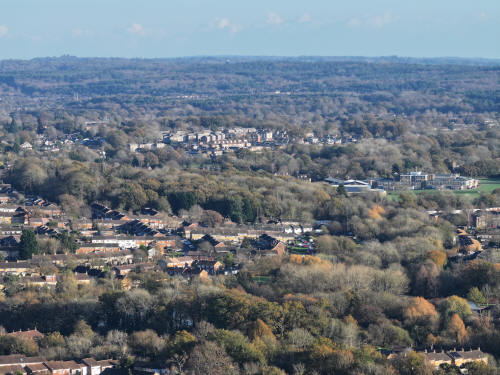 66 aerial images of varying focal length taken from fields west of Hyde Hill Woods in the Rusper, close to the boundary with Ifield, on 21 November 2025. The photos looking south are a bit hazy, but in other directions are clear views of Crawley, Gatwick & Rusper as well as across the Low Weald to the North Downs. I have annotated some of the photos.