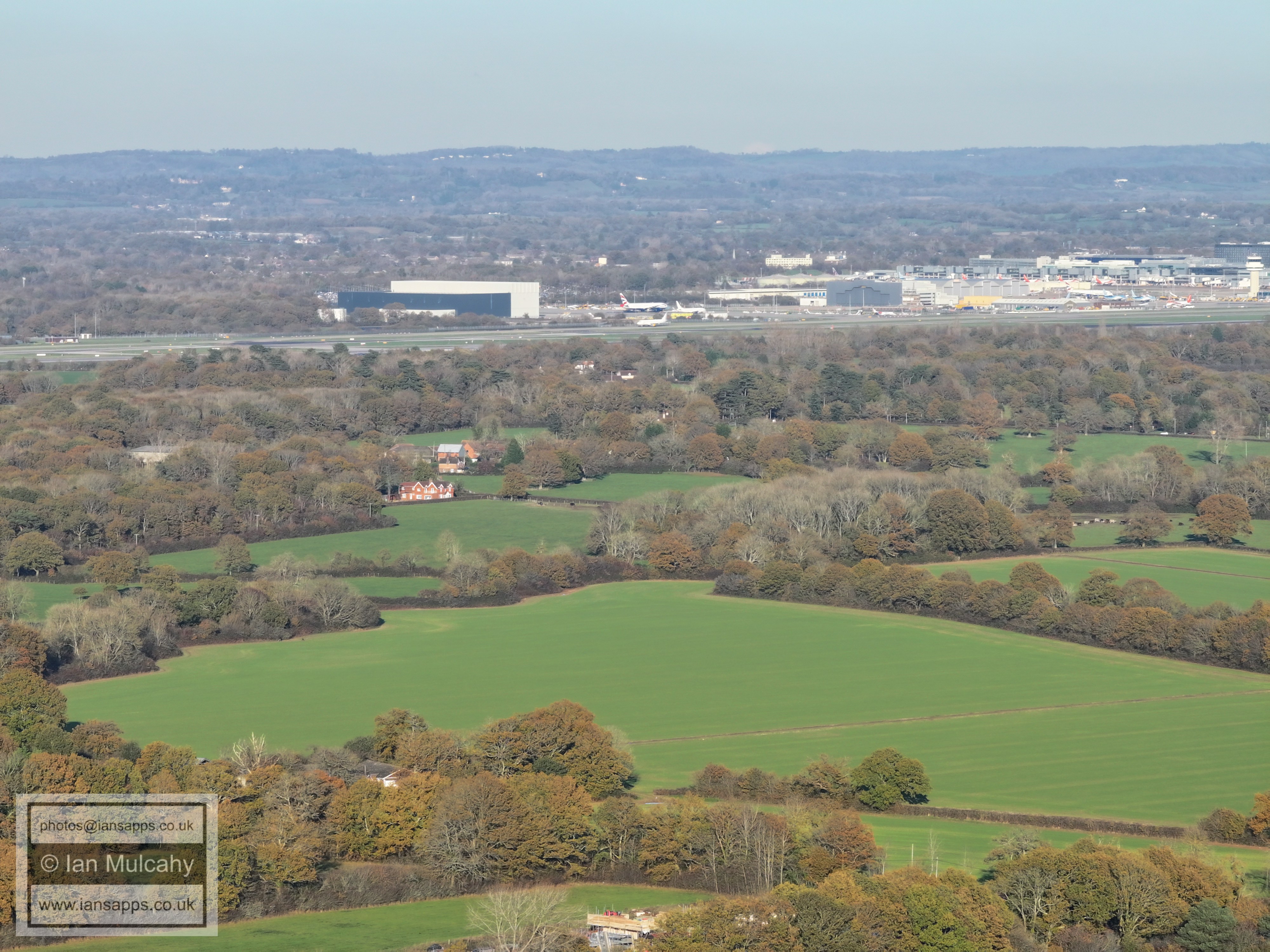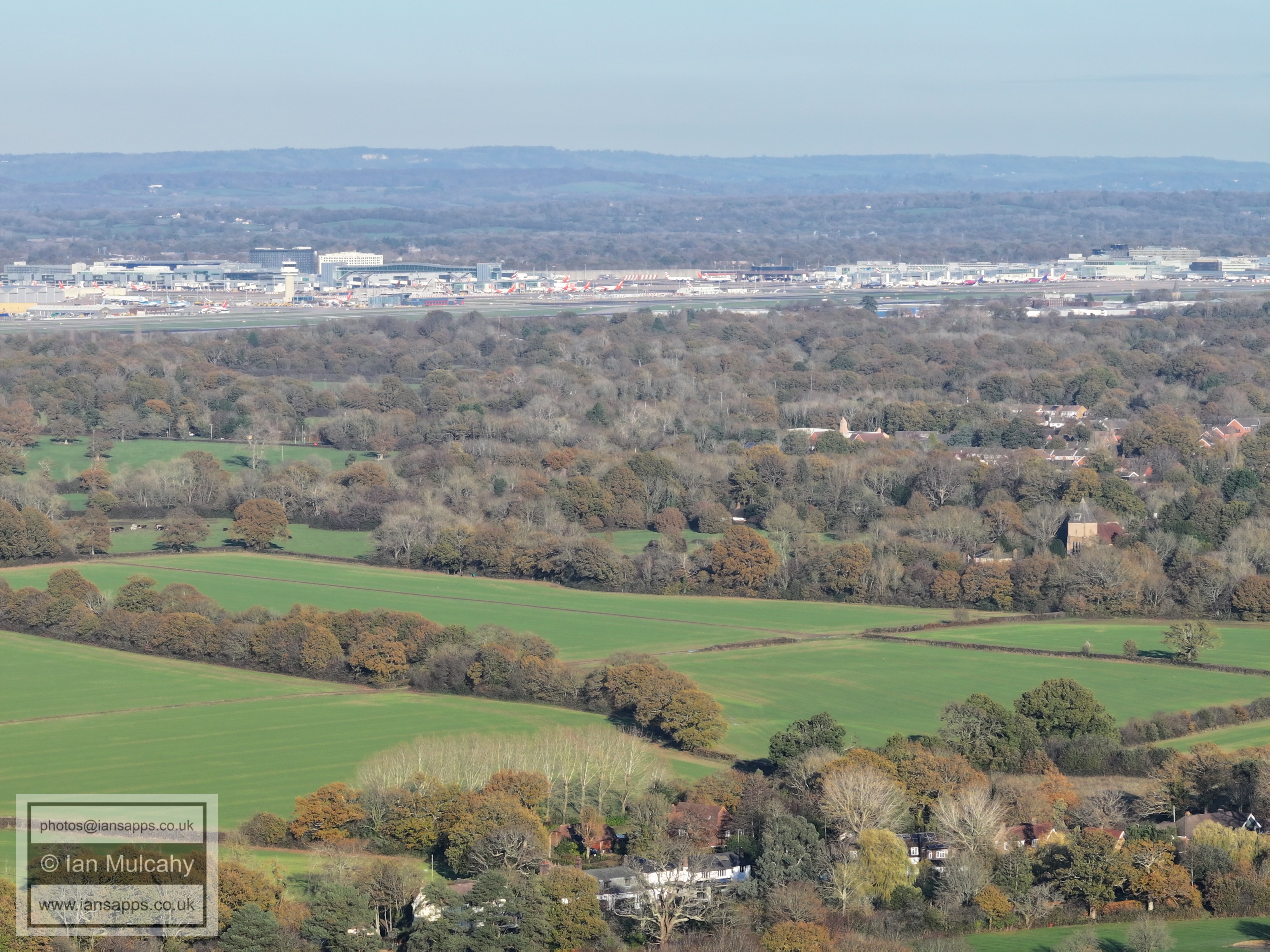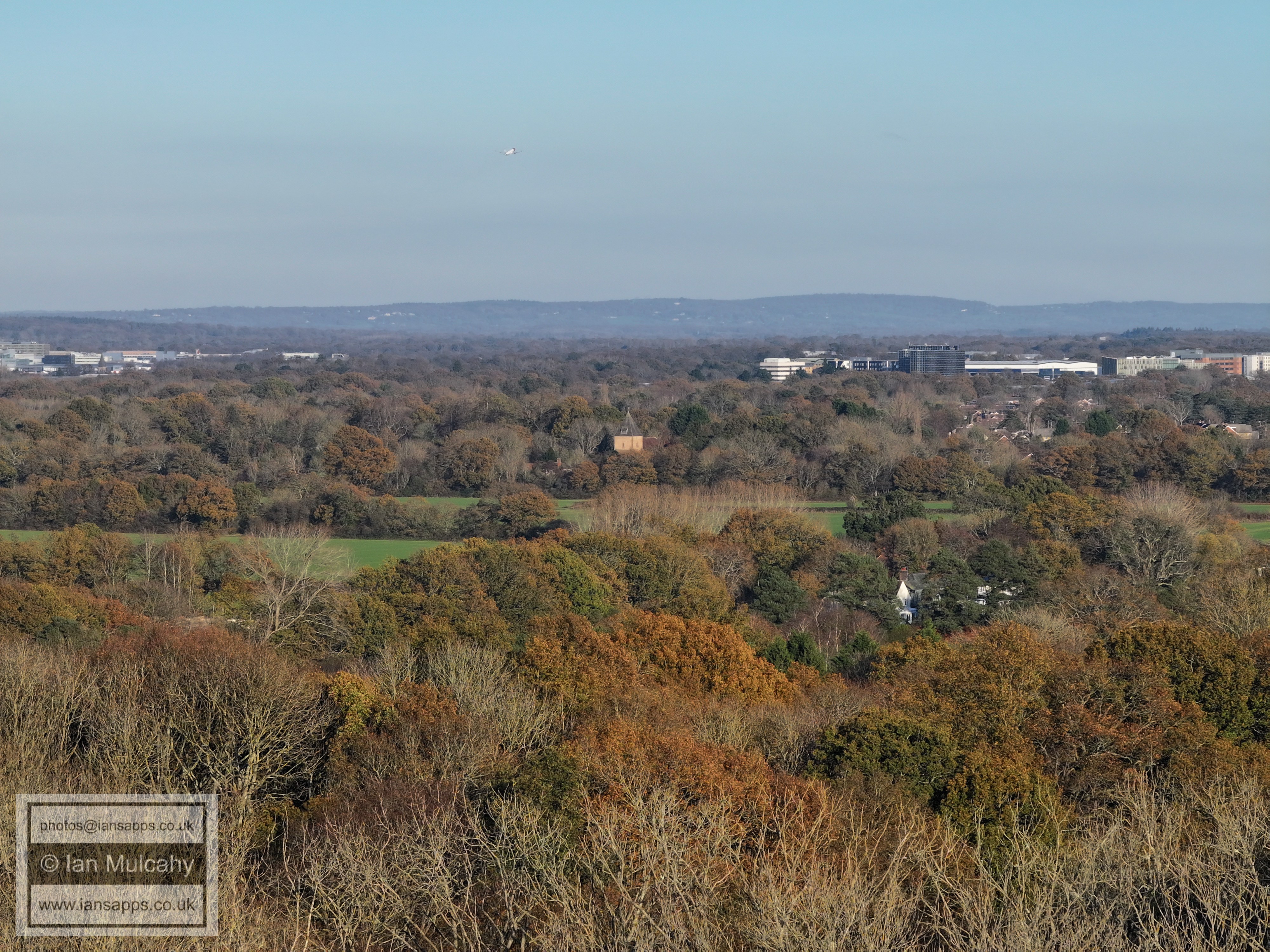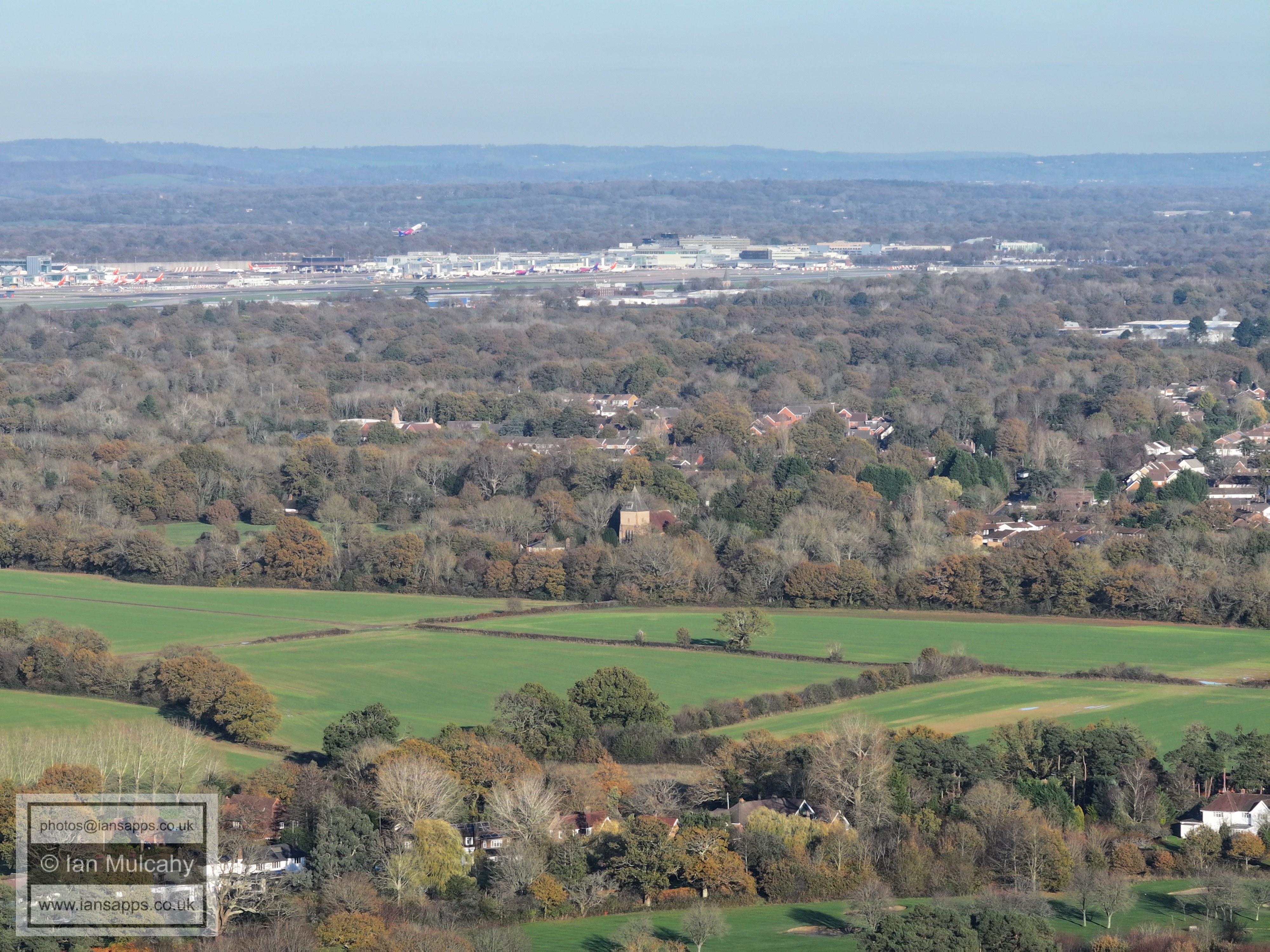 Lost in the haze and low sun just above and to the left of centre is Faygate