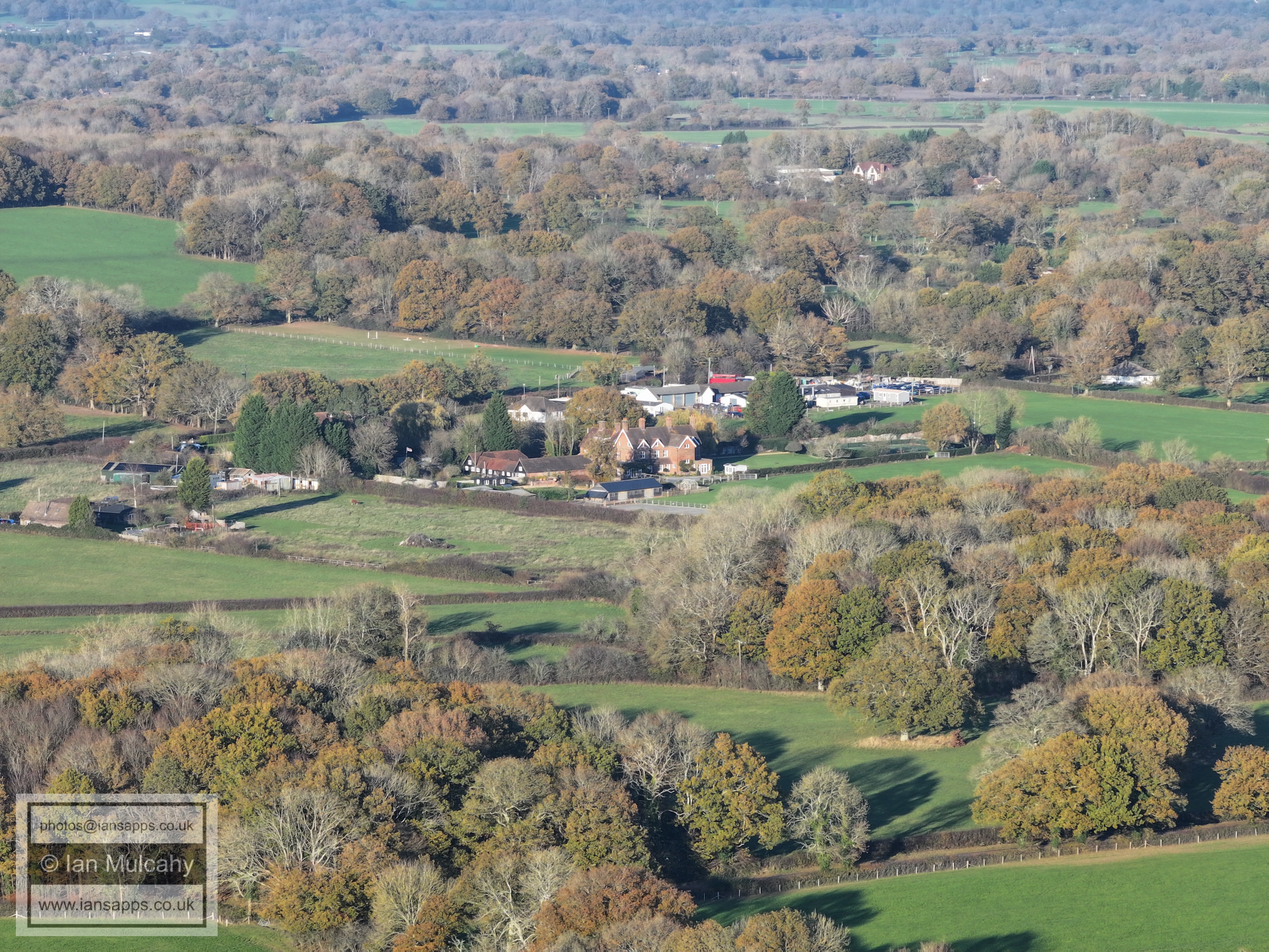 The houses right of centre are where Langhurst Lane, Burnt House Lane and Rusper Road meet.