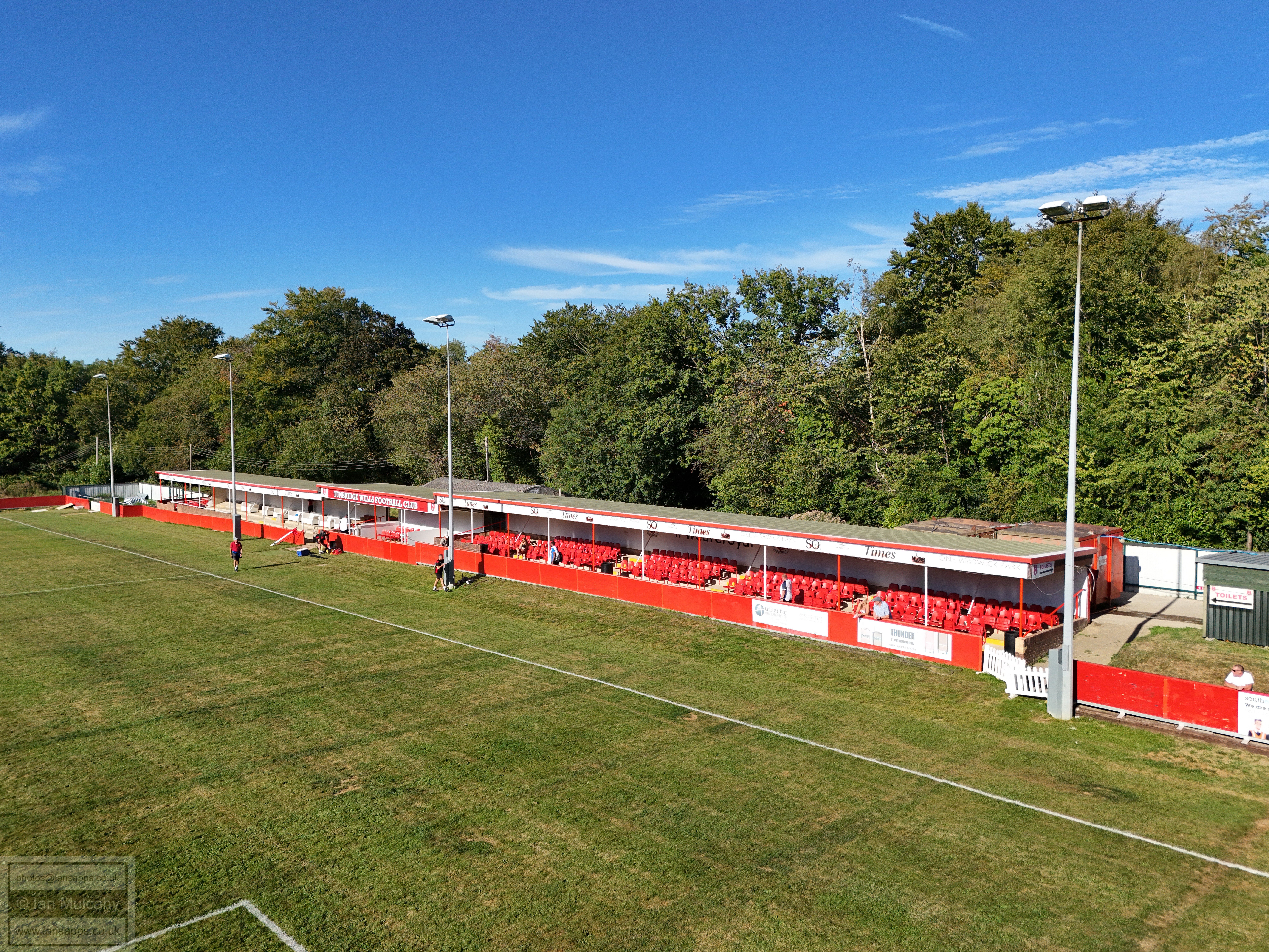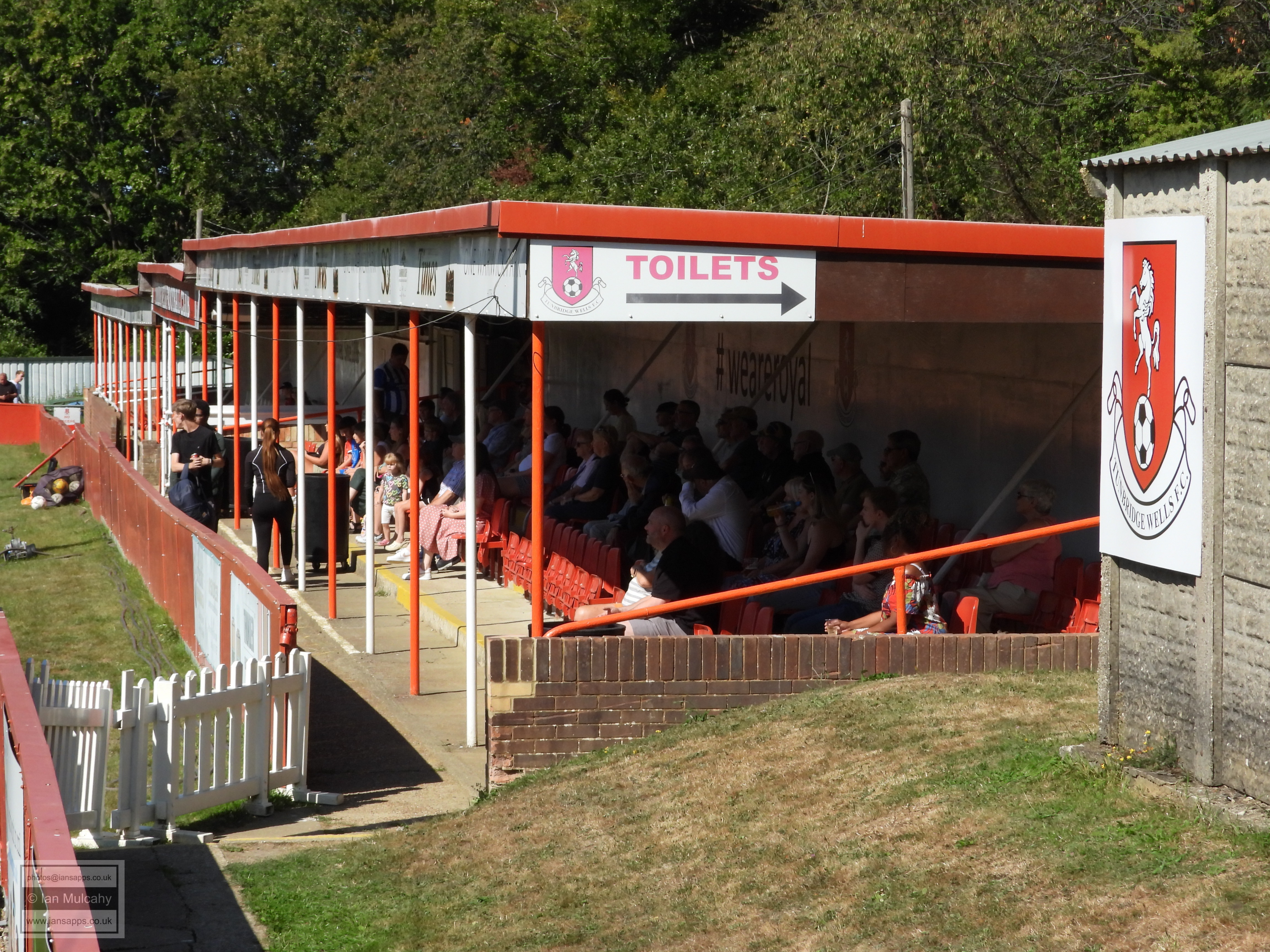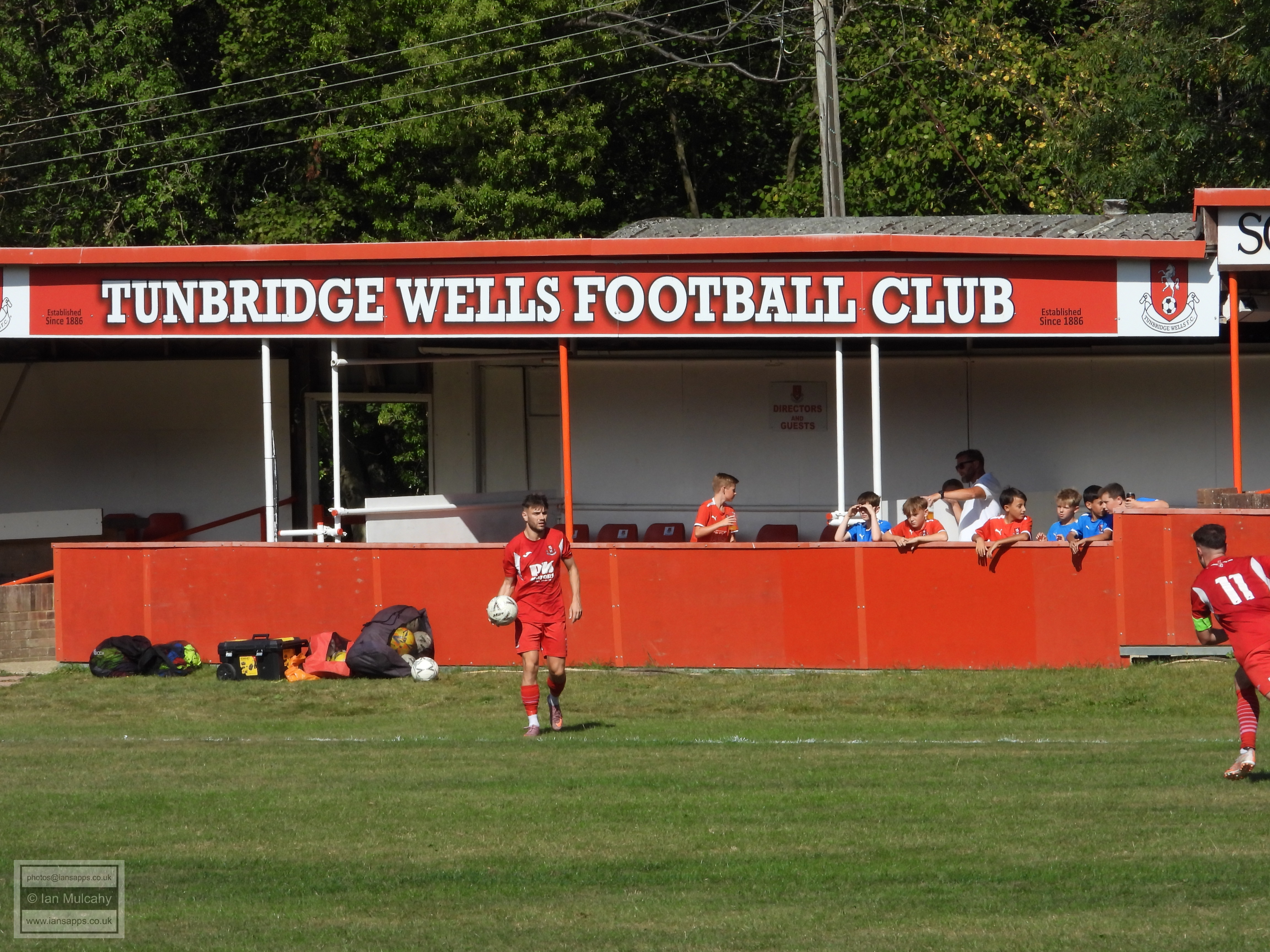 187 ground and match photos taken at the Southern Counties East Football League Premier Division match between Tunbridge Wells and Sutton Athletic at the Culverden Stadium. The visitors took the lead with a fine curling effort into the top right corner by Ollie Farmer in the 43rd minute, but Tunbridge Wells managed to snatch an equaliser in the 79th minute when Conor Evans was unable to keep Jack Gallagher's looping header out; the linesman ruling that the ball had crossed the line. As the game seemed to be heading towards a stalemate, James Baylord bundled the ball over the line from close range in the 2nd minute of added time, prompting wild celebrations from the visitors who left the Culverden Stadium with all three points tucked into their back pocket.