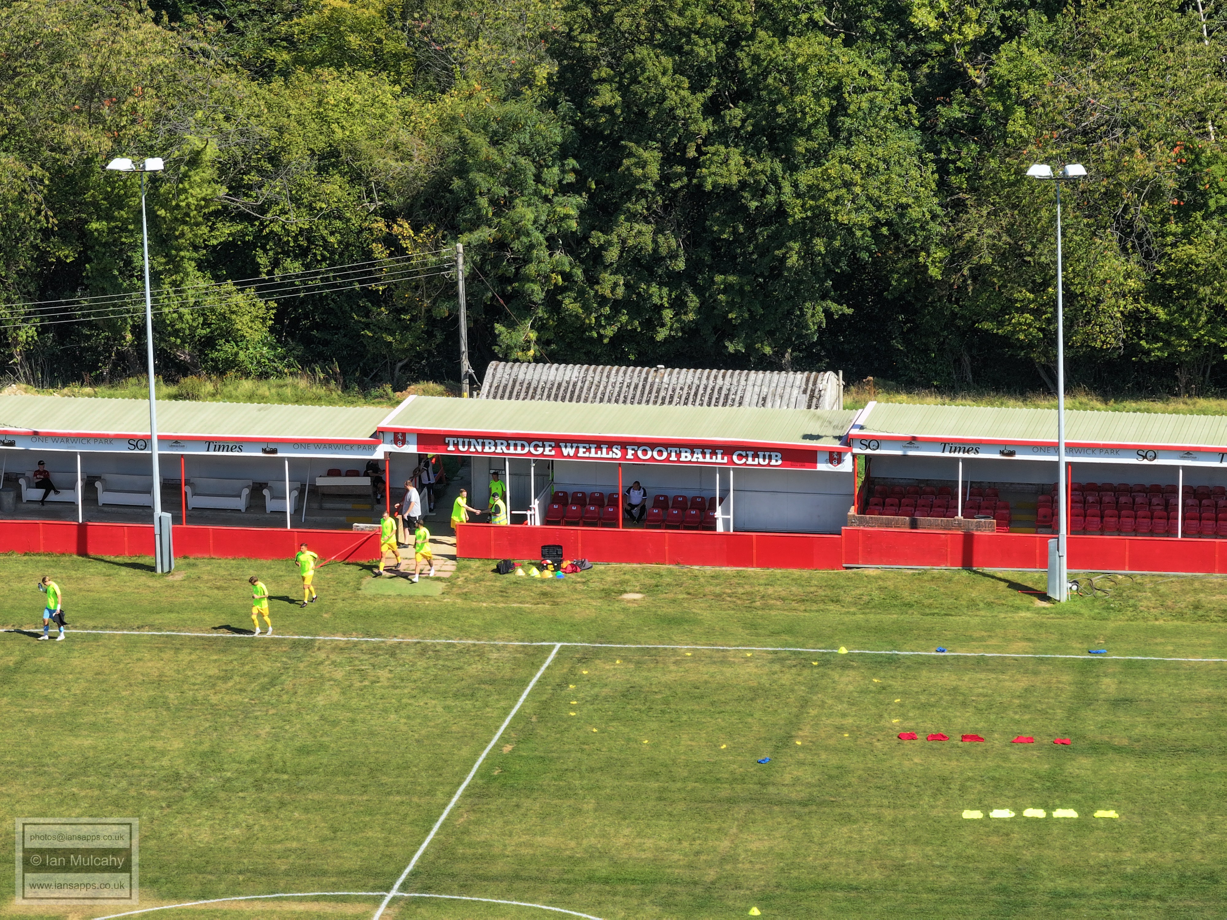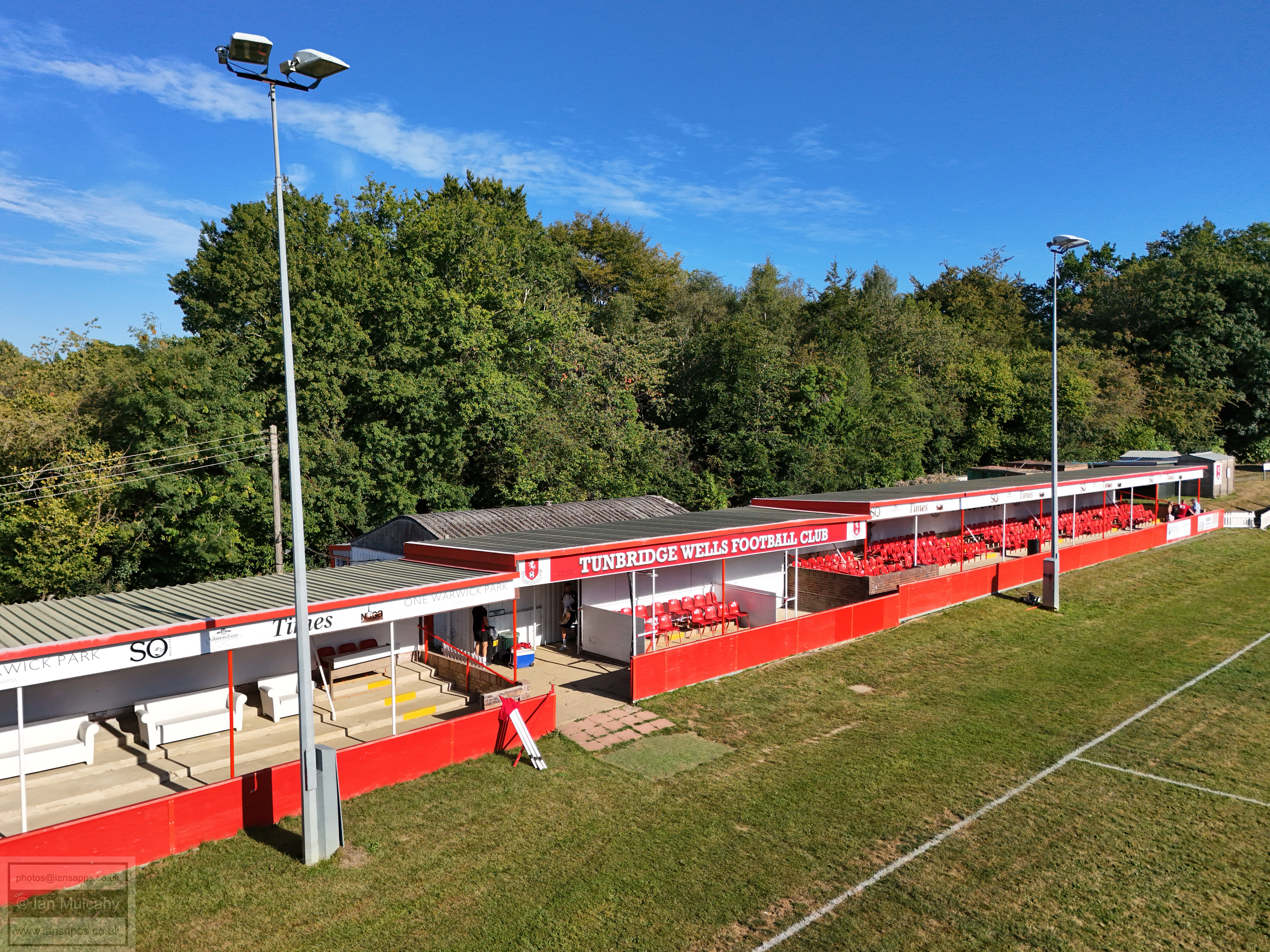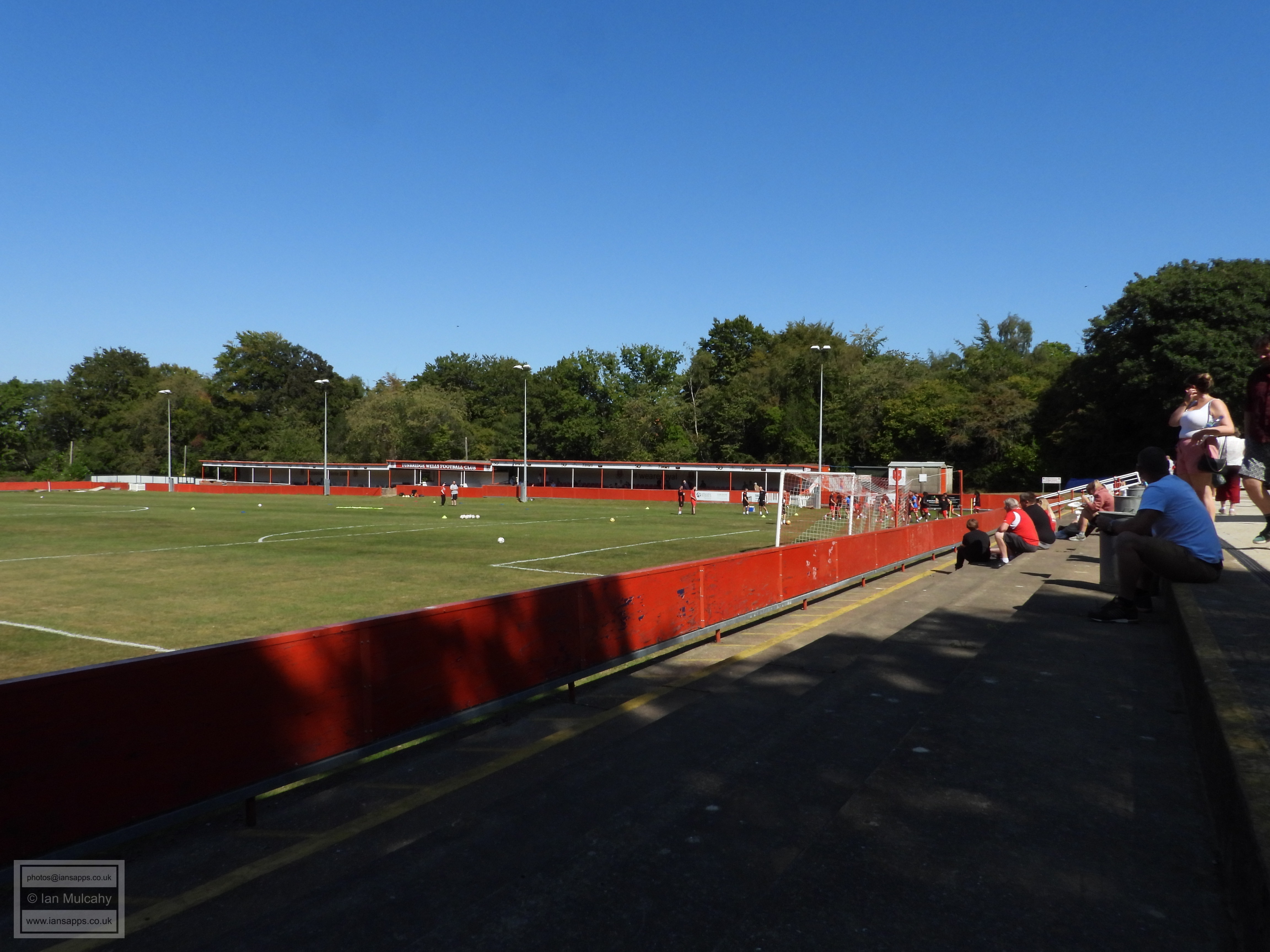 187 ground and match photos taken at the Southern Counties East Football League Premier Division match between Tunbridge Wells and Sutton Athletic at the Culverden Stadium. The visitors took the lead with a fine curling effort into the top right corner by Ollie Farmer in the 43rd minute, but Tunbridge Wells managed to snatch an equaliser in the 79th minute when Conor Evans was unable to keep Jack Gallagher's looping header out; the linesman ruling that the ball had crossed the line. As the game seemed to be heading towards a stalemate, James Baylord bundled the ball over the line from close range in the 2nd minute of added time, prompting wild celebrations from the visitors who left the Culverden Stadium with all three points tucked into their back pocket.