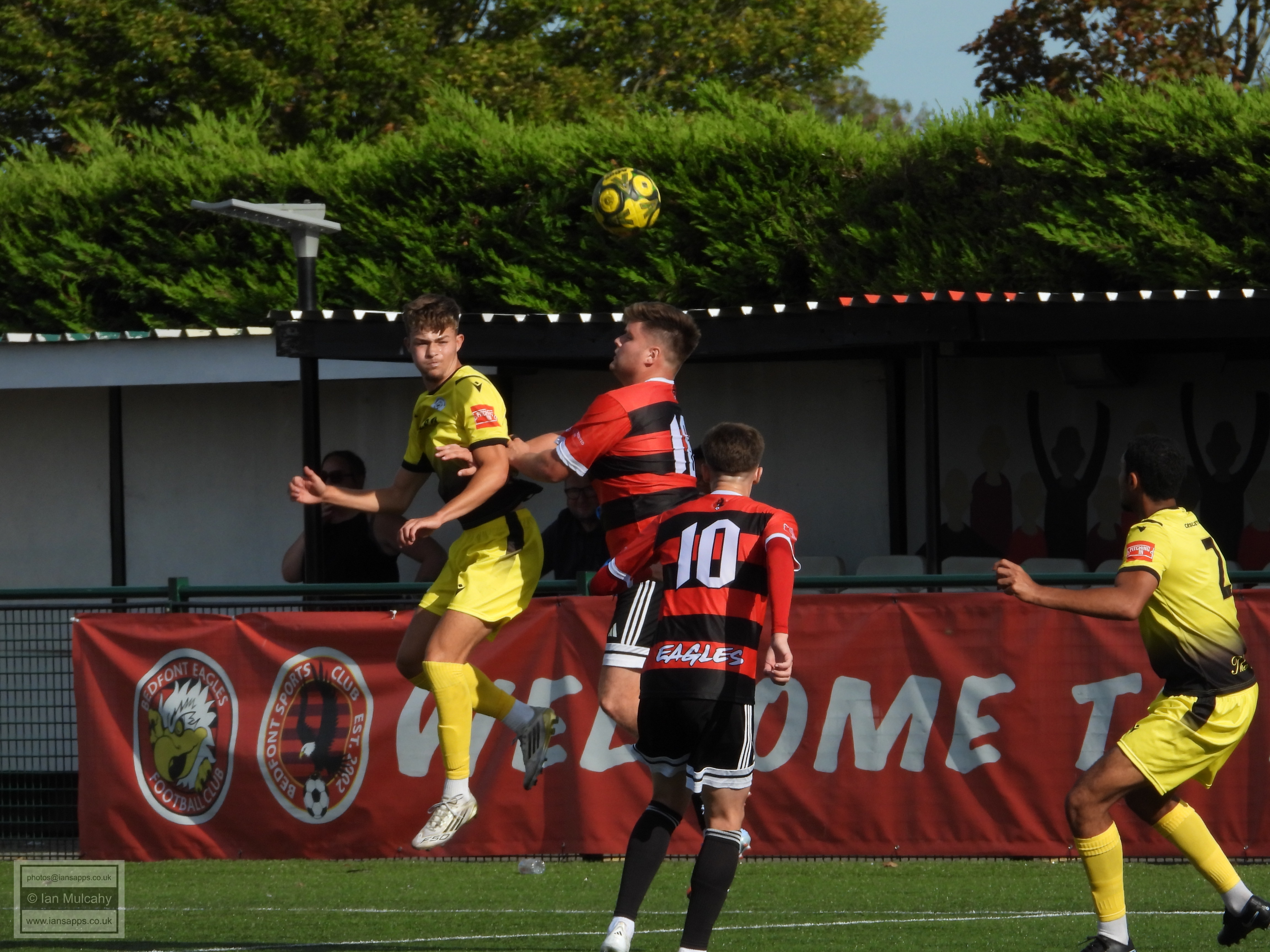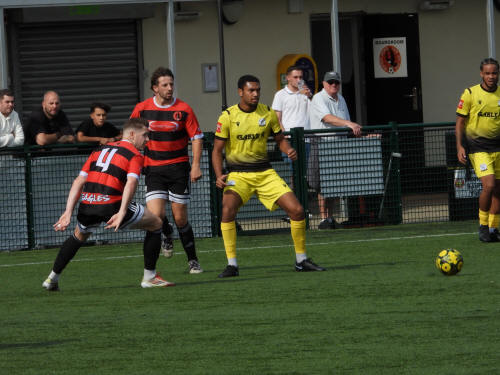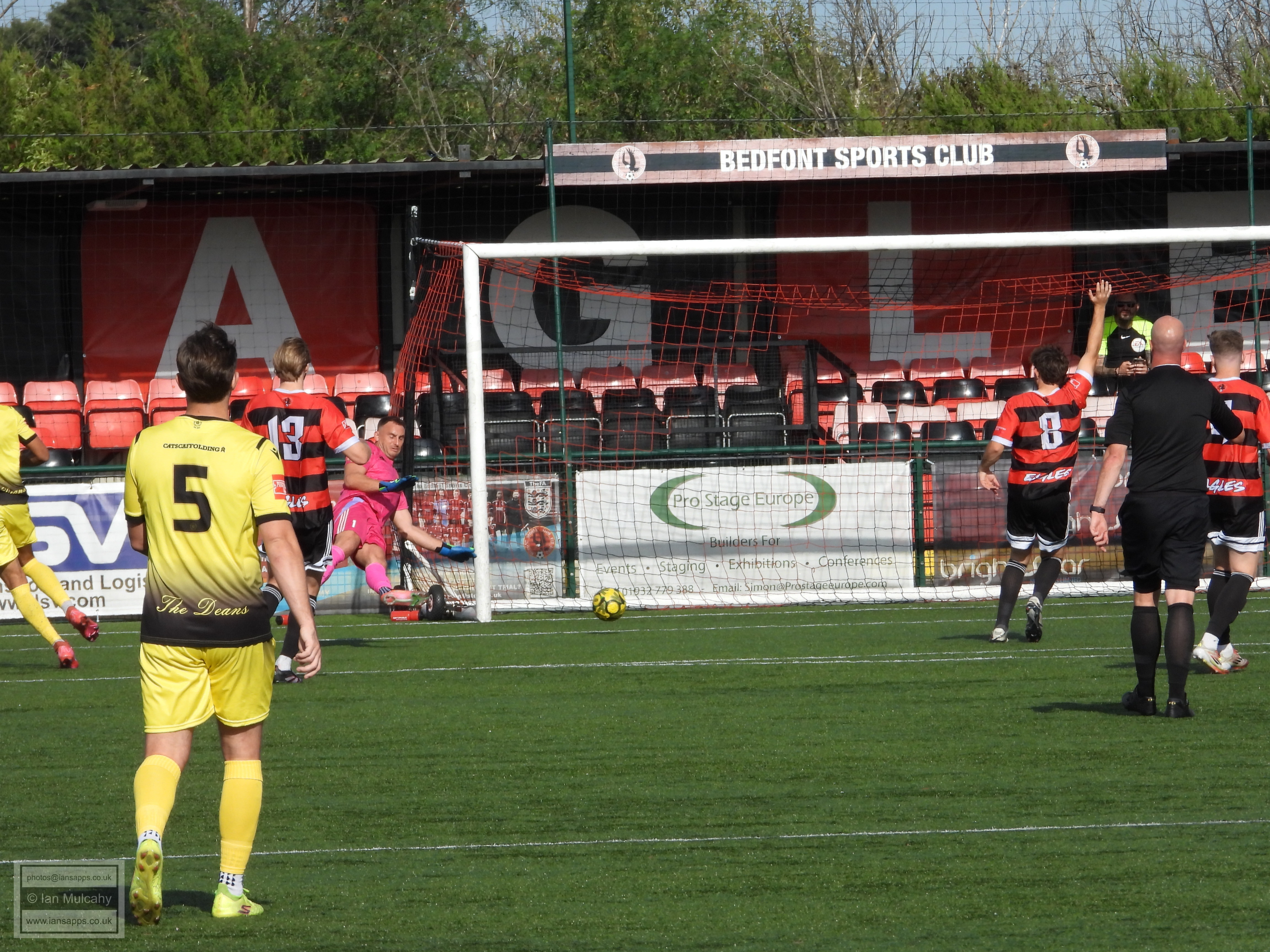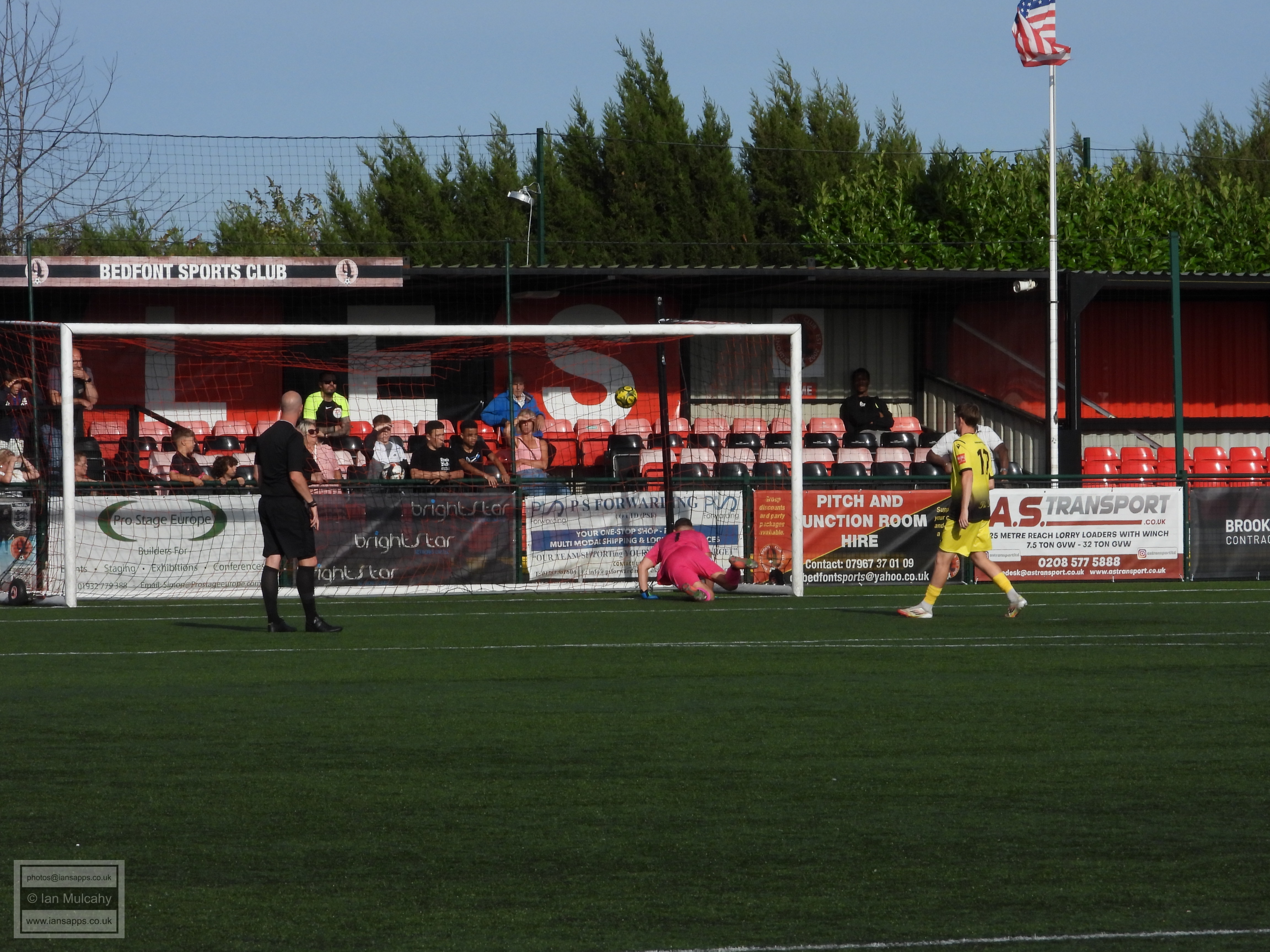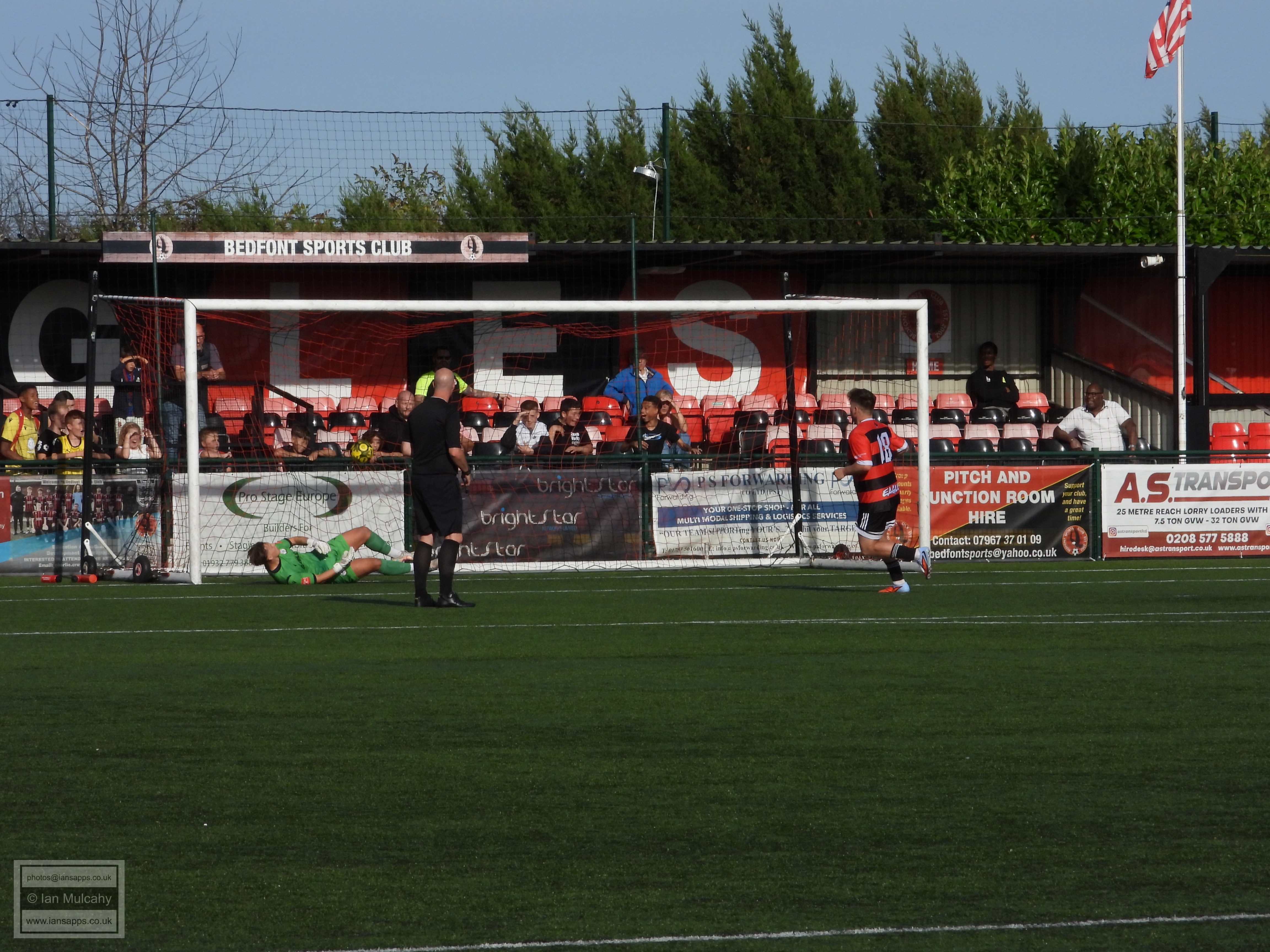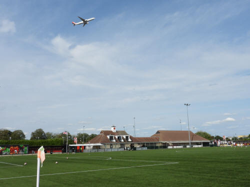 161 ground and match photos taken at the FA Trophy First Qualifying Round match between Bedfont Sports and Horndean at Bedfont Recreation Ground. This match was uneventful to say the least and, besides a flicked long throw which the Horndean keeper helped over the bar (and 3 Horndean goals, rightfully it seemed, disallowed for offside) the first shot on target was the first penalty of the shootout. Not a game that will be remembered!