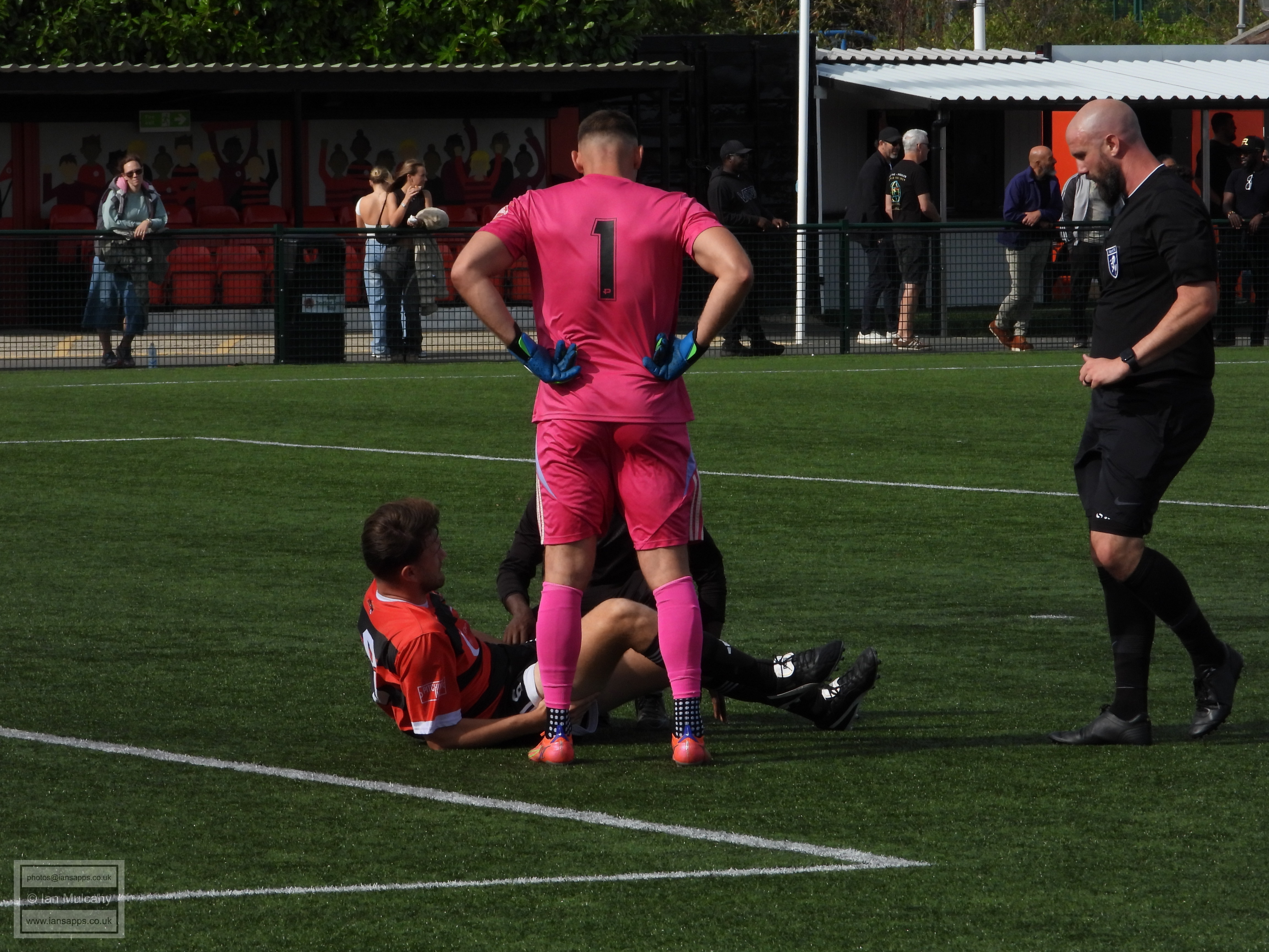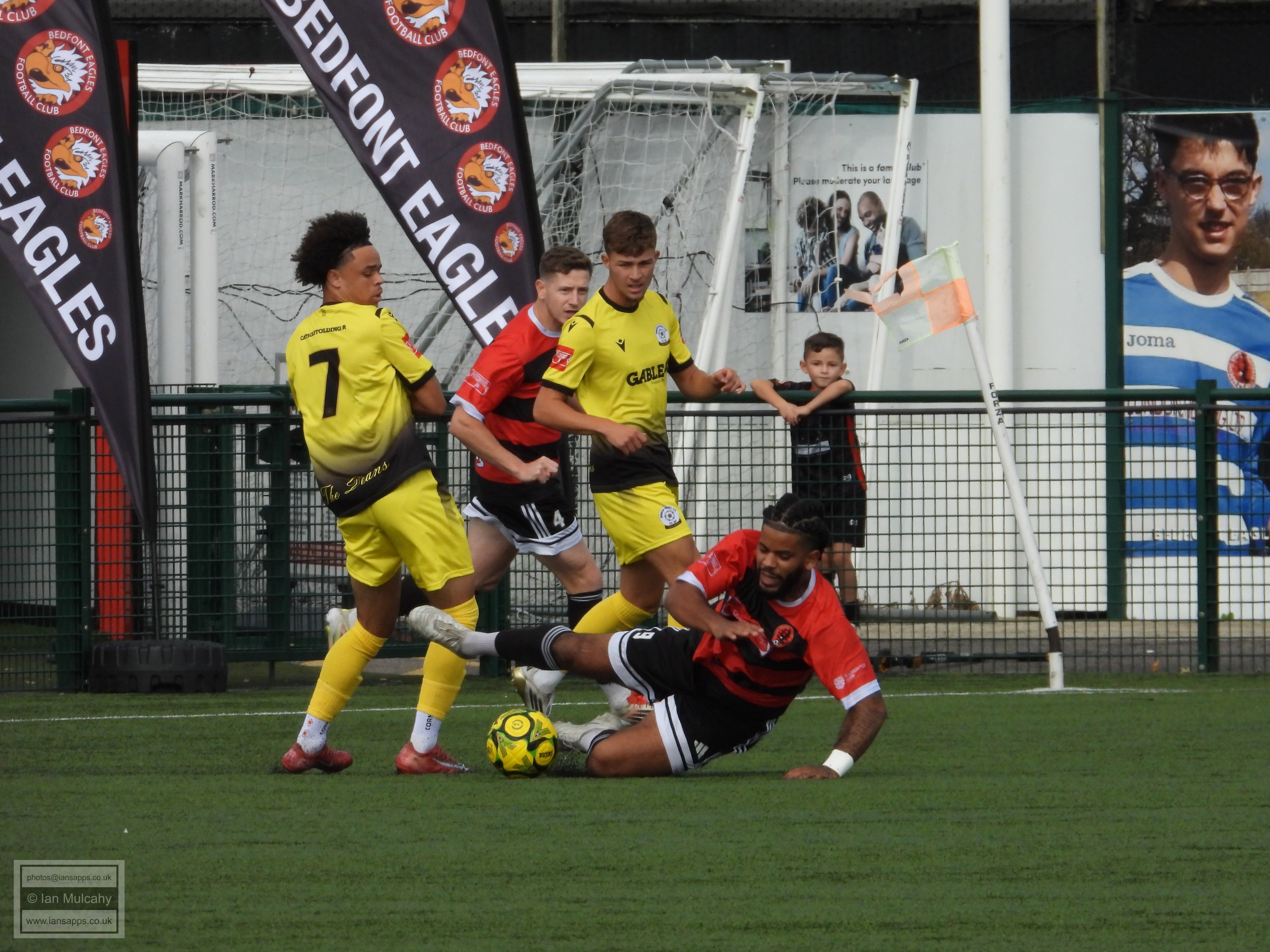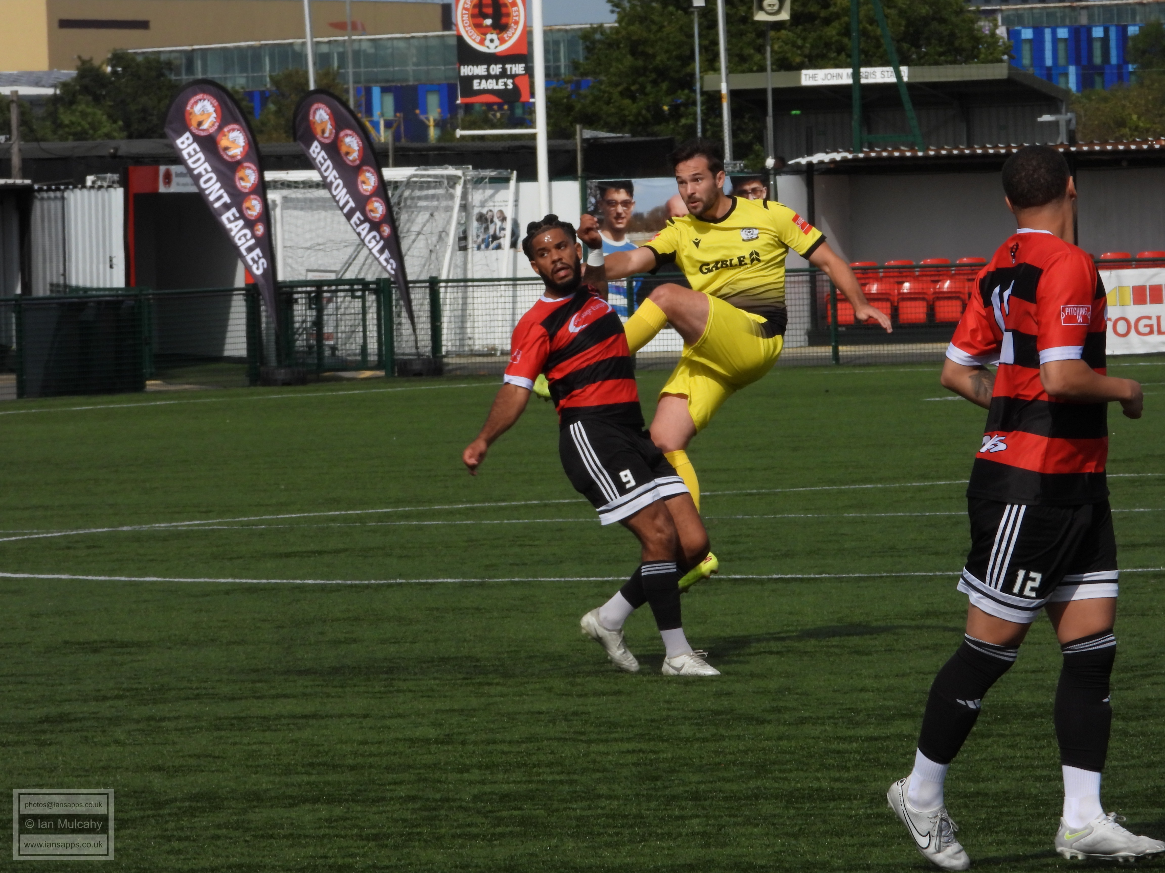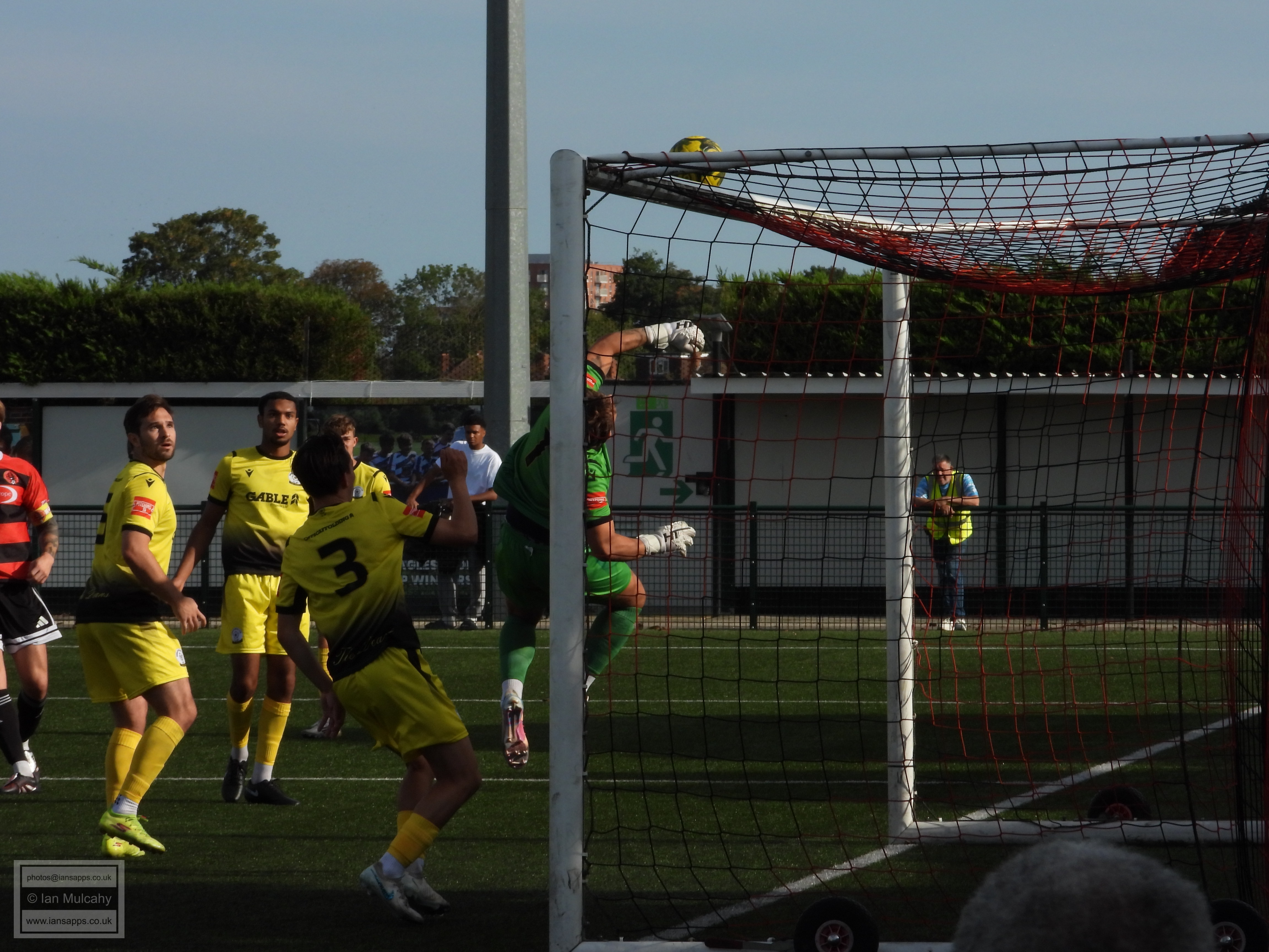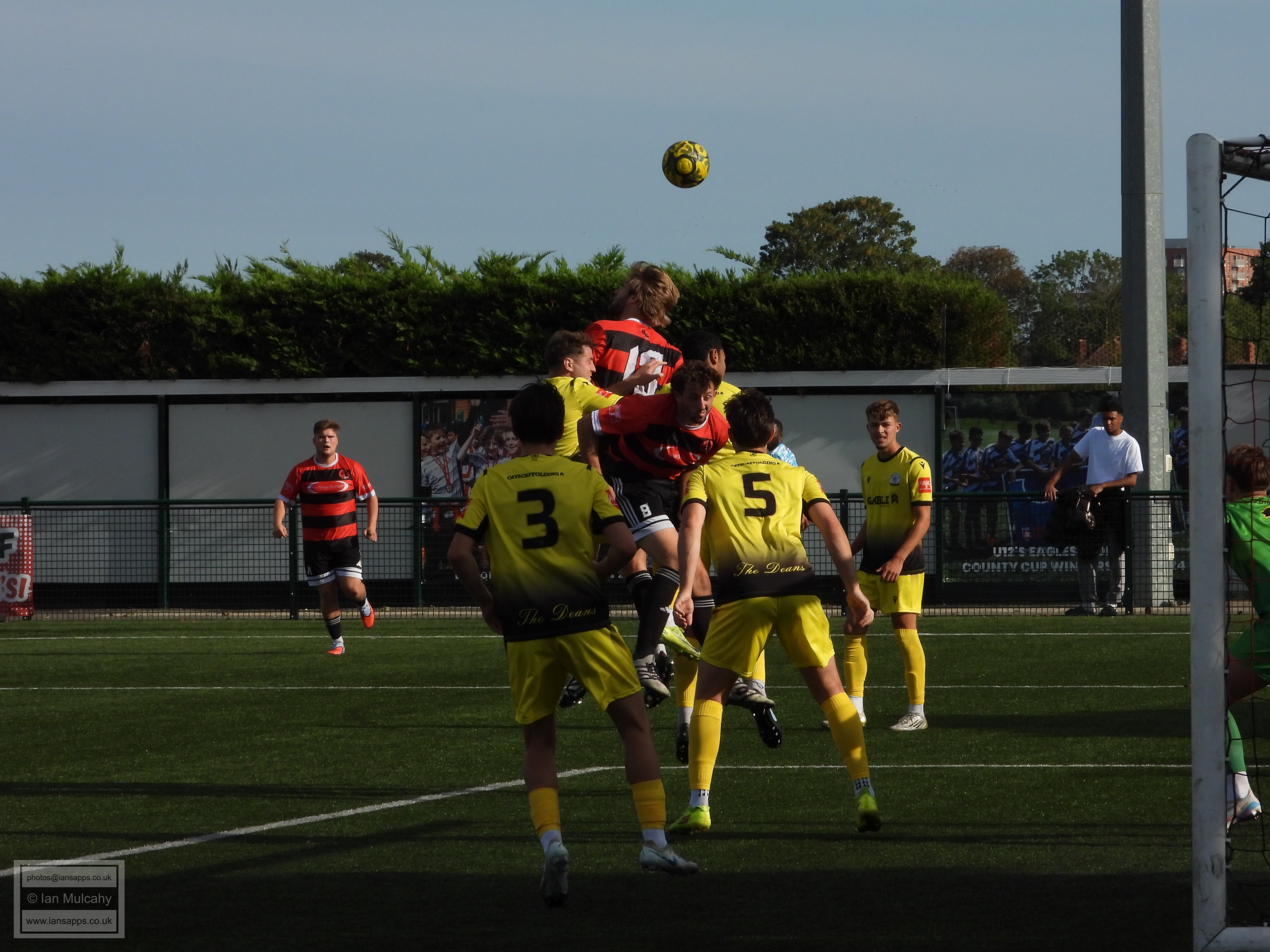 161 ground and match photos taken at the FA Trophy First Qualifying Round match between Bedfont Sports and Horndean at Bedfont Recreation Ground. This match was uneventful to say the least and, besides a flicked long throw which the Horndean keeper helped over the bar (and 3 Horndean goals, rightfully it seemed, disallowed for offside) the first shot on target was the first penalty of the shootout. Not a game that will be remembered!