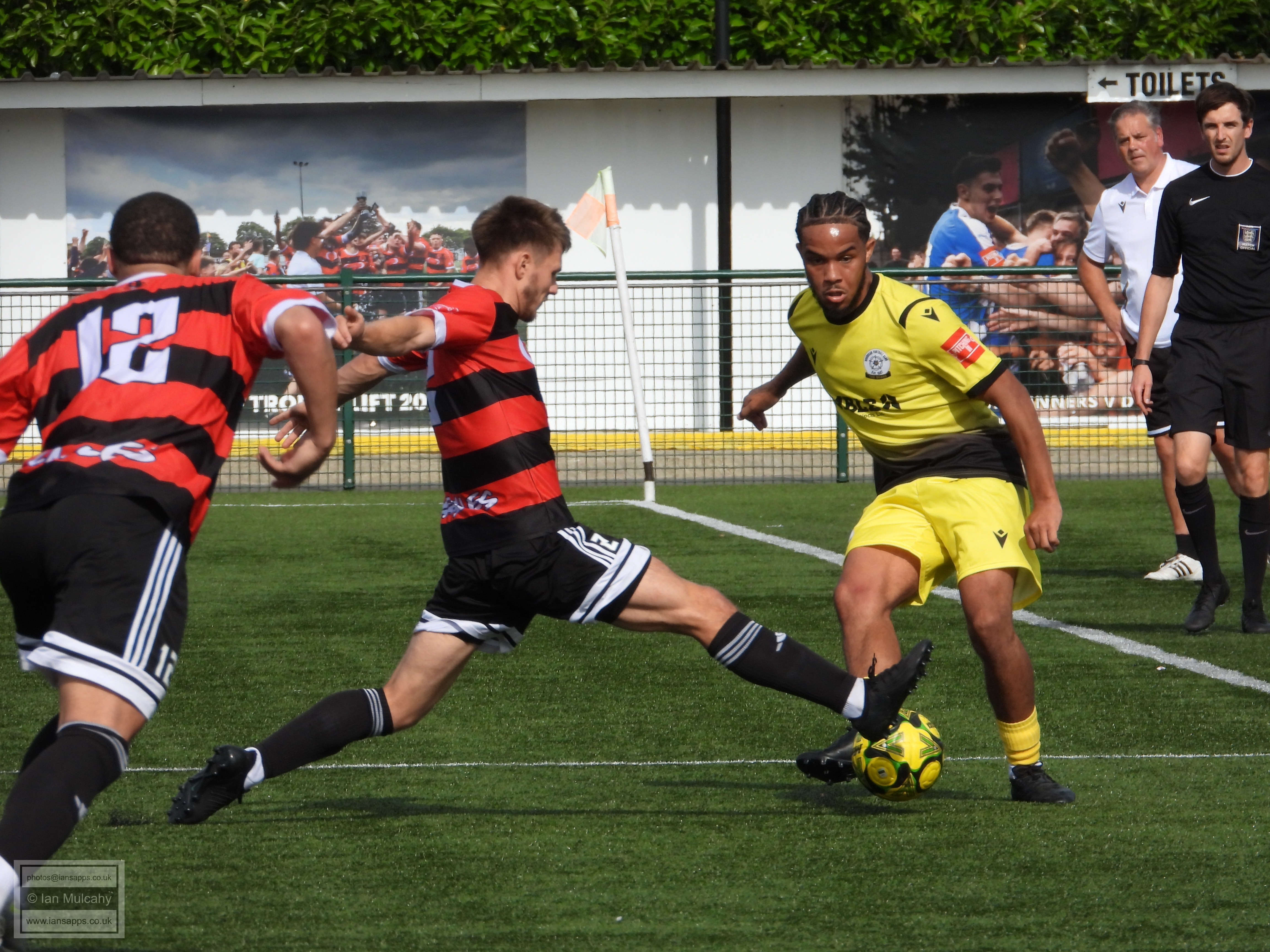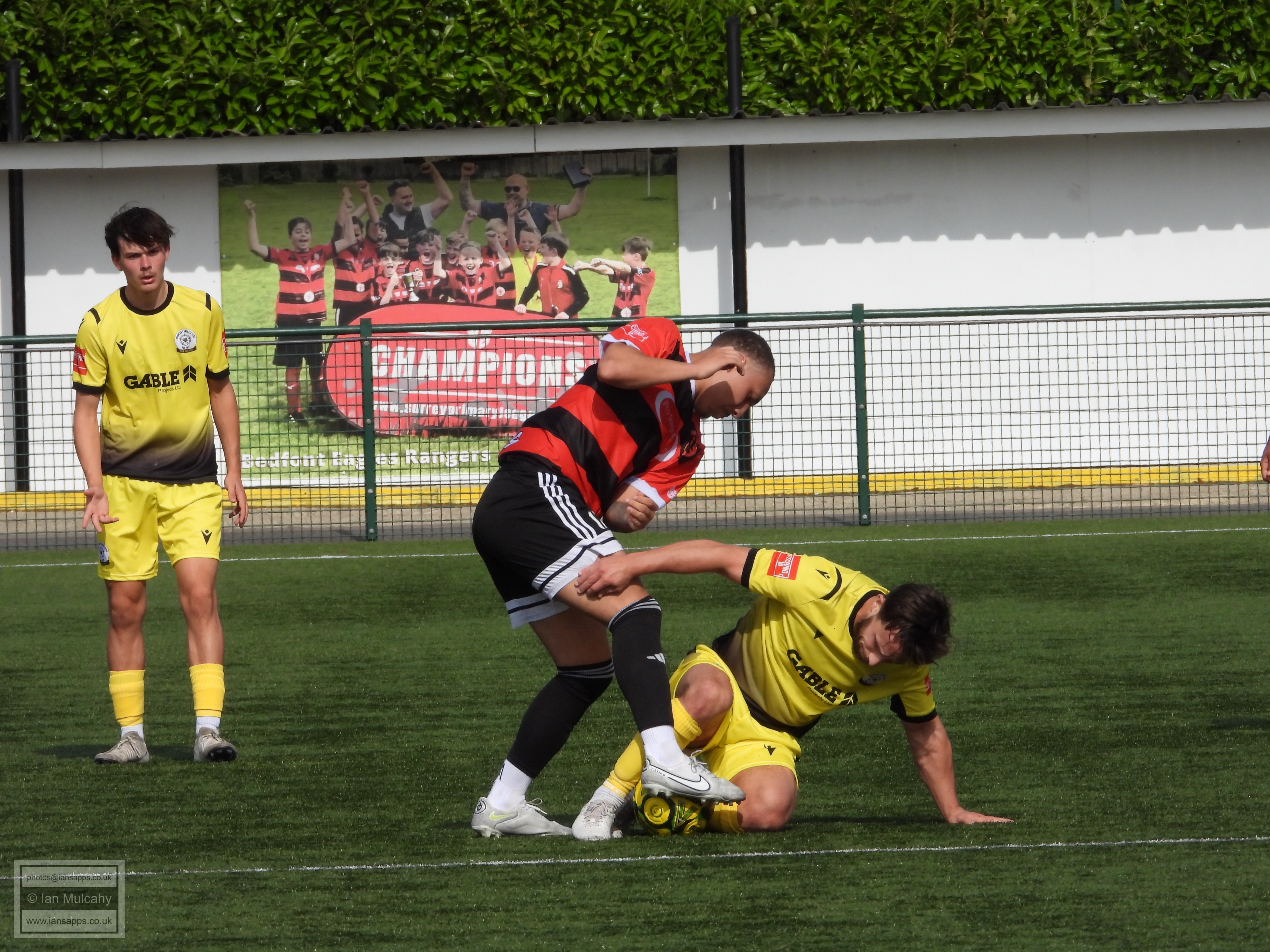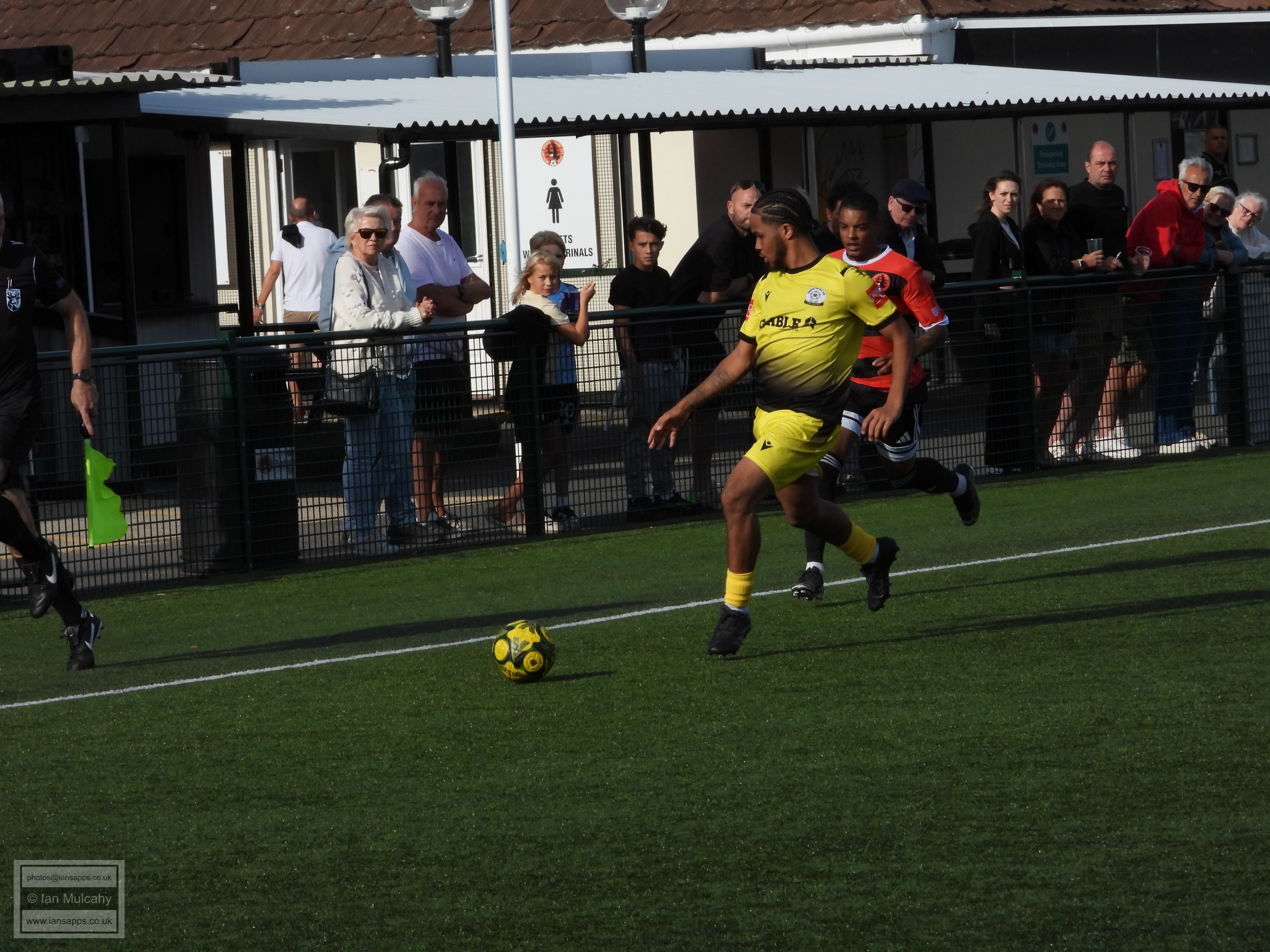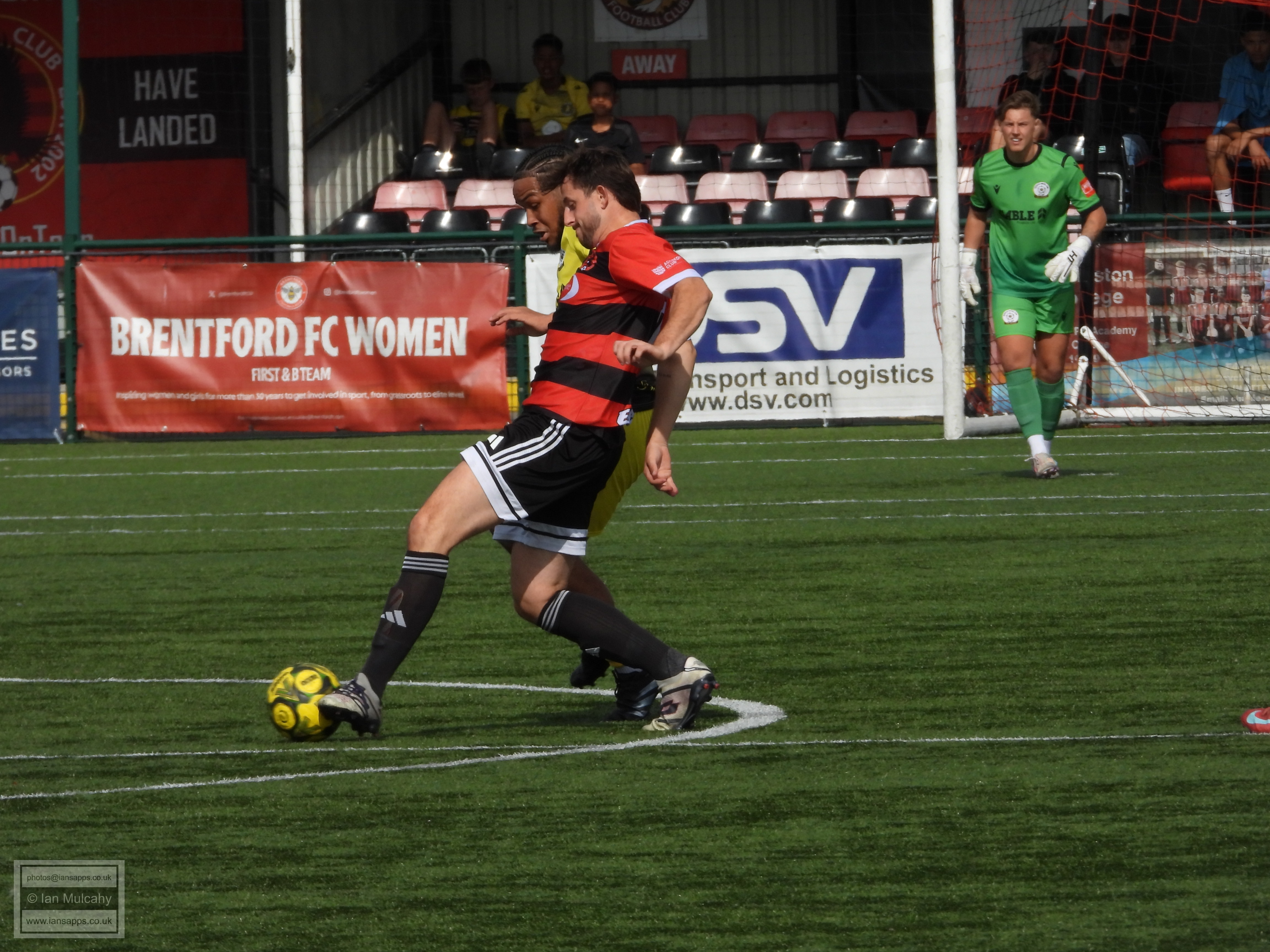 161 ground and match photos taken at the FA Trophy First Qualifying Round match between Bedfont Sports and Horndean at Bedfont Recreation Ground. This match was uneventful to say the least and, besides a flicked long throw which the Horndean keeper helped over the bar (and 3 Horndean goals, rightfully it seemed, disallowed for offside) the first shot on target was the first penalty of the shootout. Not a game that will be remembered!