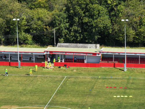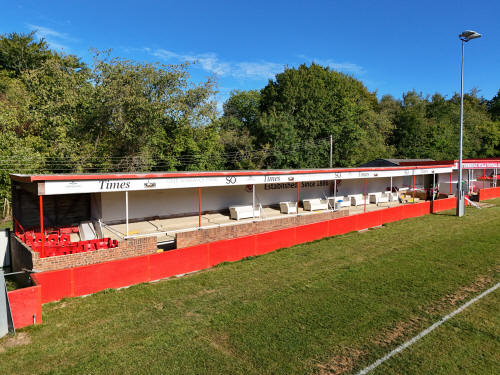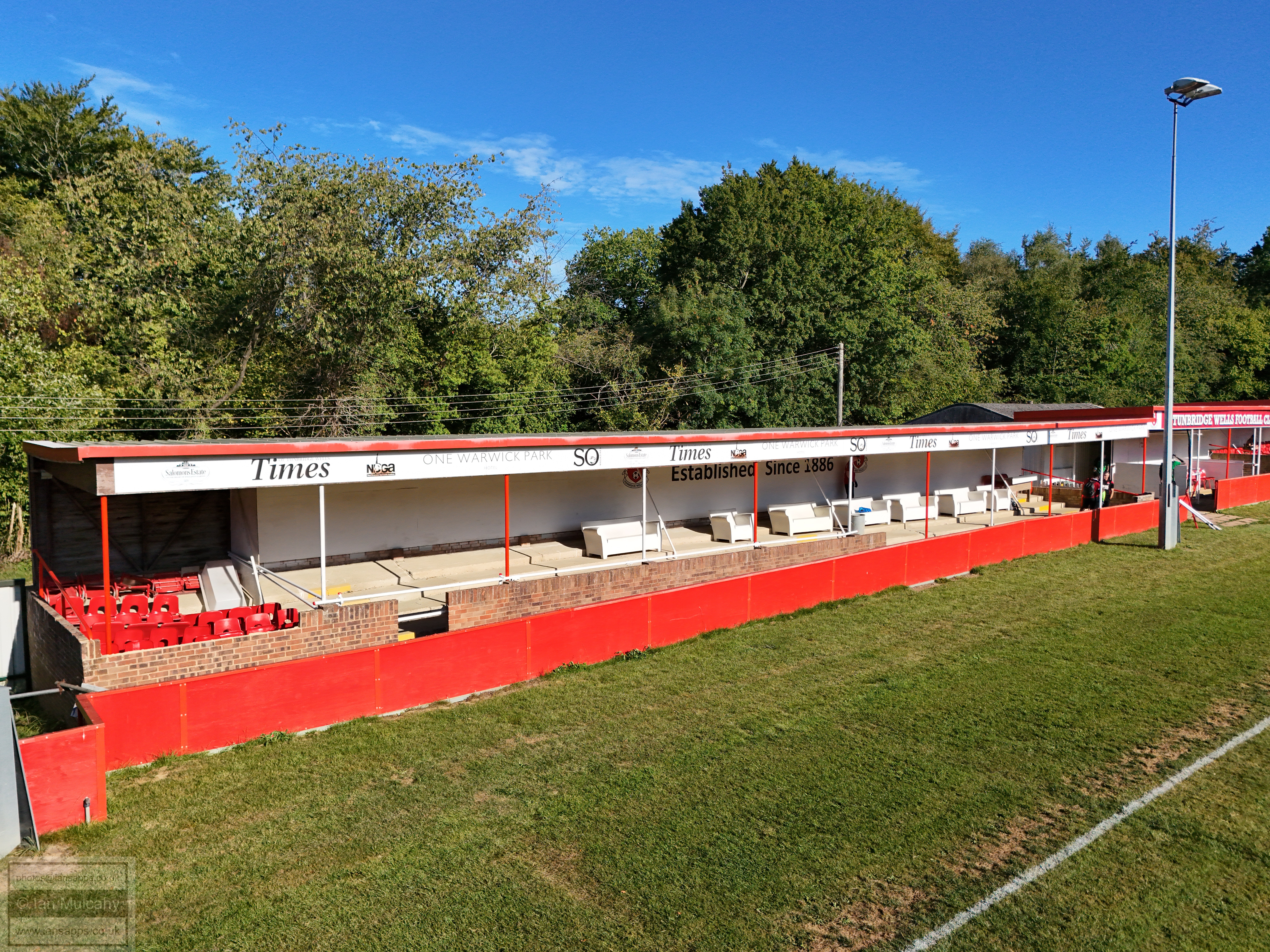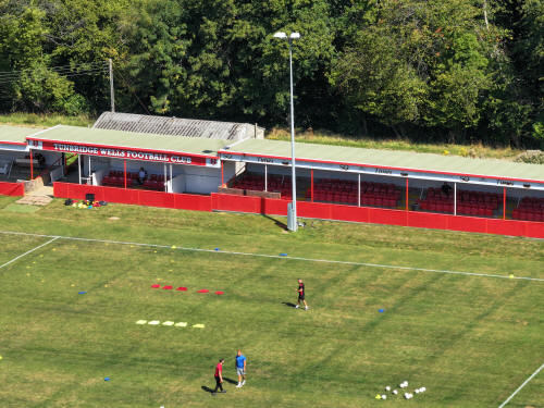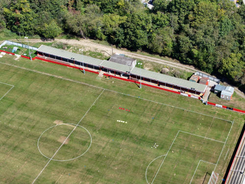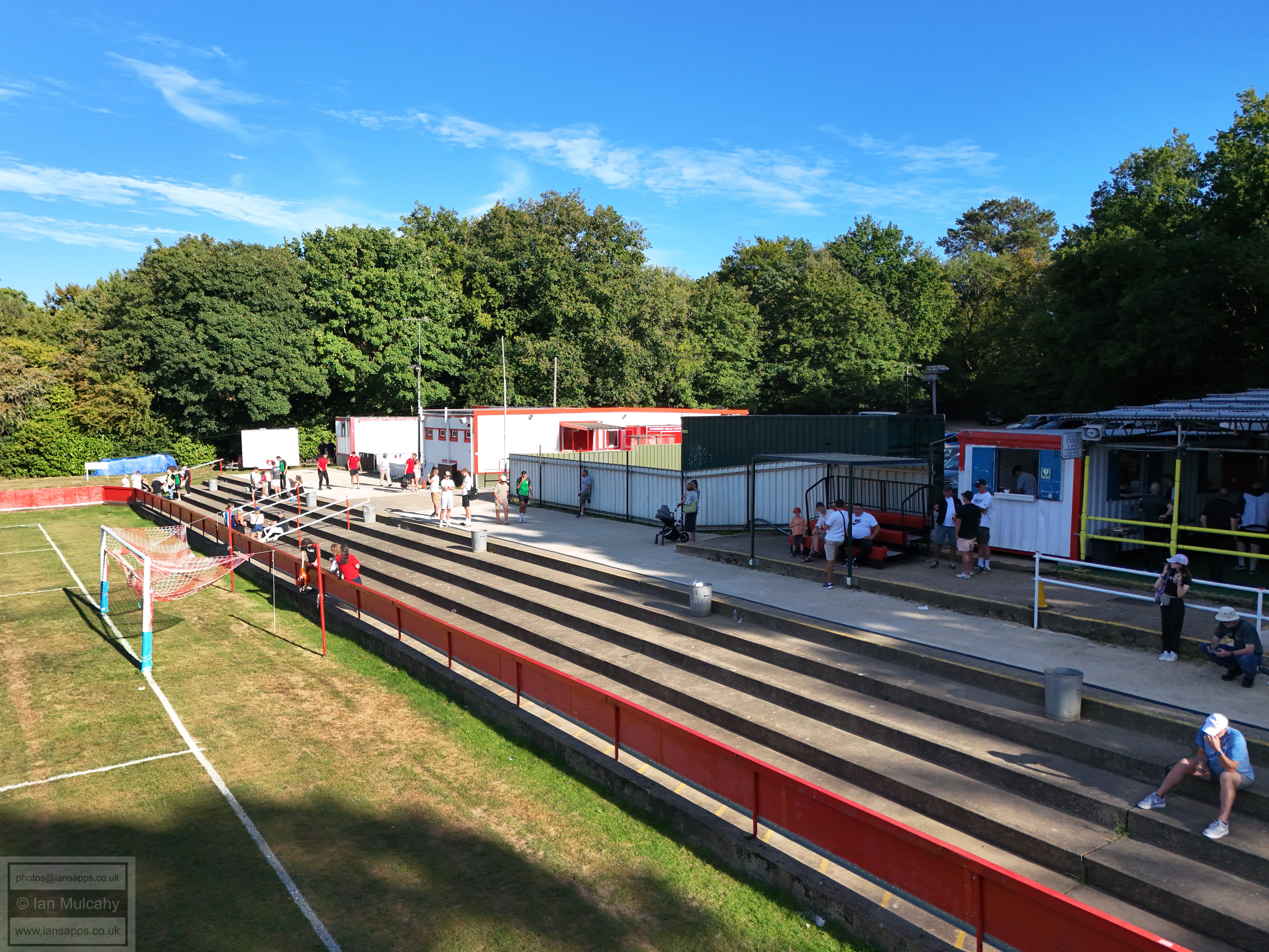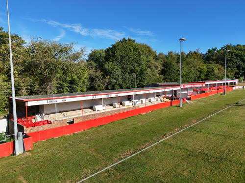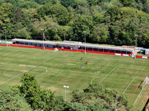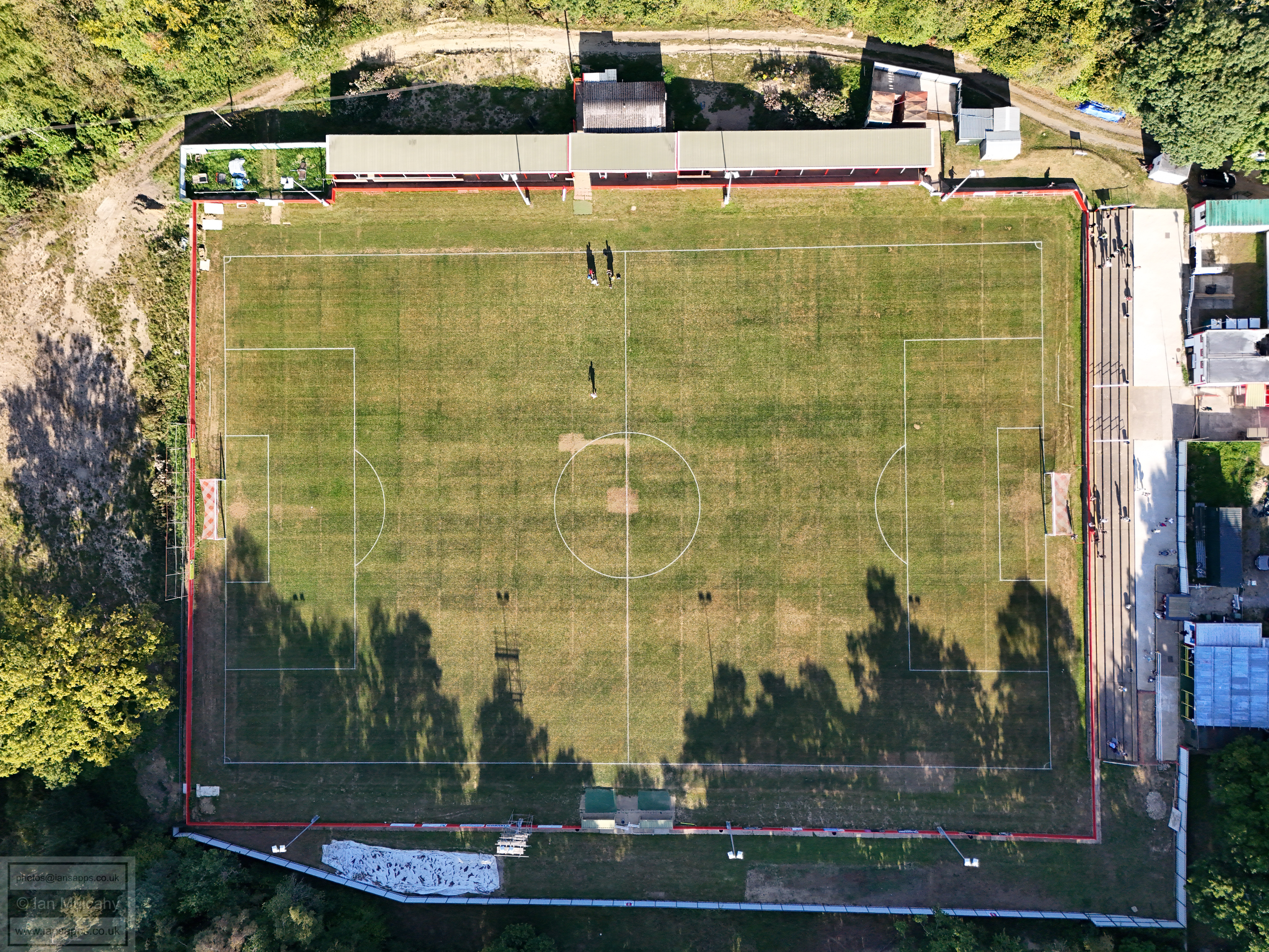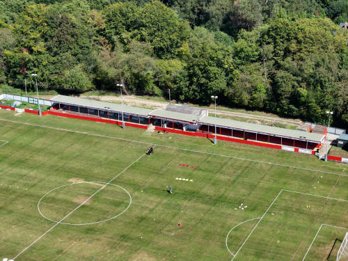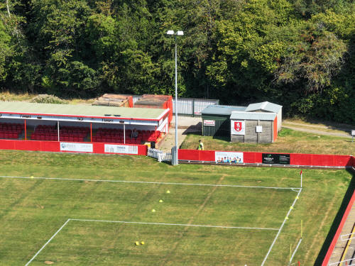The Culverden Stadium is a proper old school ground, with a traditional stand filling almost the entire length of the pitch, a large full width terrace behind the southern goal and not a bolt together Meccano stand in sight. The western side and northern end are both flat, but have large amounts of land, giving the club the opportunity to develop their facilities. A fire started by an electrical fault in January 2023 virtually destroyed the club house and it remains out of use, which must be a financial hit to the club. The collapsed roof can be seen on some of the aerial images.