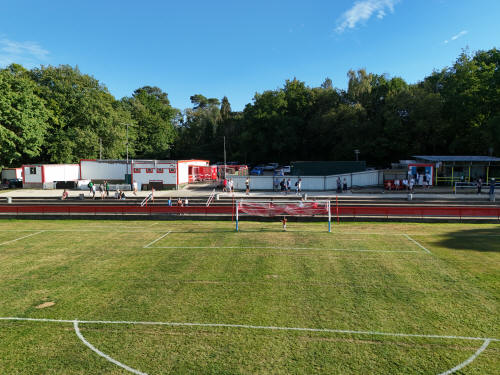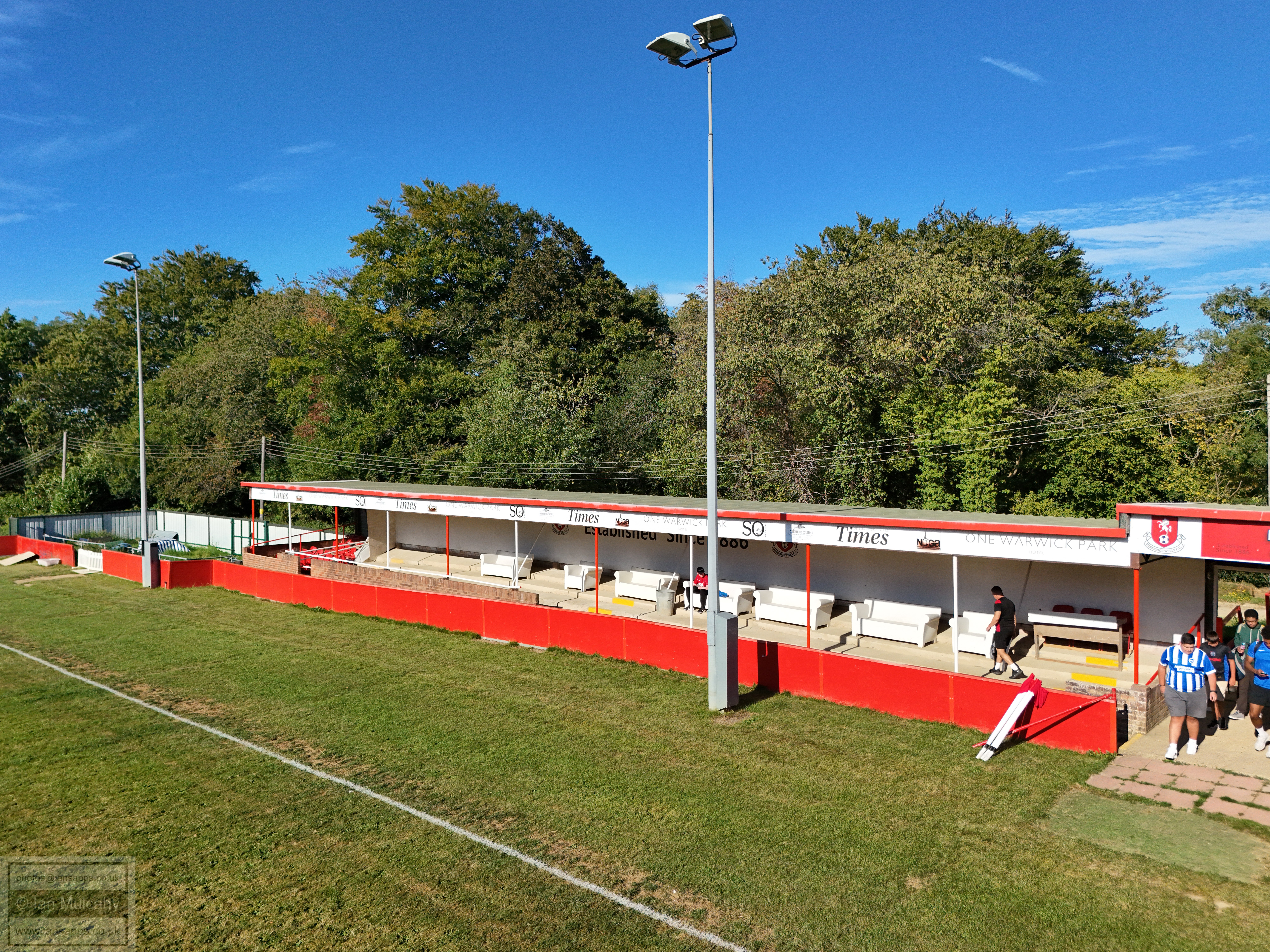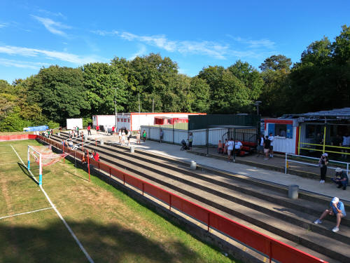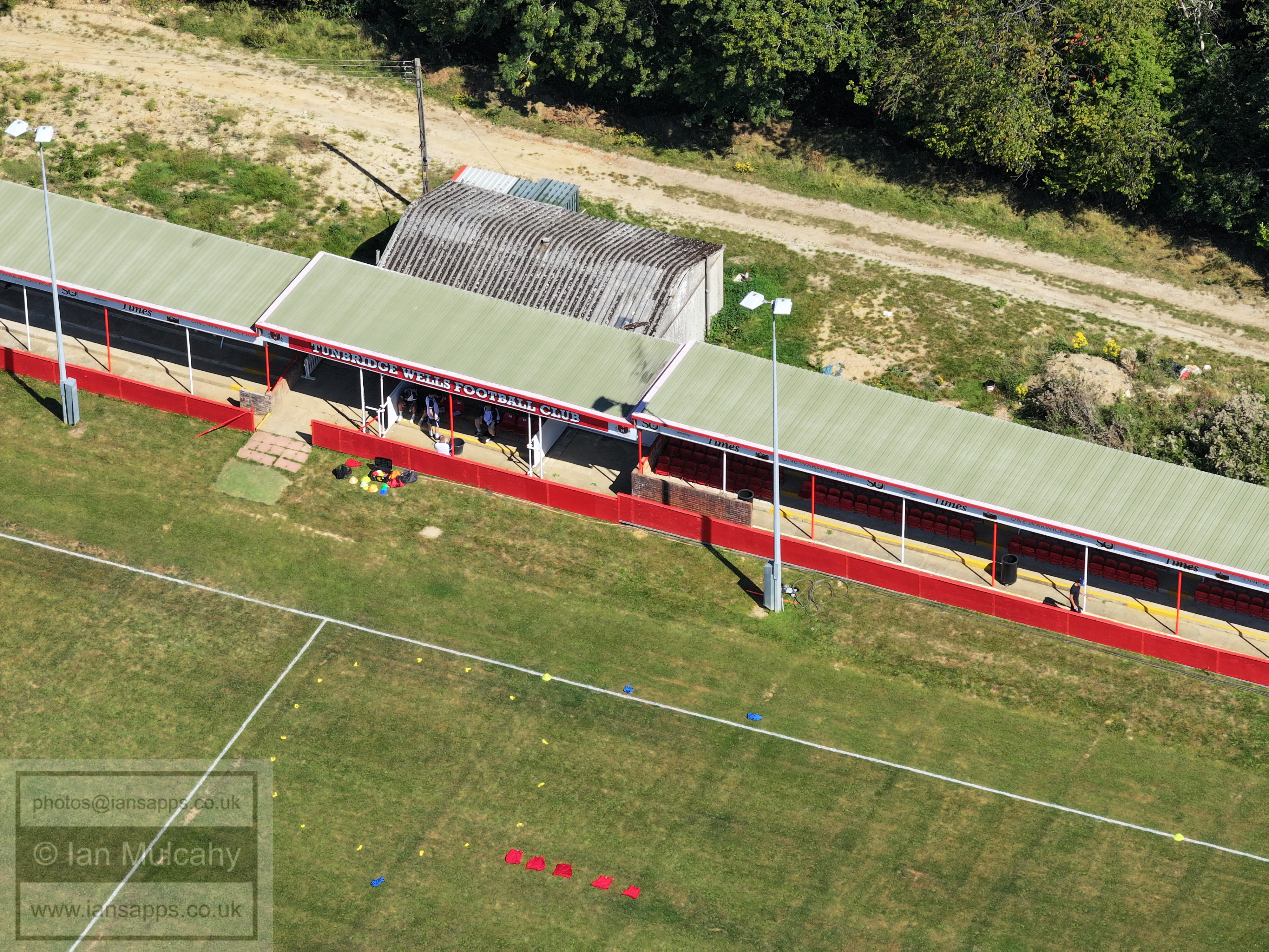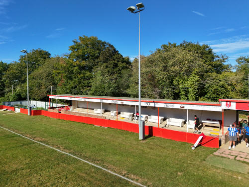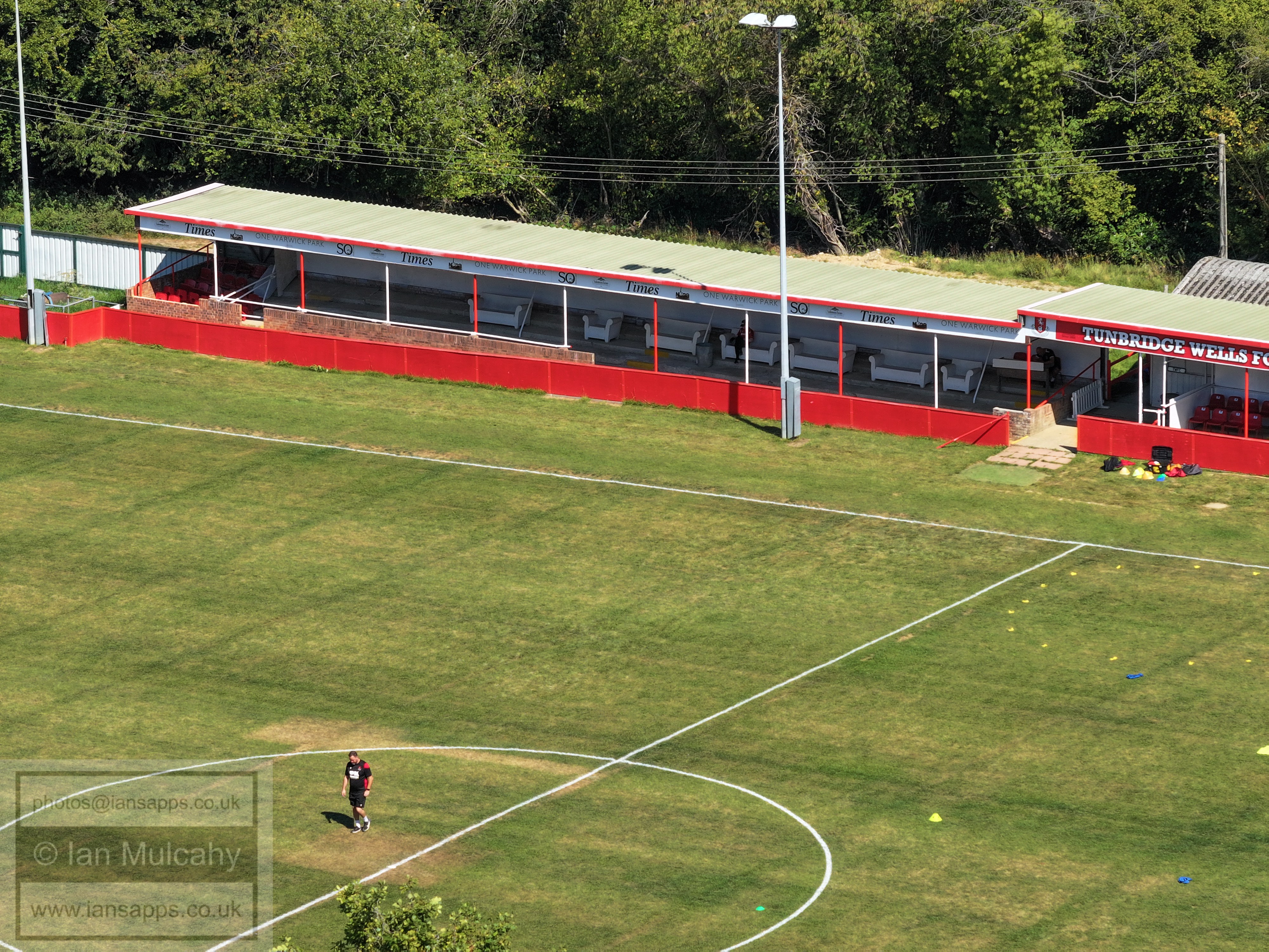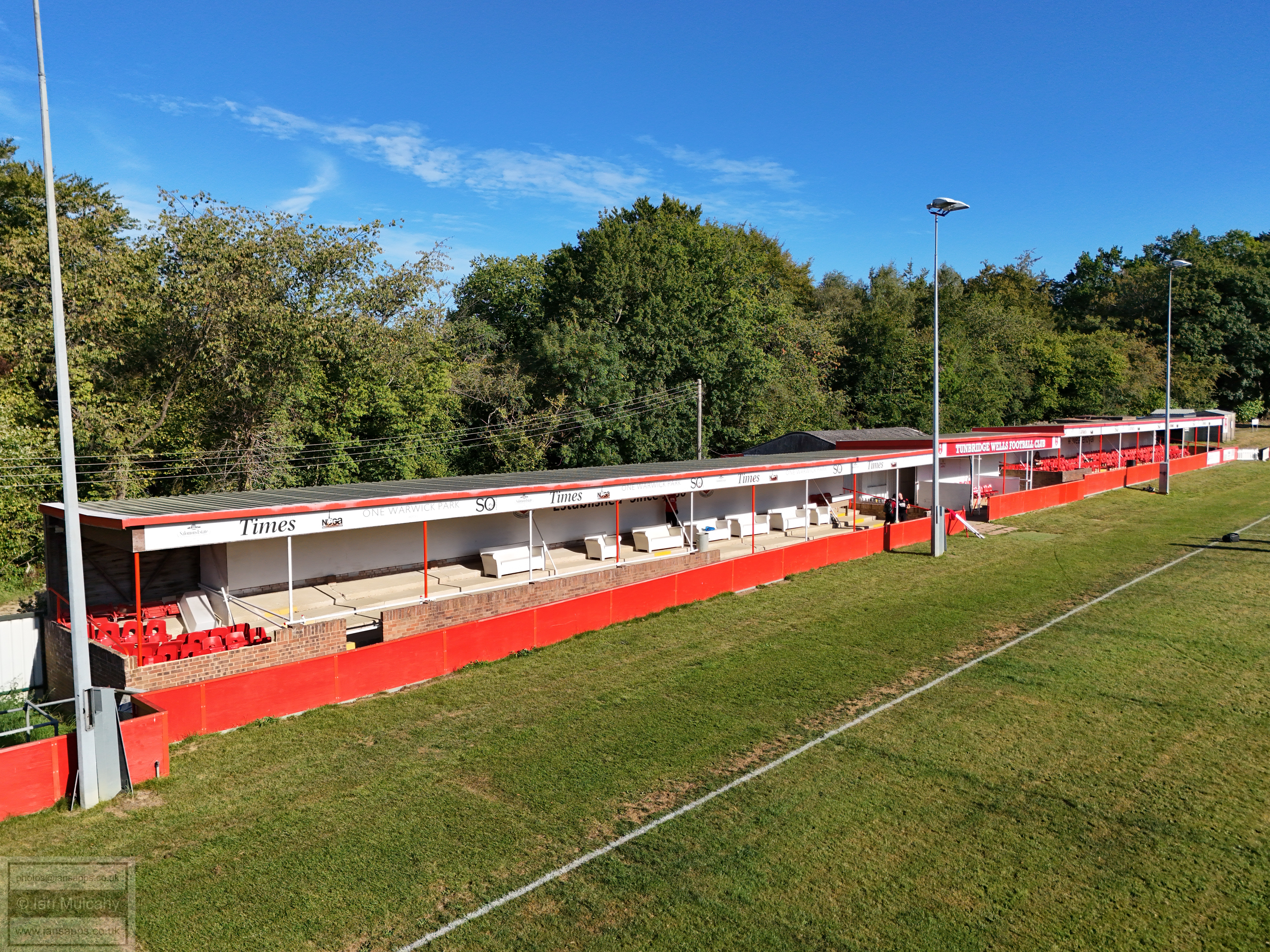 The Culverden Stadium is a proper old school ground, with a traditional stand filling almost the entire length of the pitch, a large full width terrace behind the southern goal and not a bolt together Meccano stand in sight. The western side and northern end are both flat, but have large amounts of land, giving the club the opportunity to develop their facilities. A fire started by an electrical fault in January 2023 virtually destroyed the club house and it remains out of use, which must be a financial hit to the club. The collapsed roof can be seen on some of the aerial images.