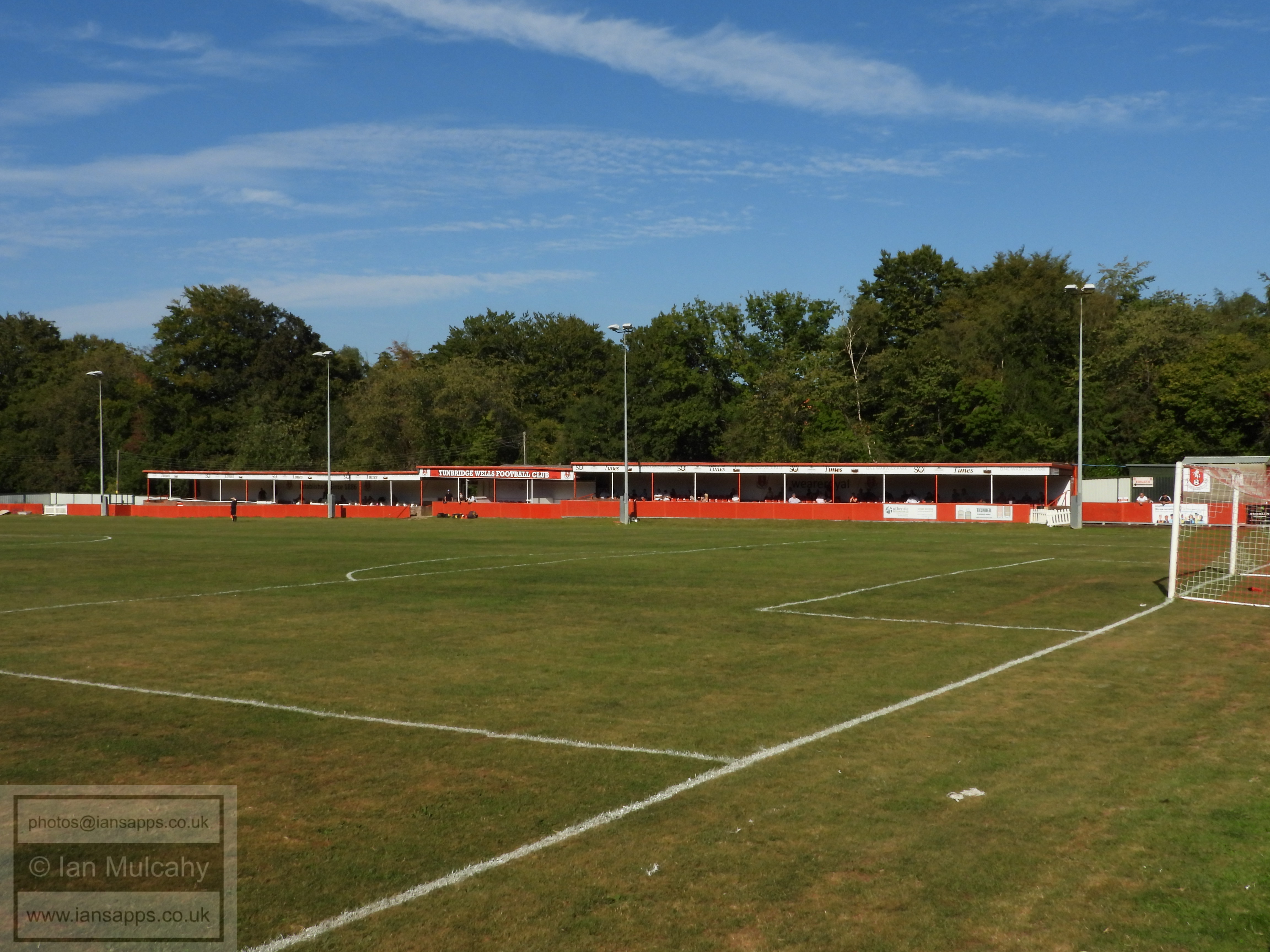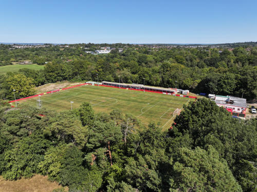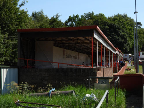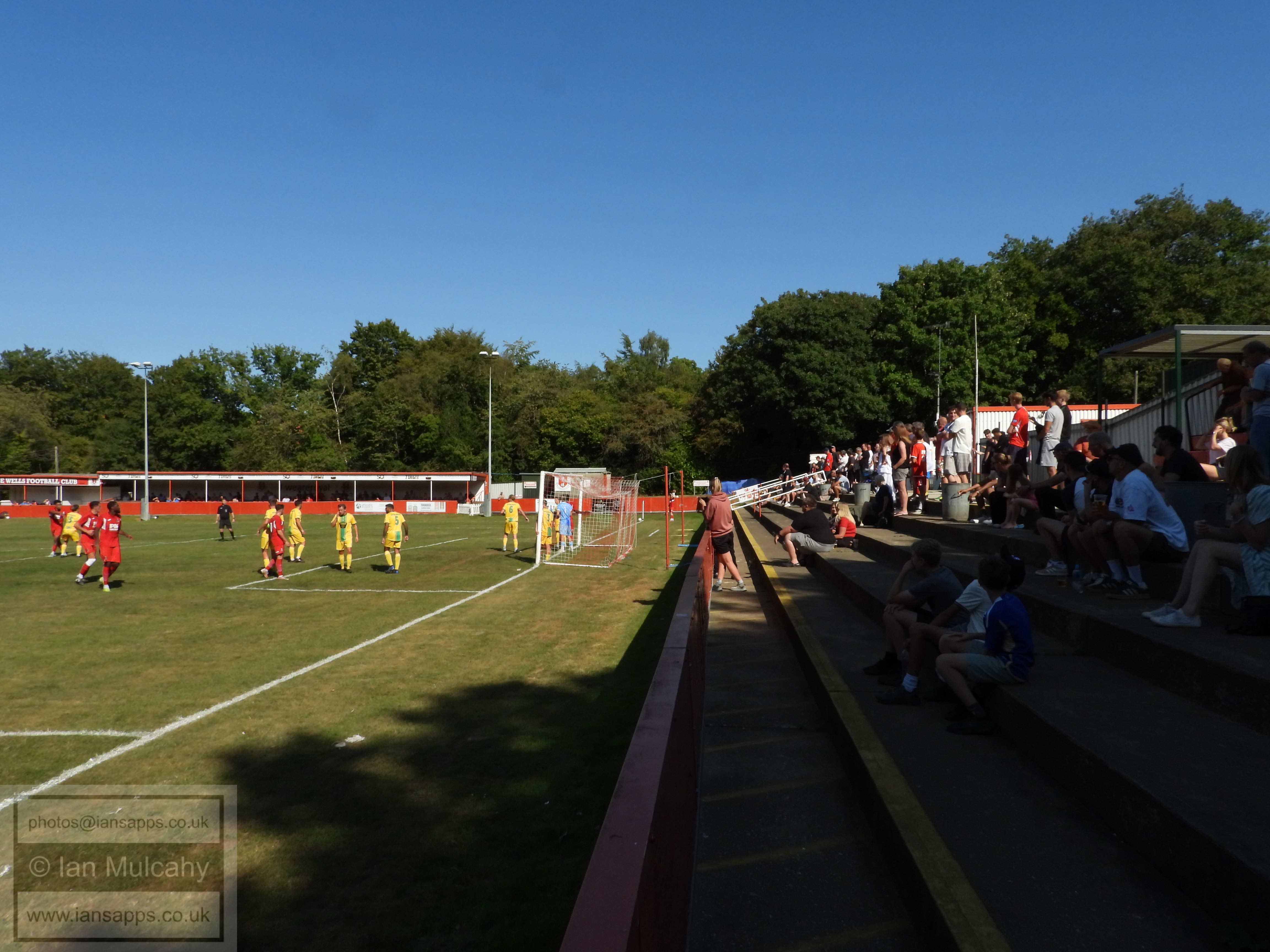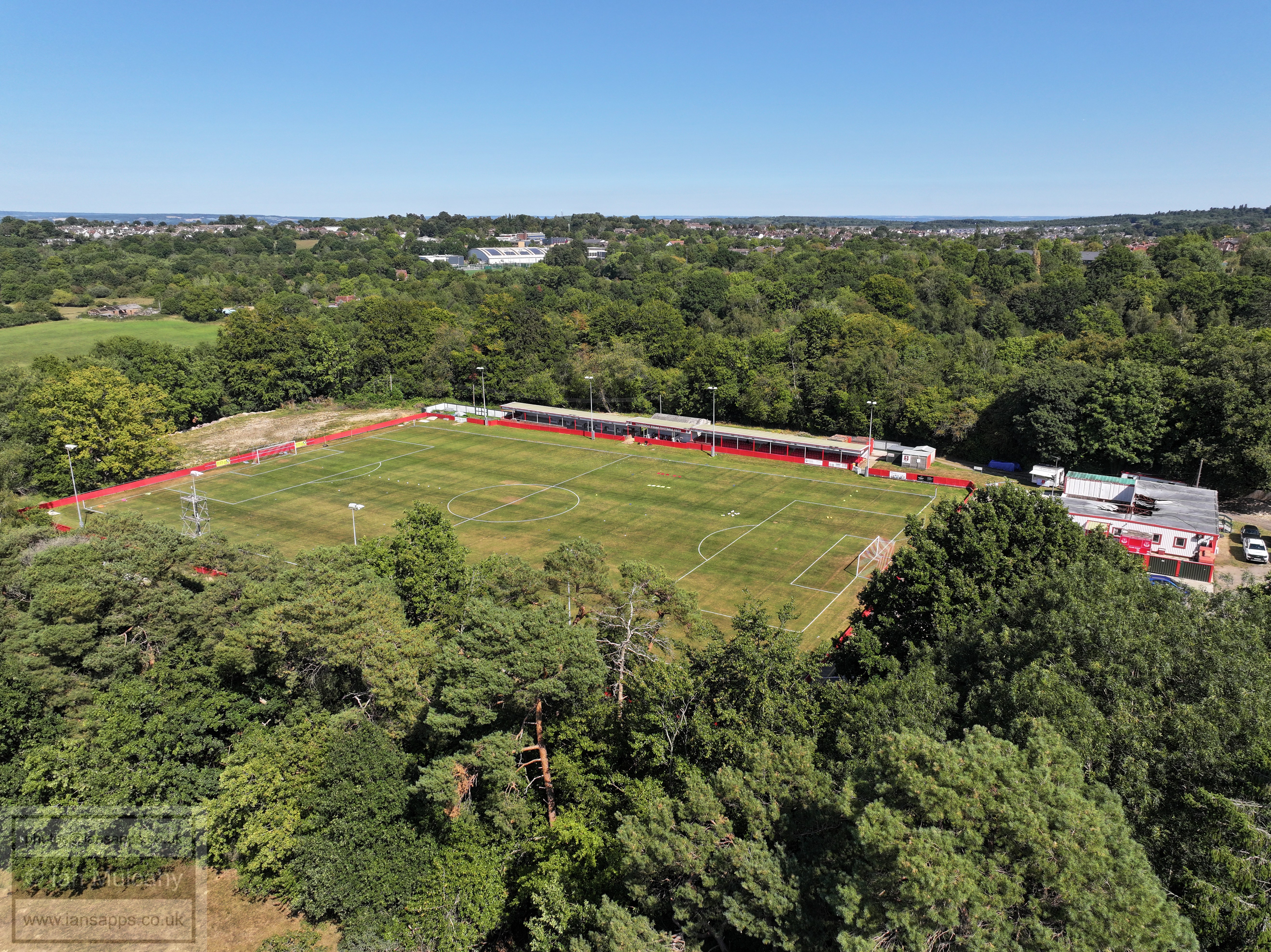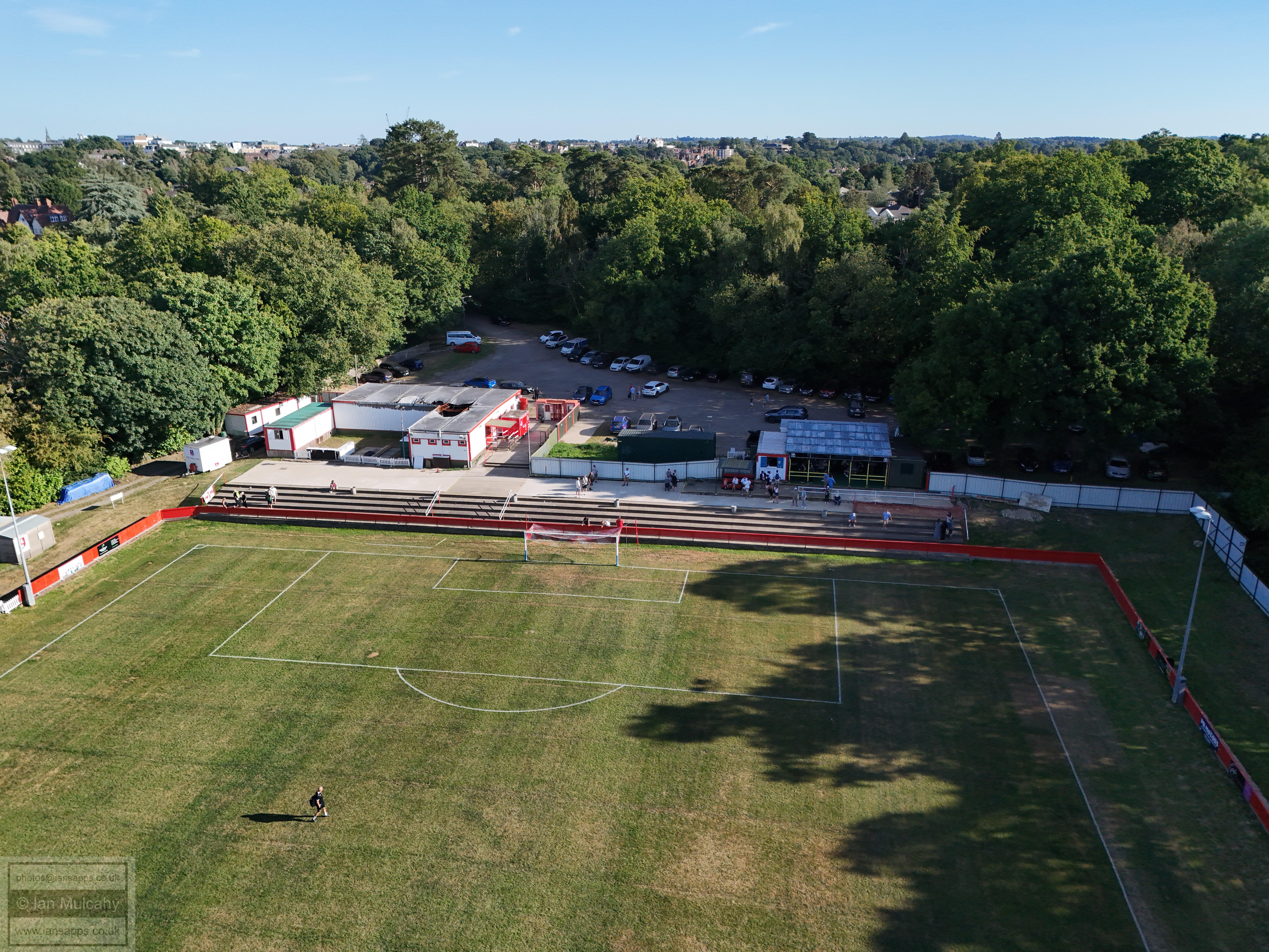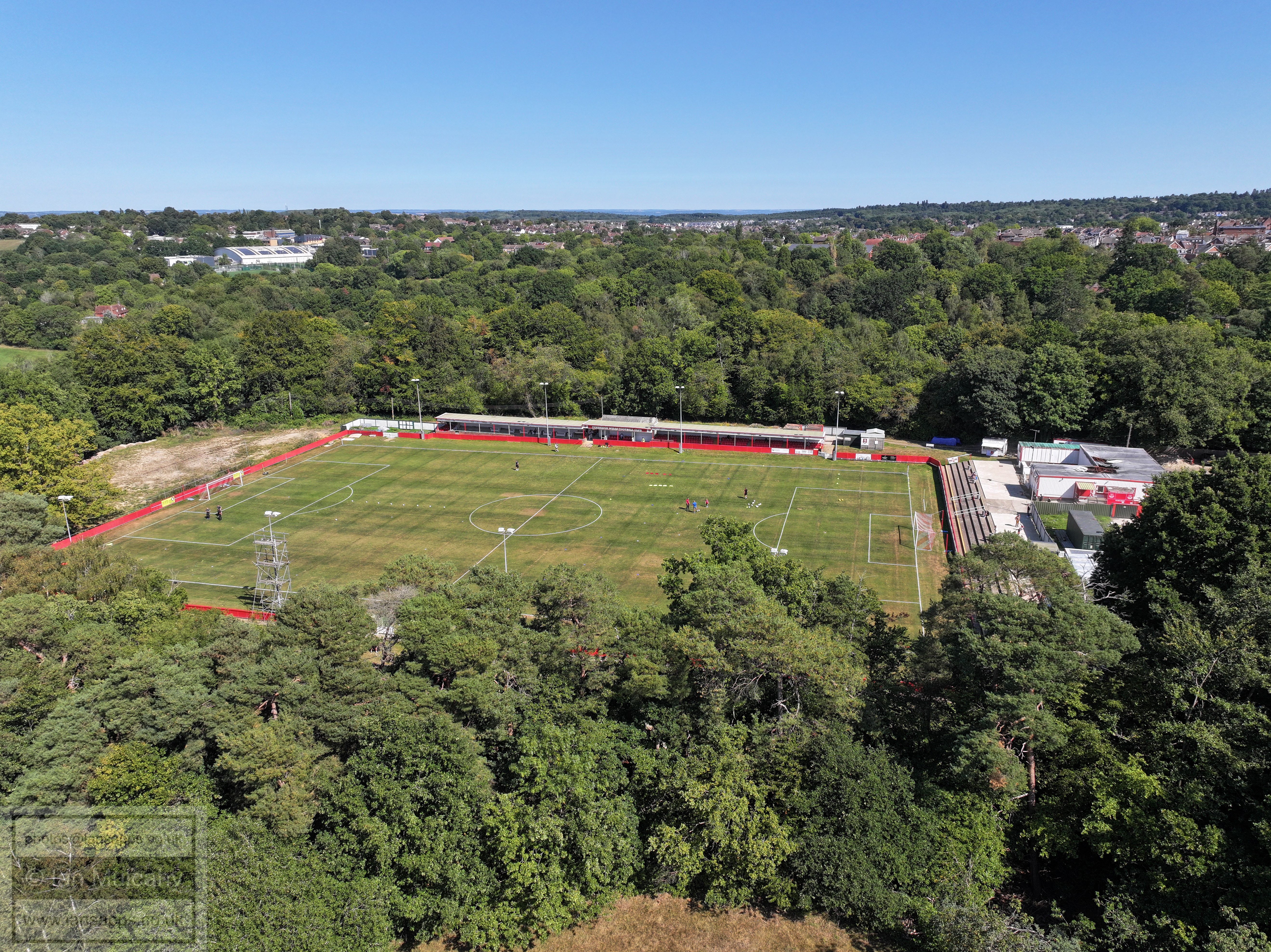 The Culverden Stadium is a proper old school ground, with a traditional stand filling almost the entire length of the pitch, a large full width terrace behind the southern goal and not a bolt together Meccano stand in sight. The western side and northern end are both flat, but have large amounts of land, giving the club the opportunity to develop their facilities. A fire started by an electrical fault in January 2023 virtually destroyed the club house and it remains out of use, which must be a financial hit to the club. The collapsed roof can be seen on some of the aerial images.