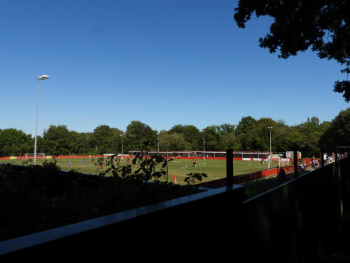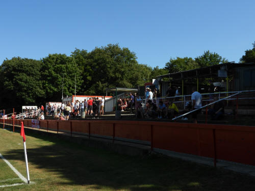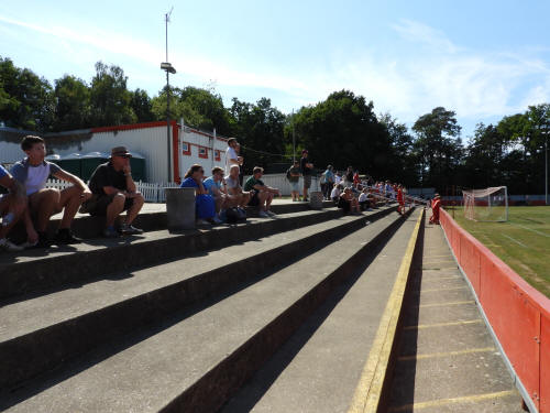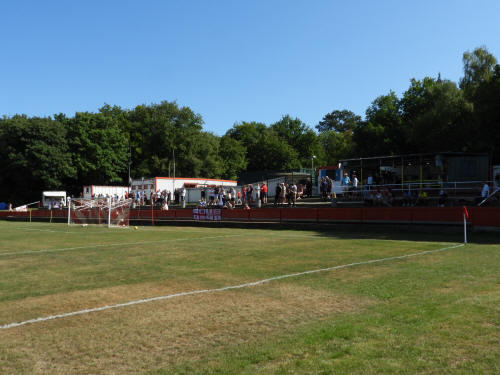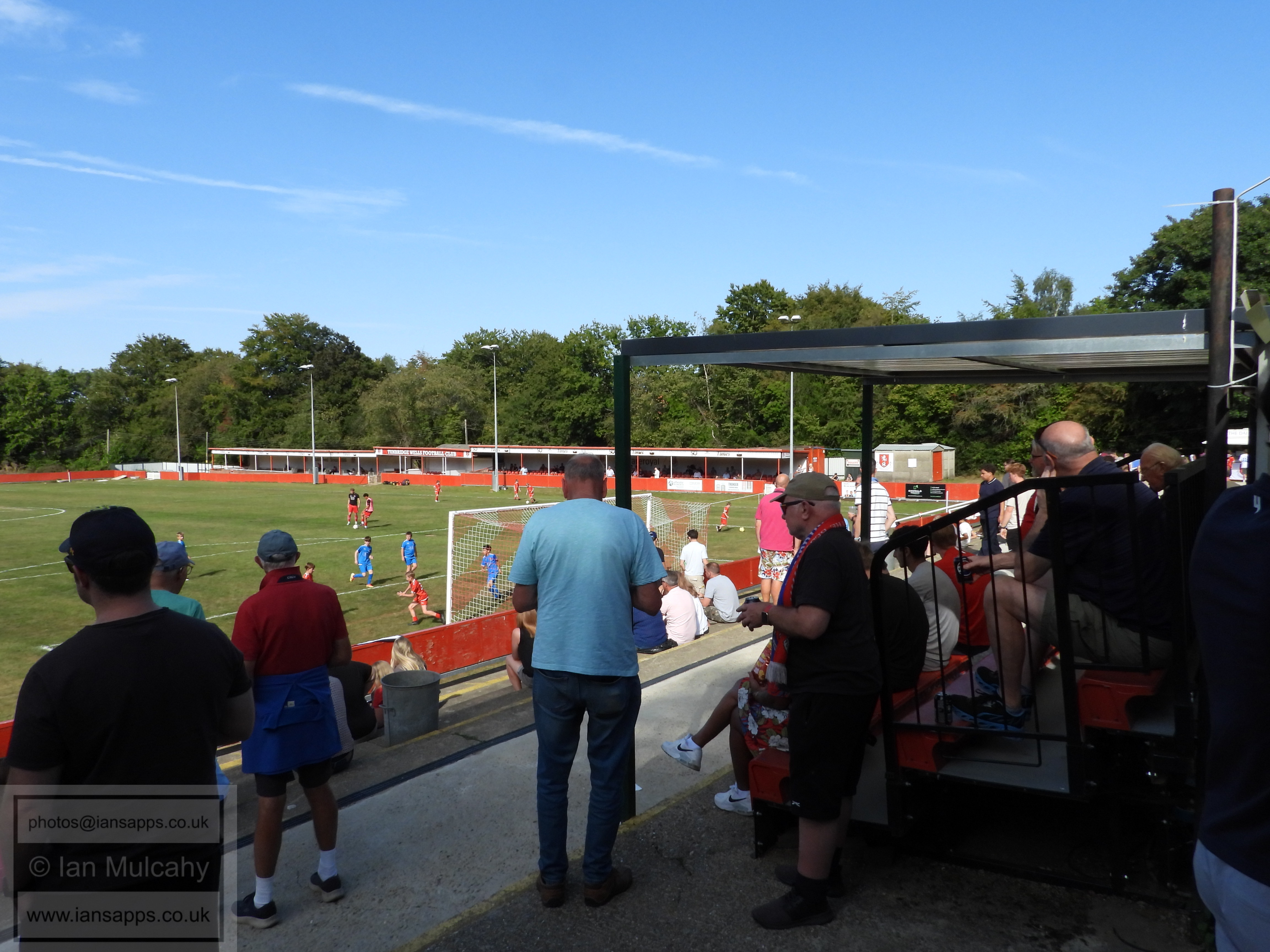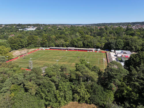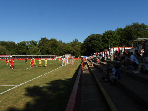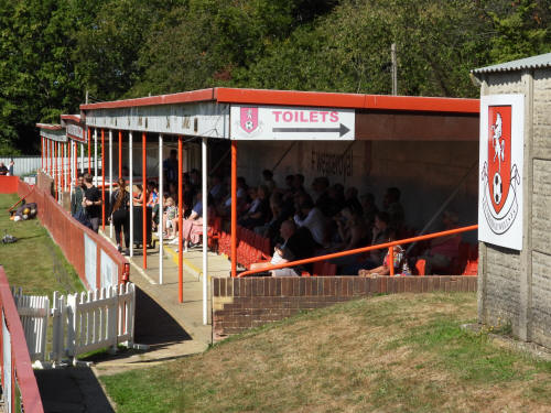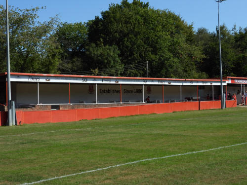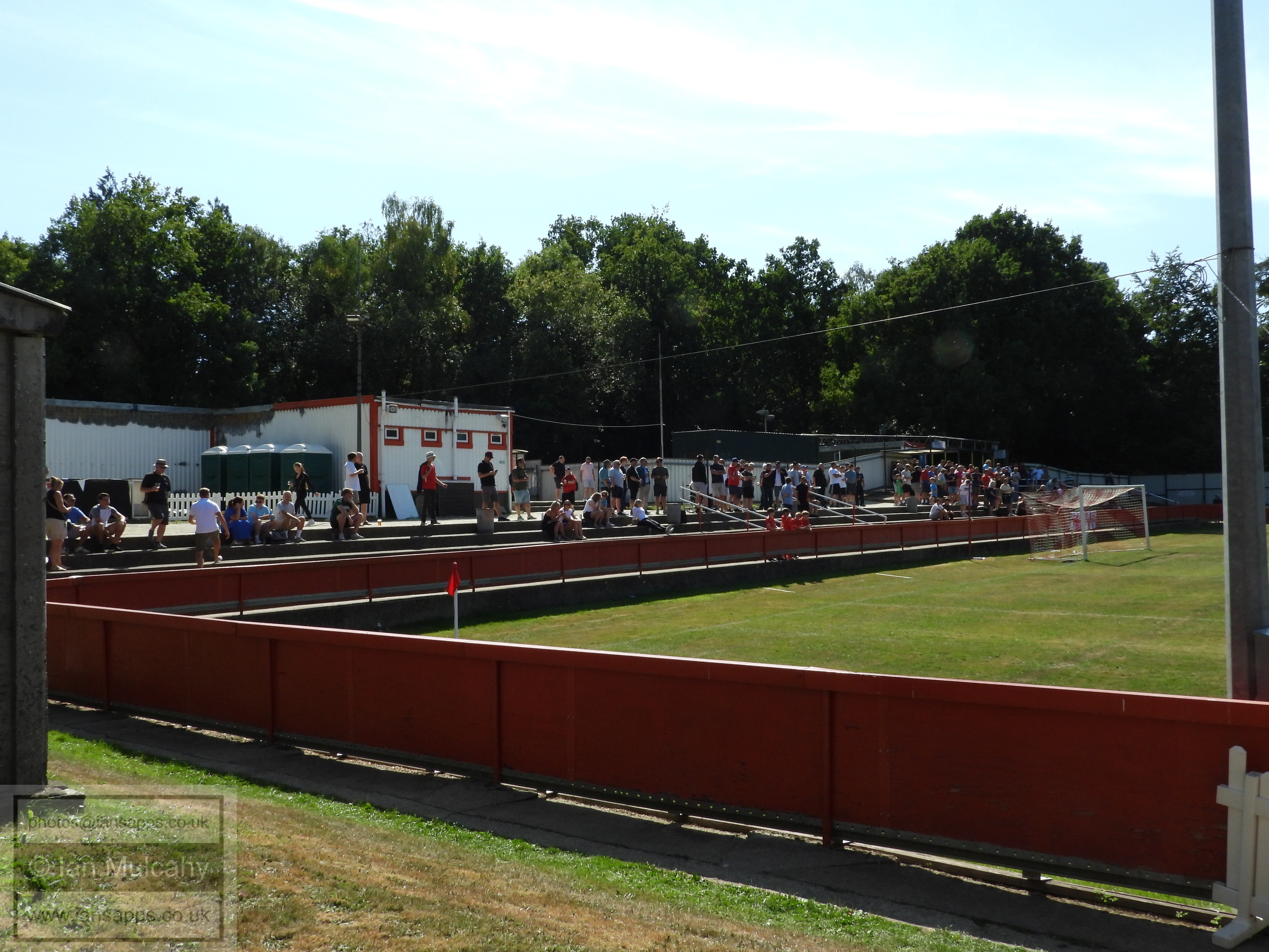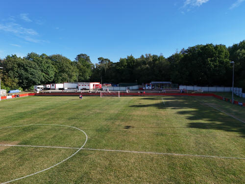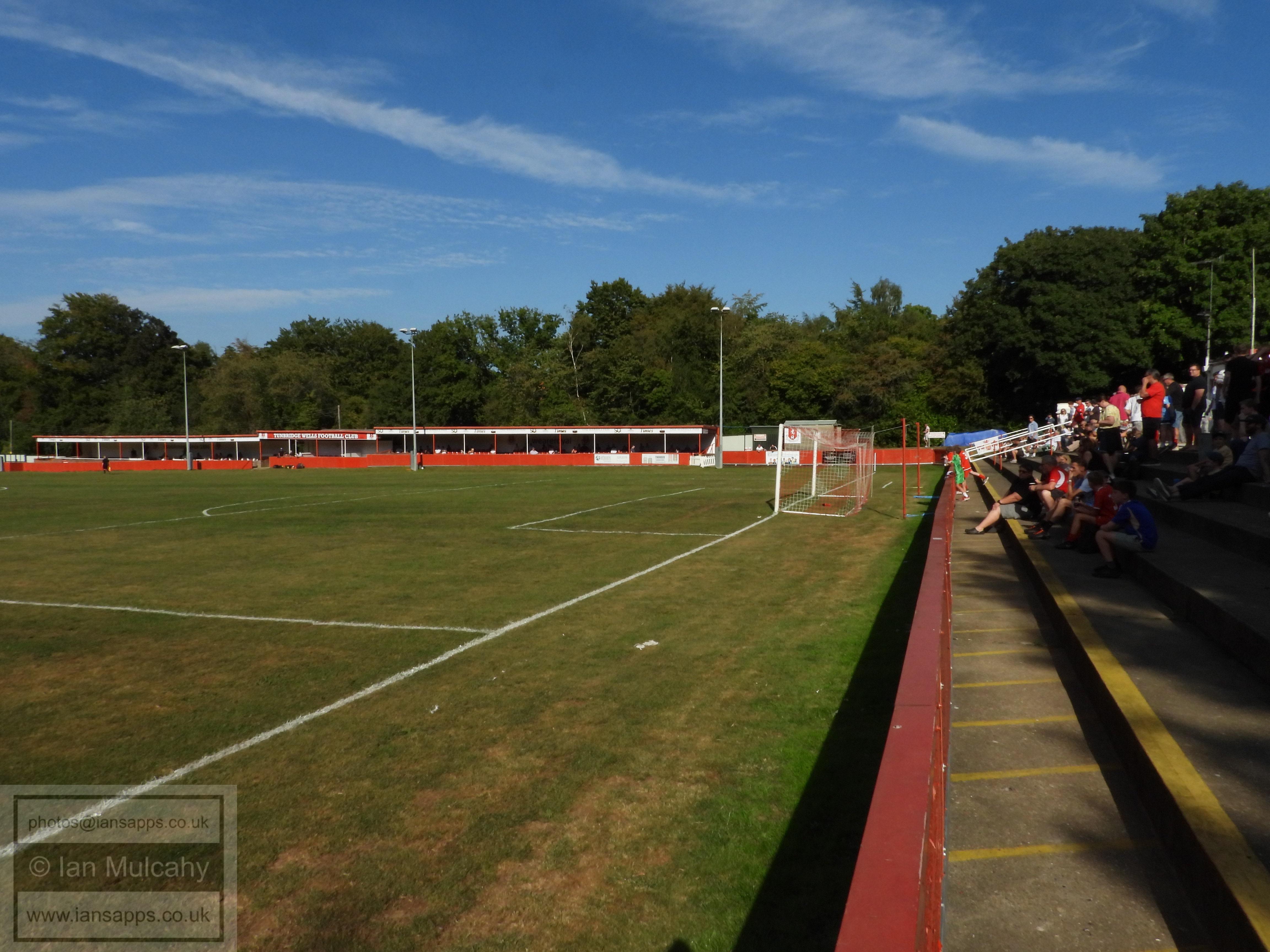 The Culverden Stadium is a proper old school ground, with a traditional stand filling almost the entire length of the pitch, a large full width terrace behind the southern goal and not a bolt together Meccano stand in sight. The western side and northern end are both flat, but have large amounts of land, giving the club the opportunity to develop their facilities. A fire started by an electrical fault in January 2023 virtually destroyed the club house and it remains out of use, which must be a financial hit to the club. The collapsed roof can be seen on some of the aerial images.