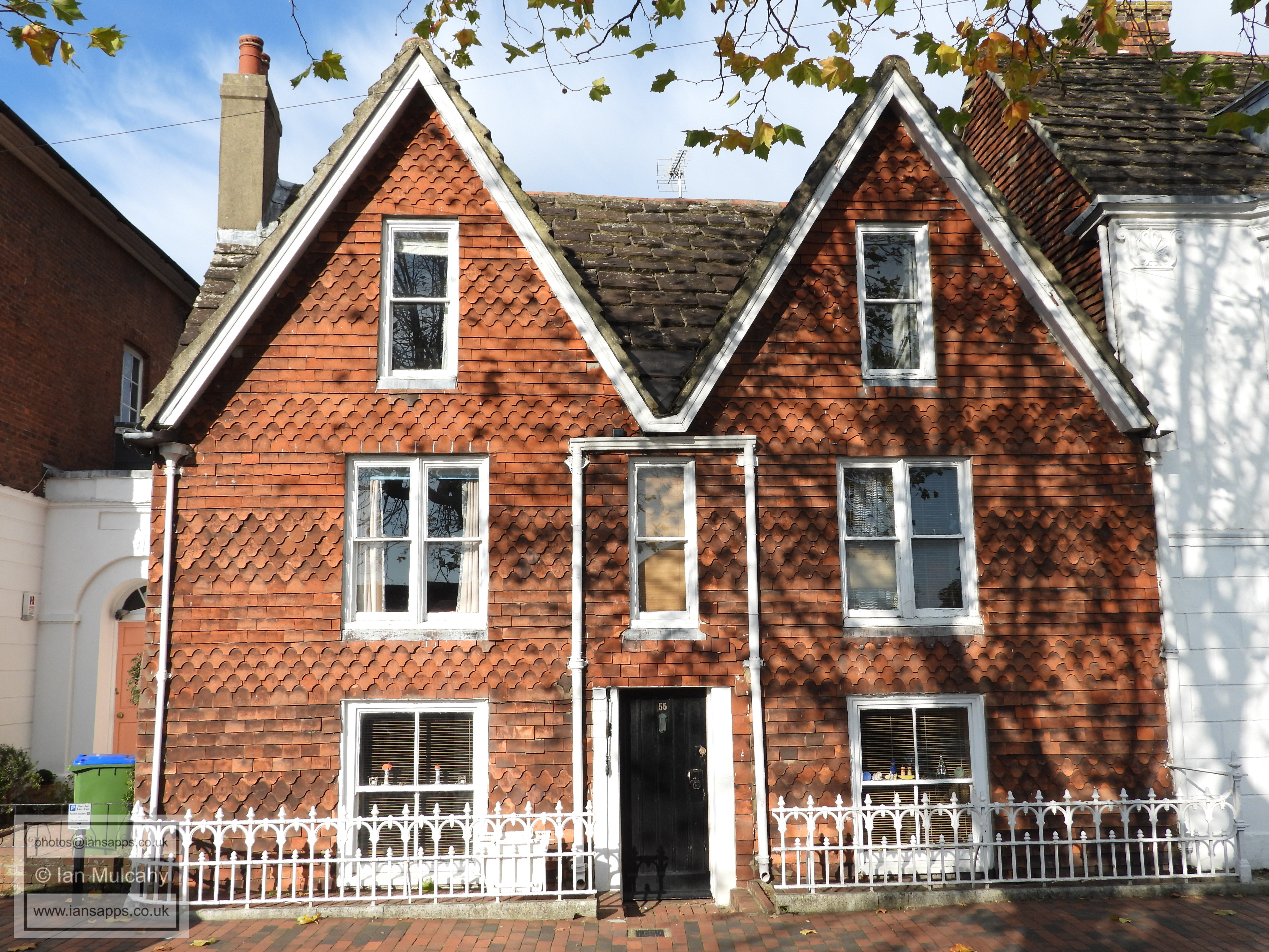 Gables Cottage & Railings (55 Southover High Street). Grade 2 listed building. C17. (Railings C19, contemporary with the refronting of the house)
