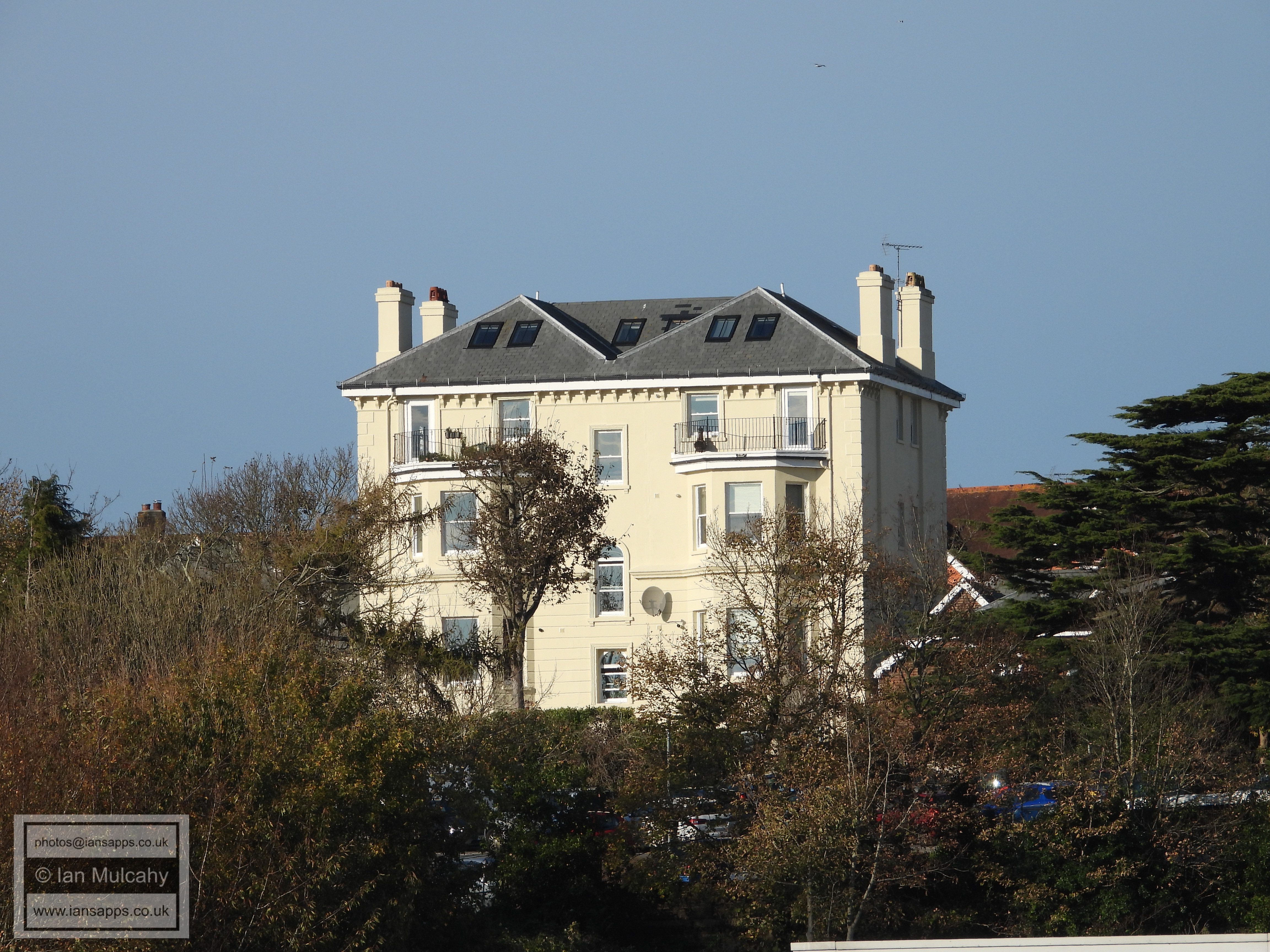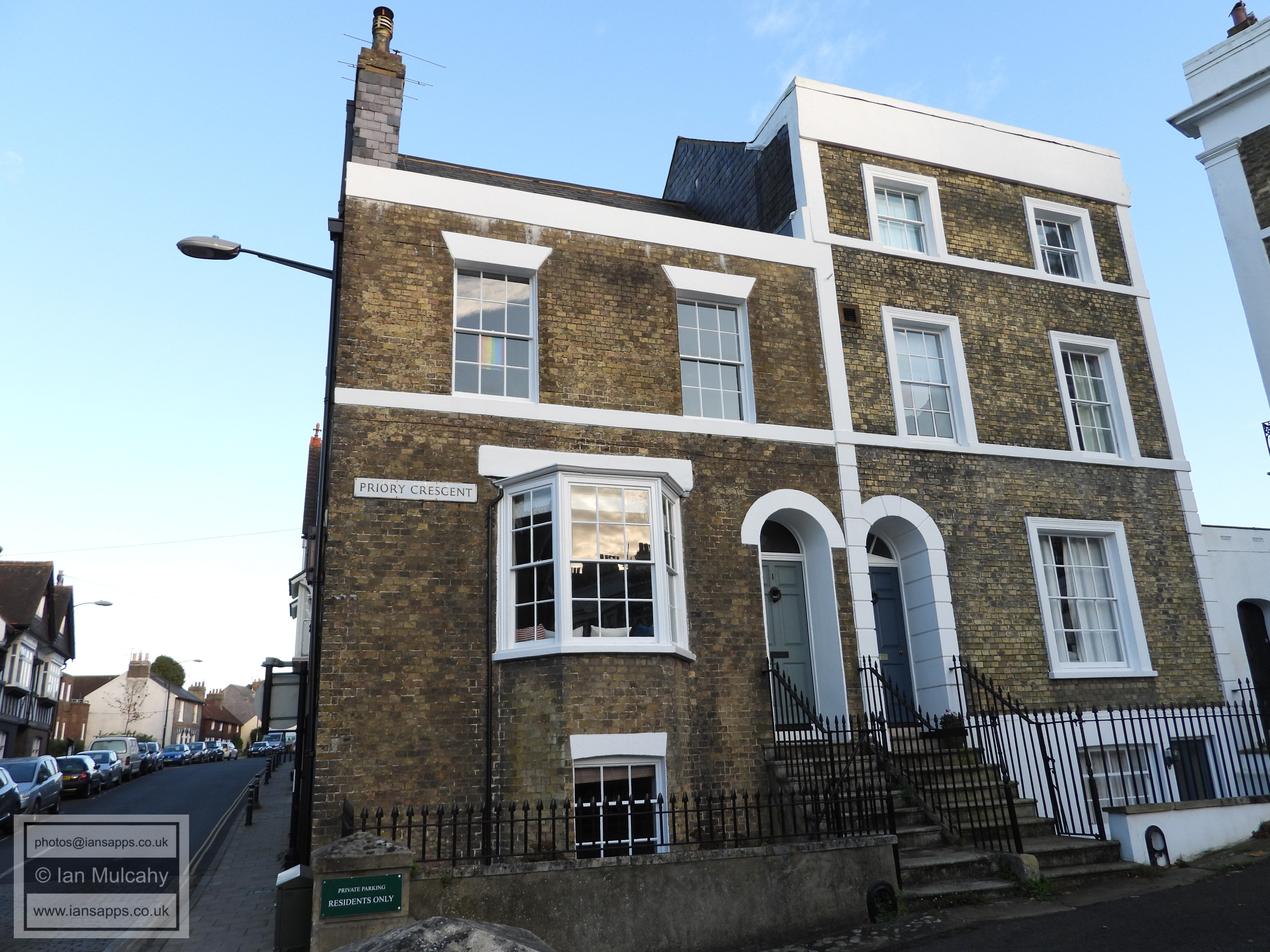 1 (left) & 2 (right) Priory Crescent and railings. Grade 2 listed building. c.1835-1845
