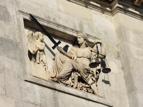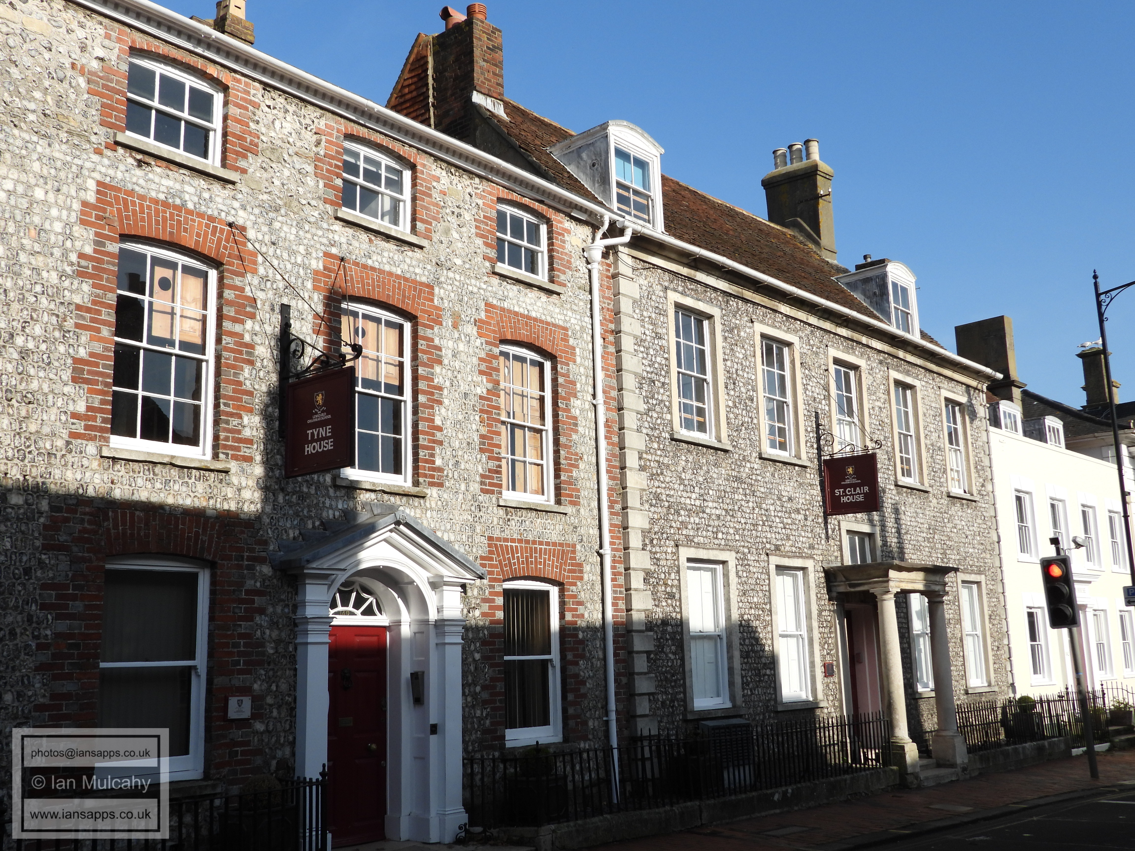 Newcastle House (High Street, left). Grade 2 listed building. 1928 Law Courts (High Street, right). Grade 2* listed building. 1808-1812