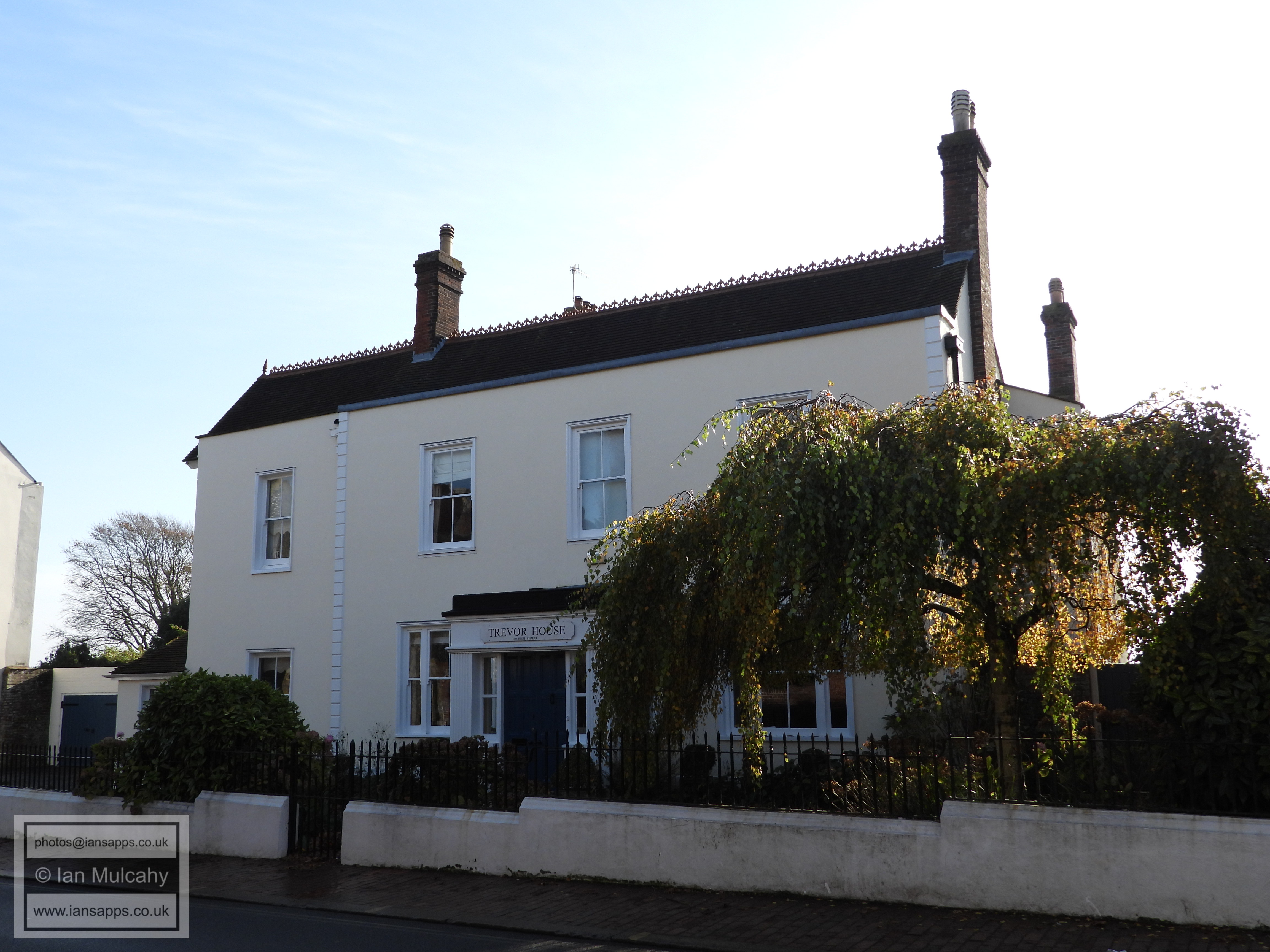 Antioch House and Railings (104 High Street). Grade 2 listed building. C17 with late C18 frontage and C19 double gabled extension to right
