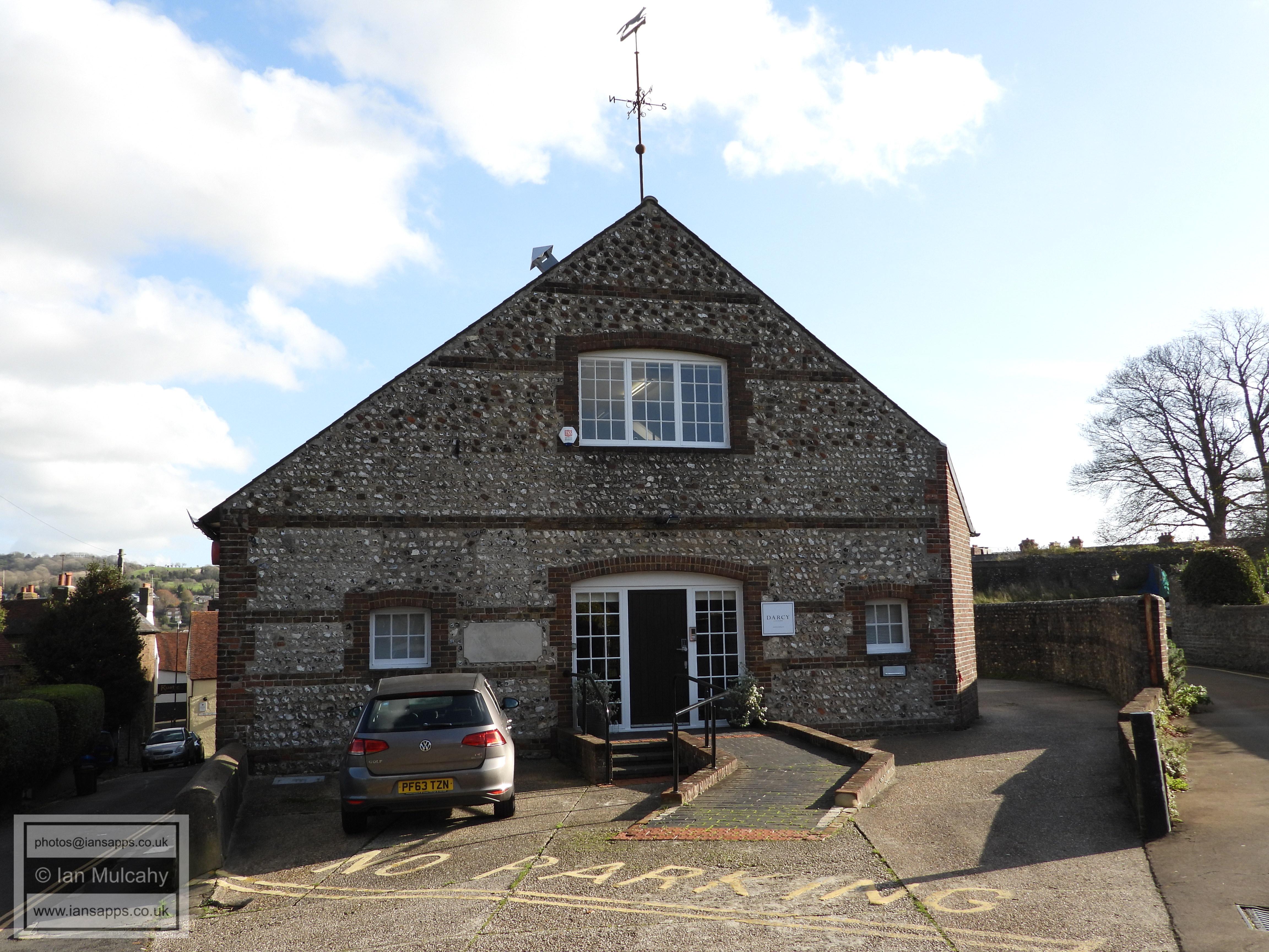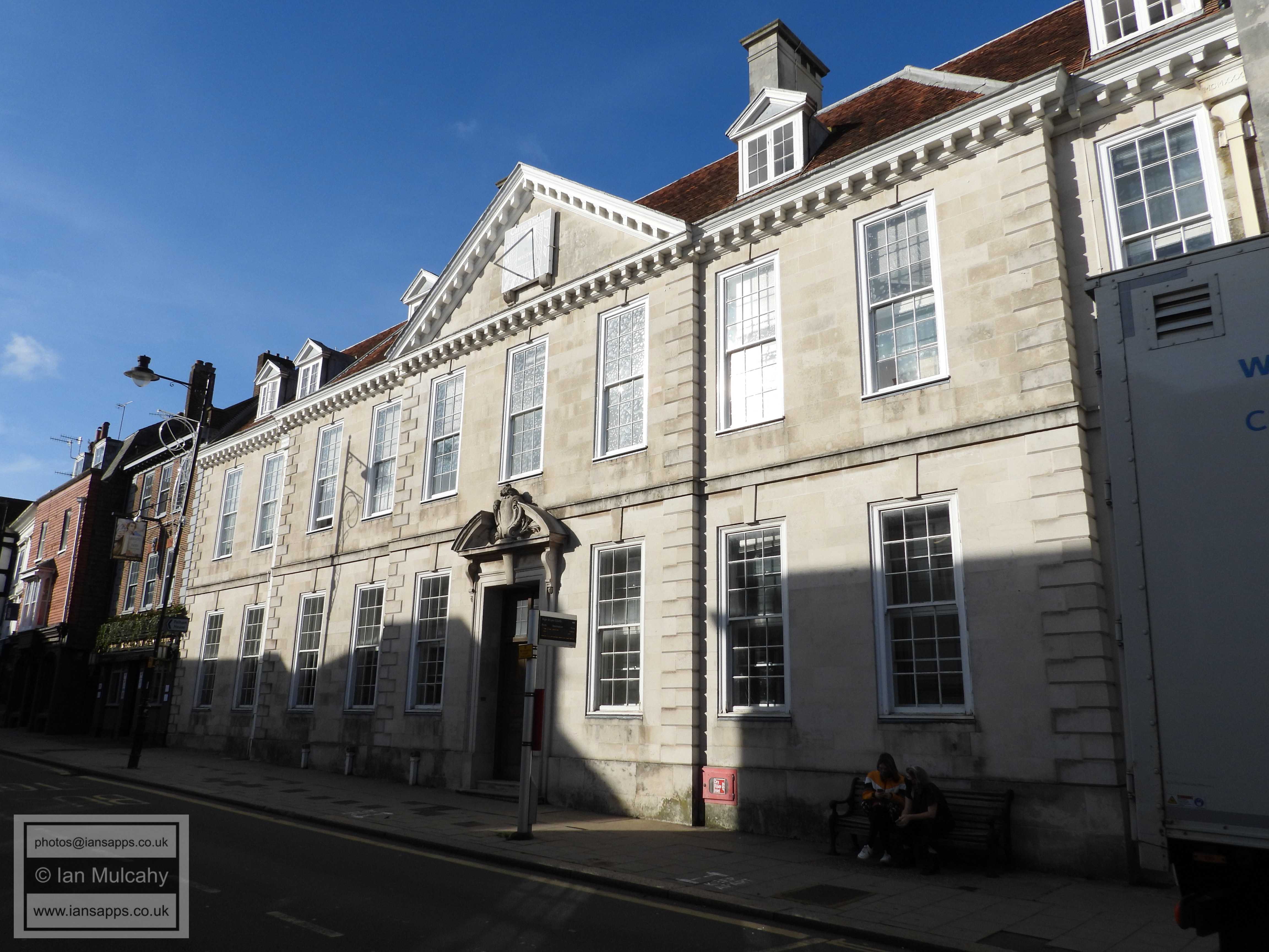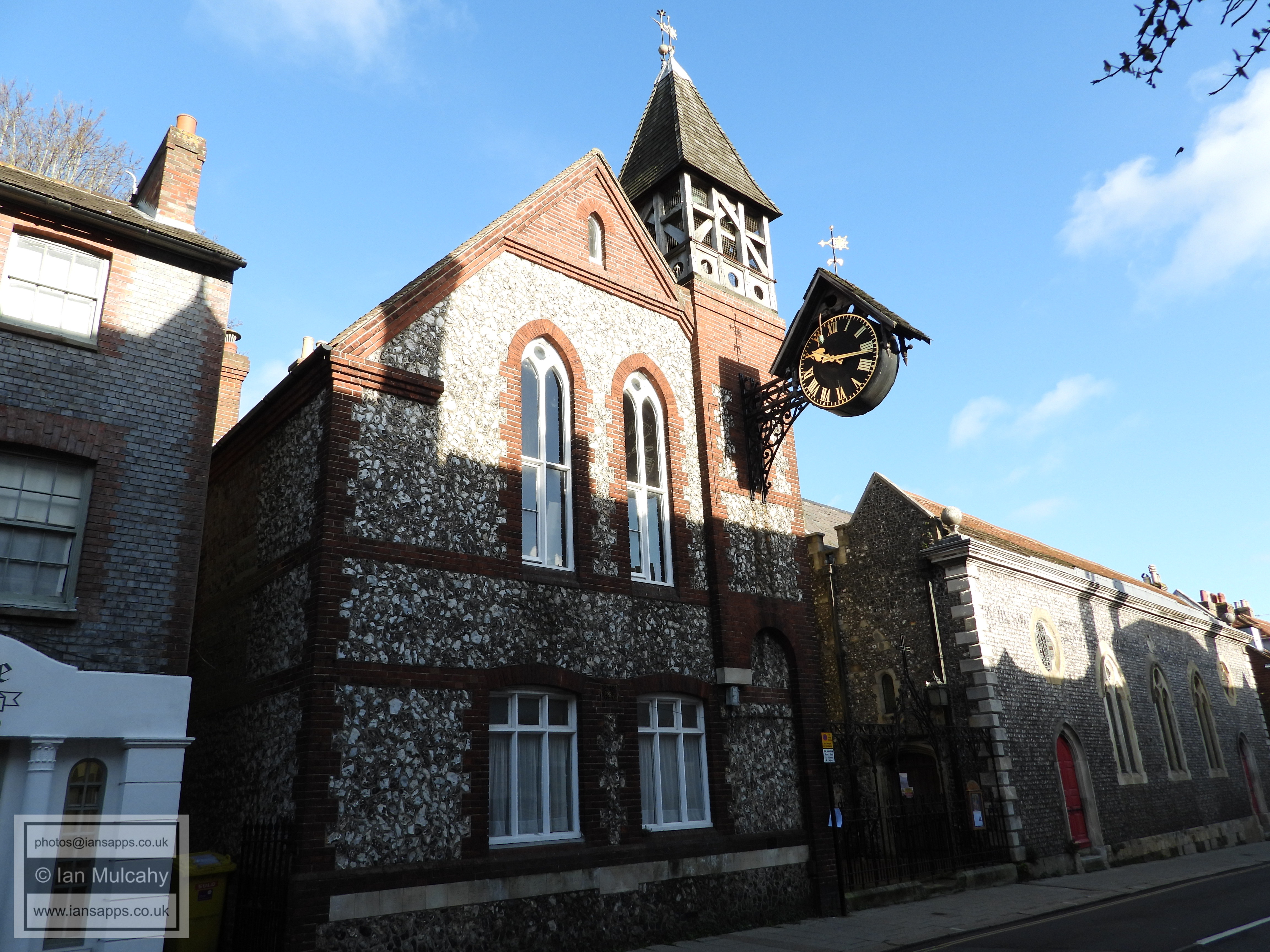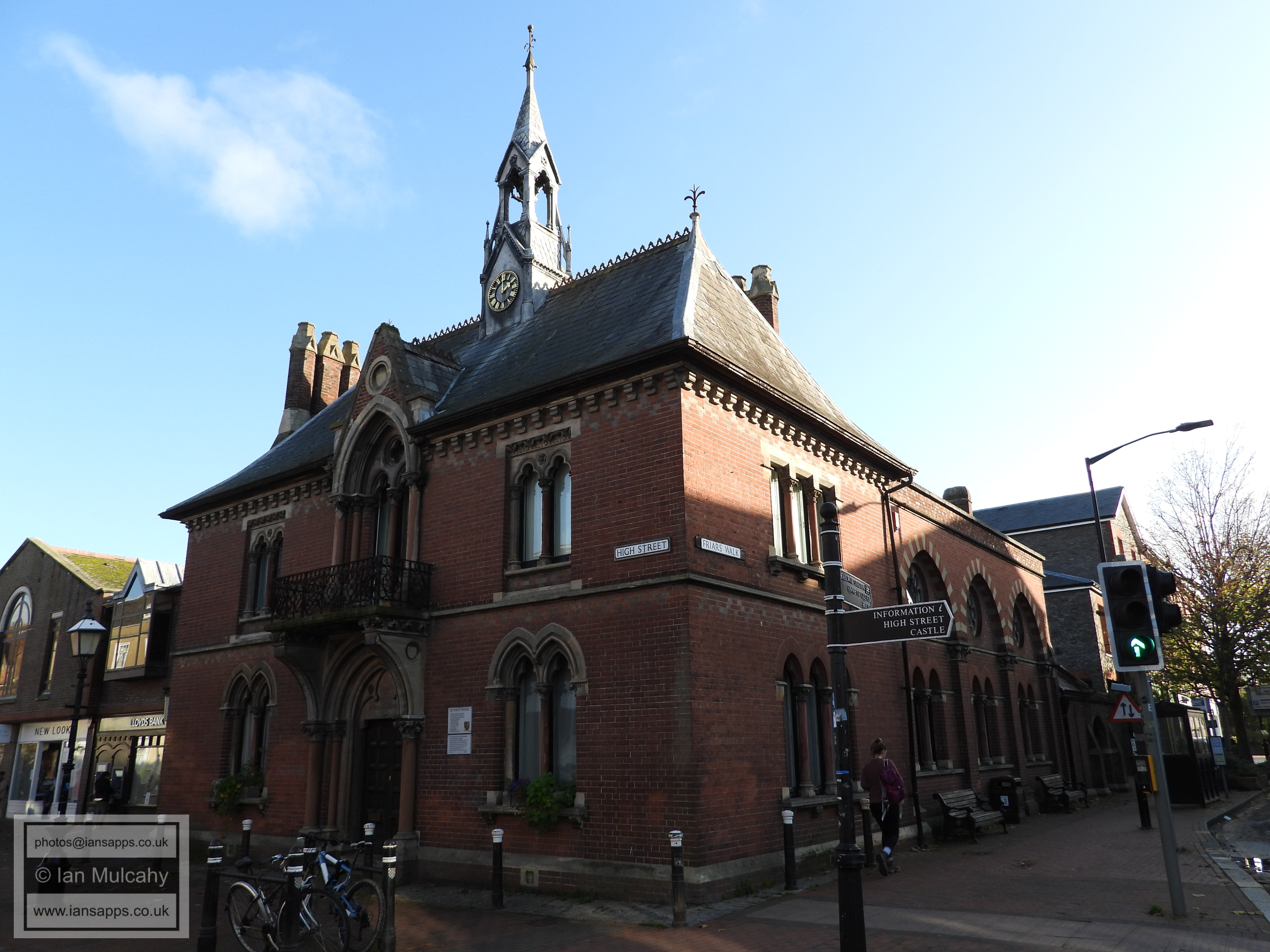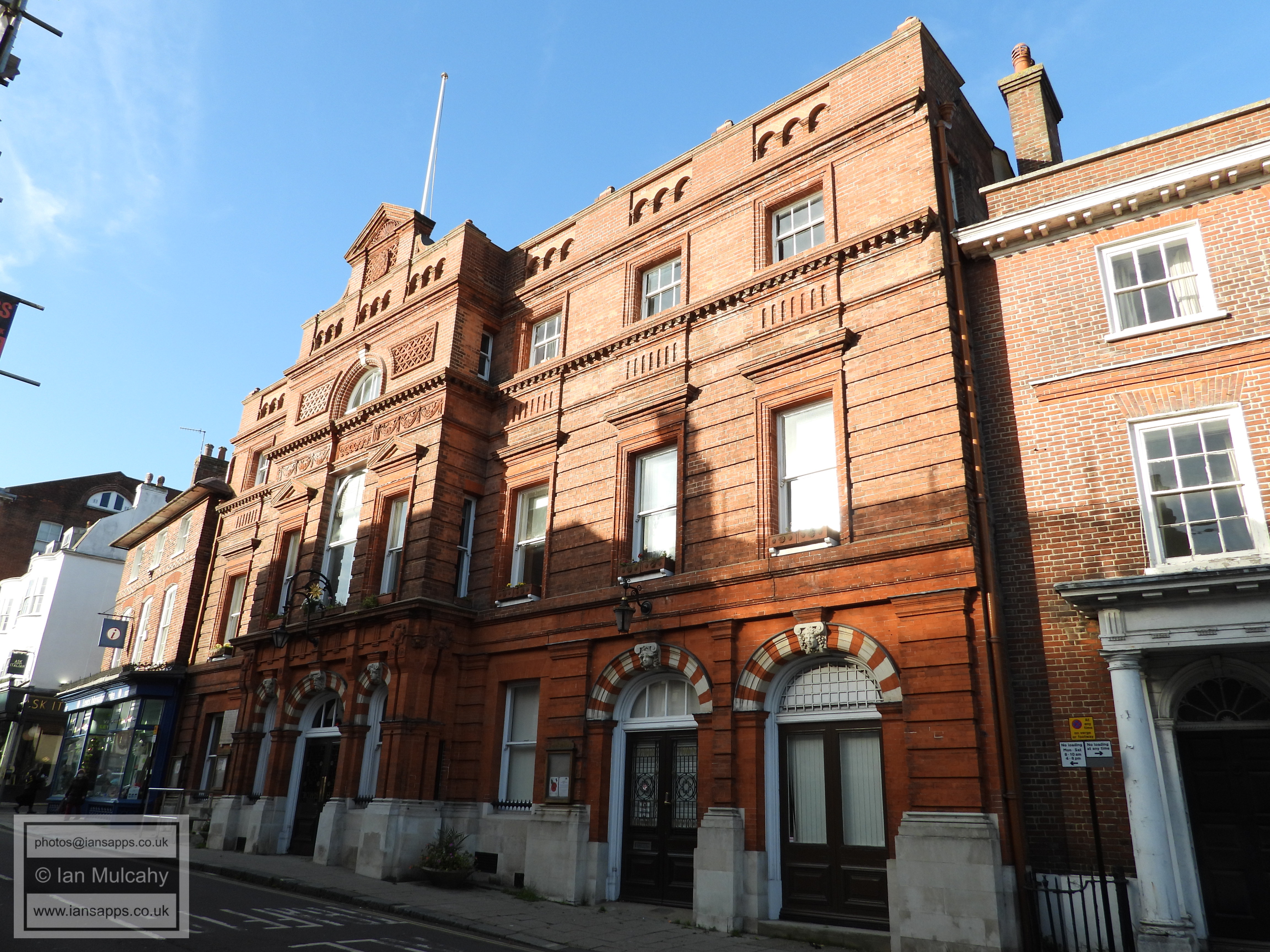 Lewes Town Hall (189 High Street, behind, left). Grade 2 listed building. C14, rebuilt above ground late C18, remodeled 1883