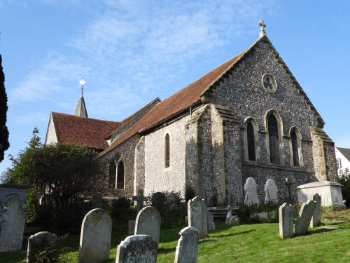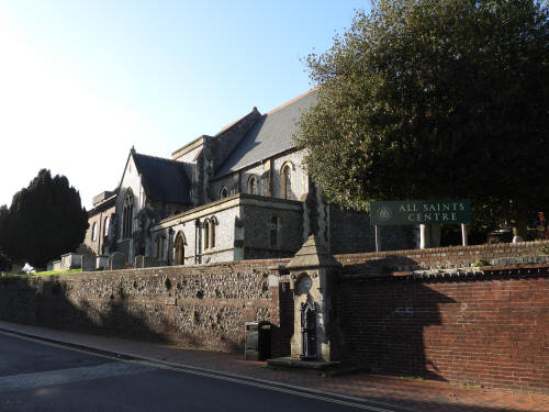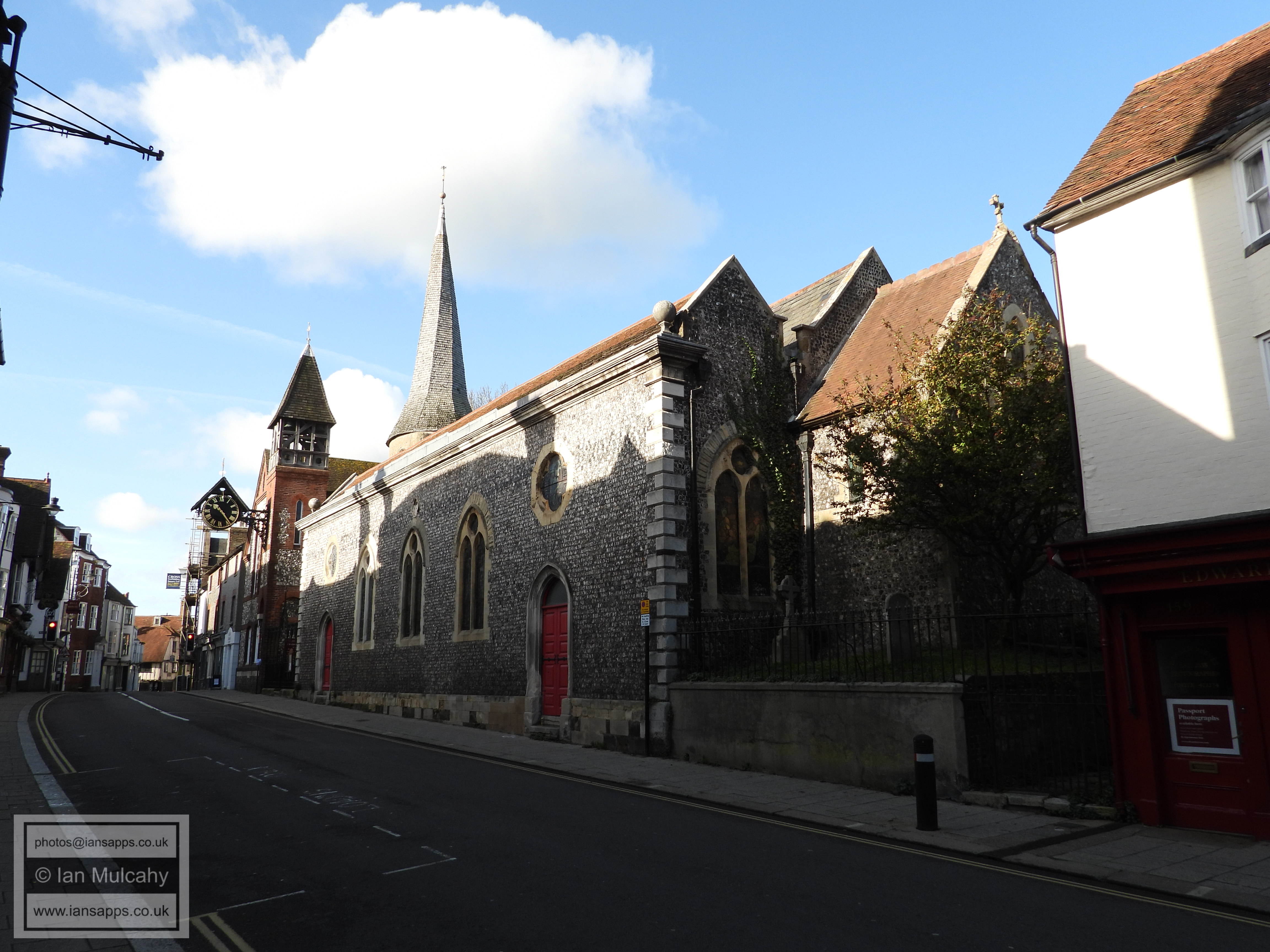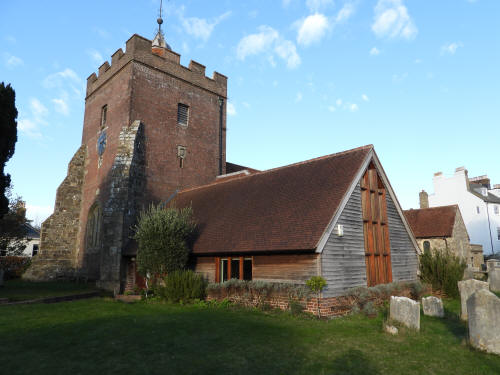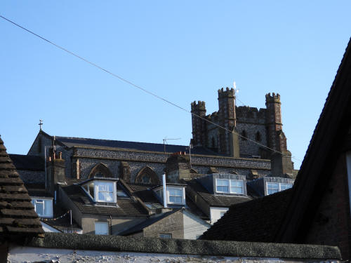 Church of St John The Baptist (Southover High Street, south side). Grade 1 listed building. Late C11 or early C12 (with C14, C18 and C19 additions).