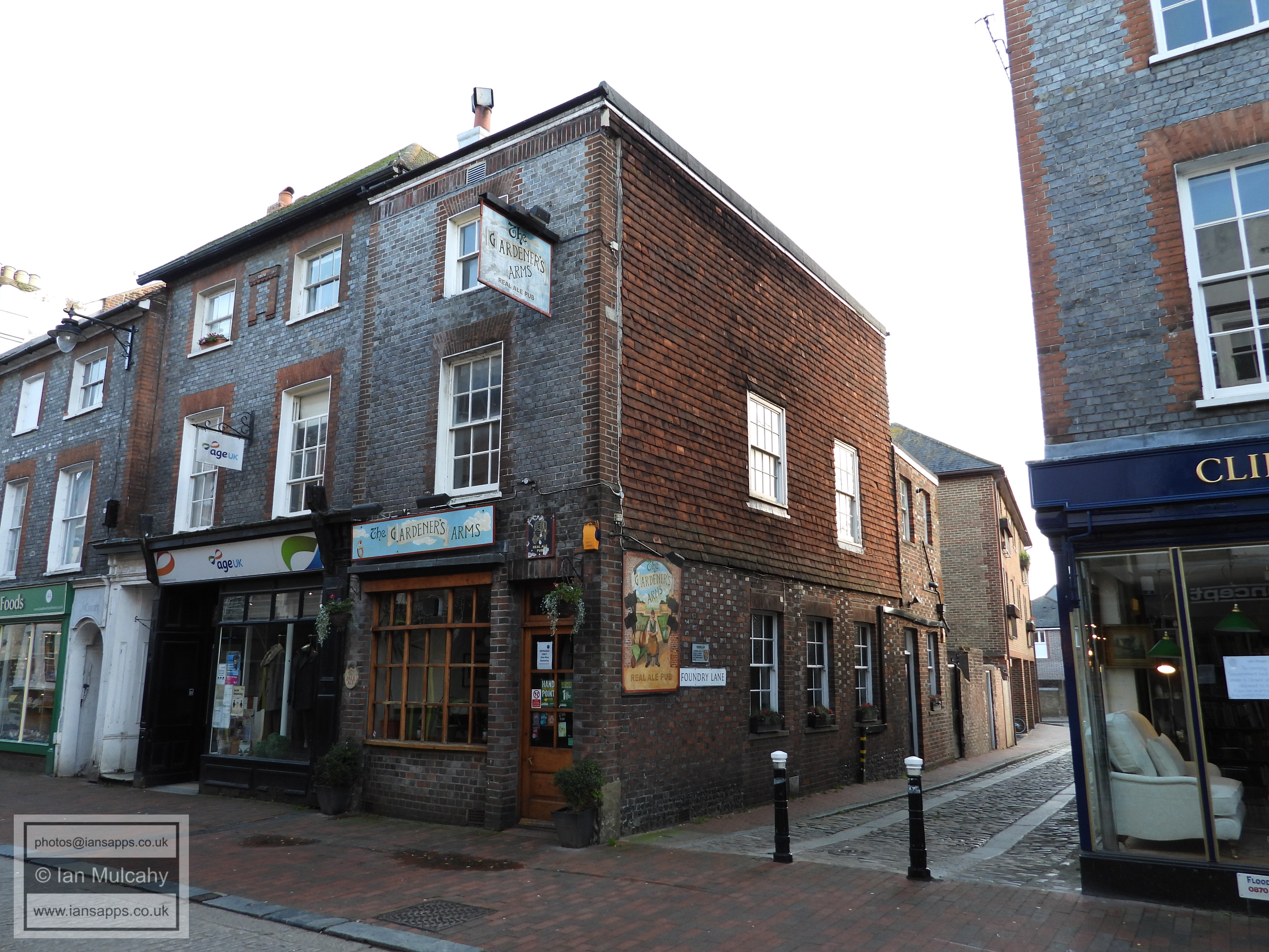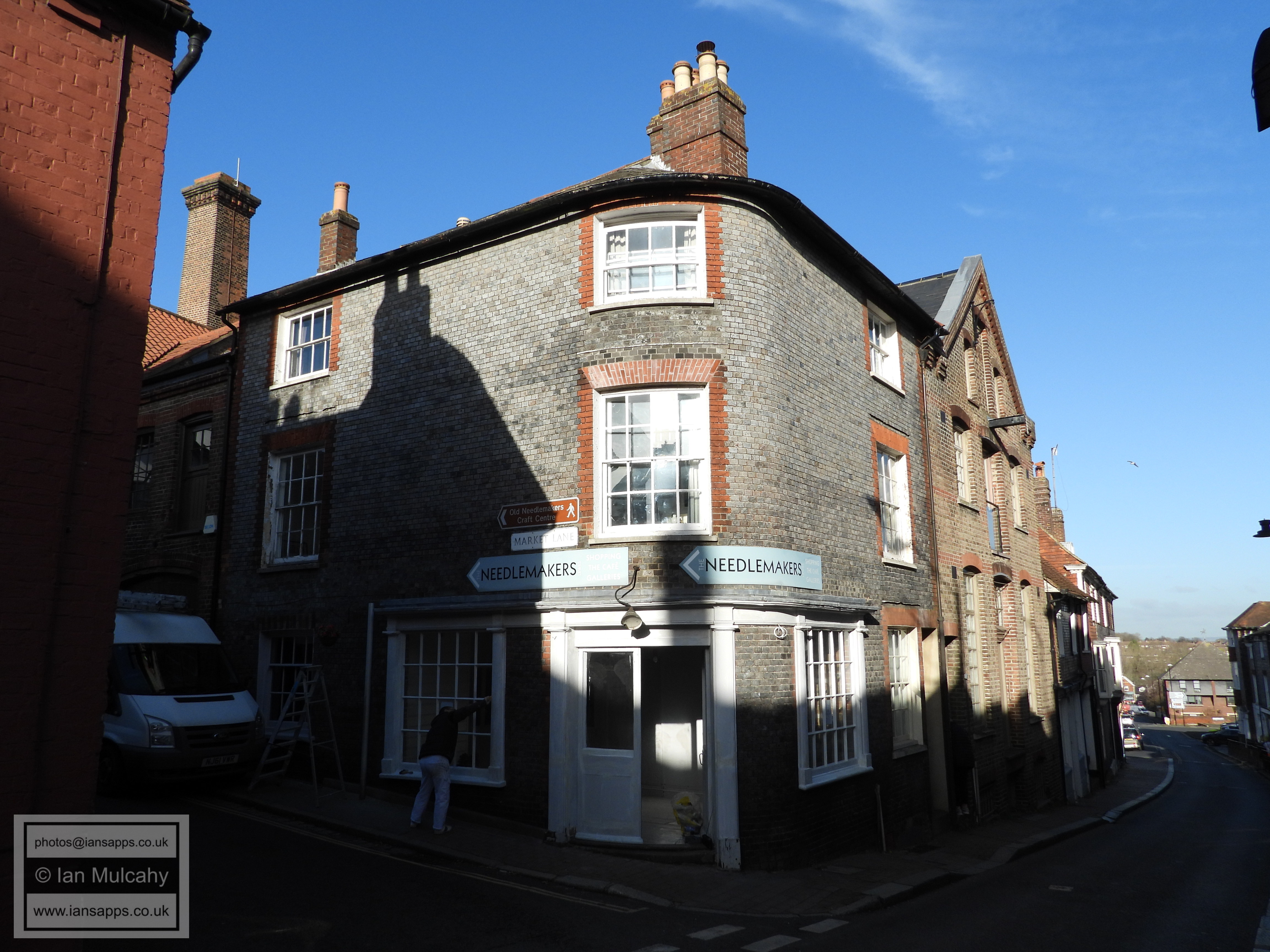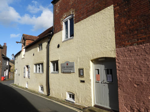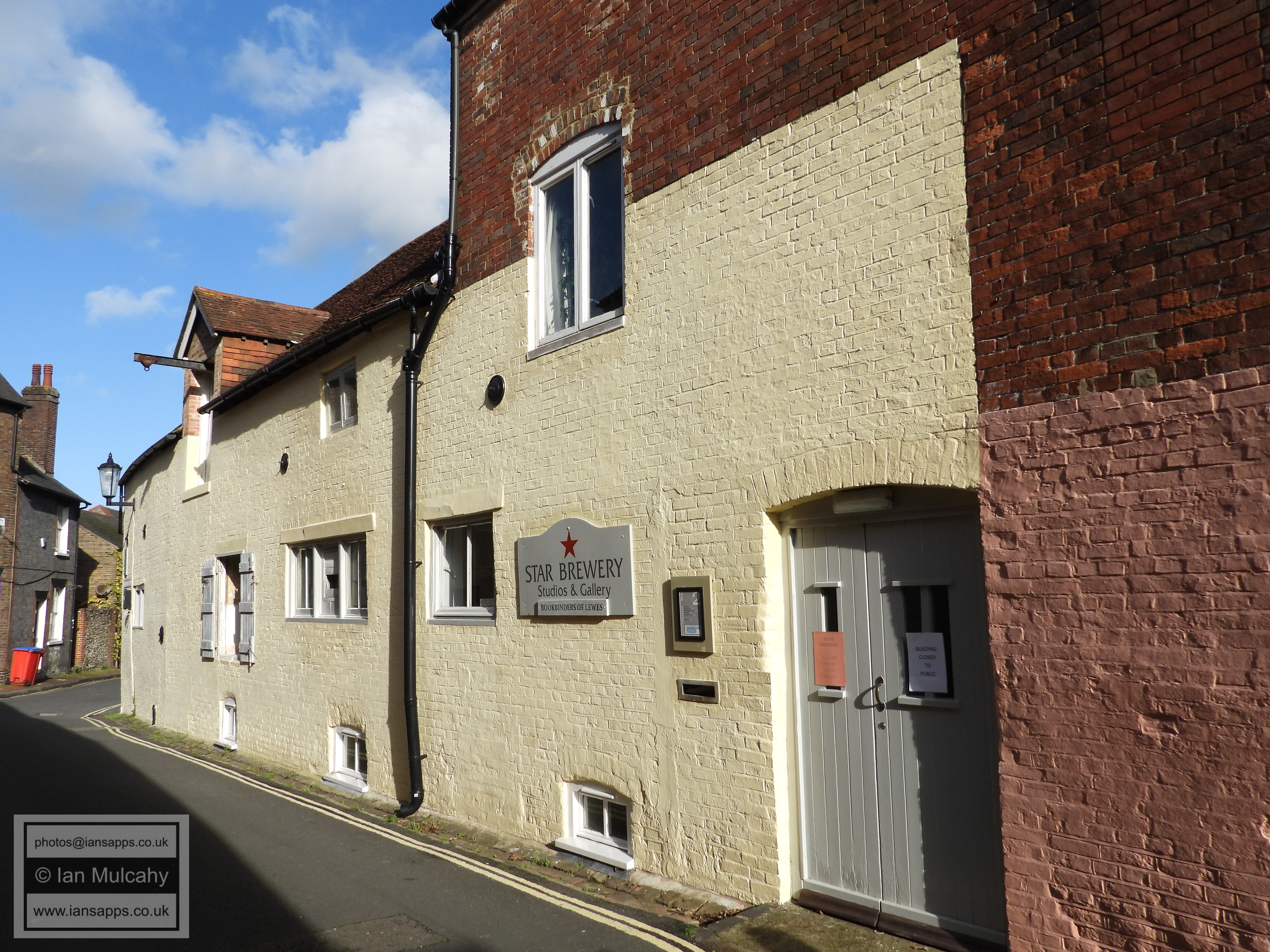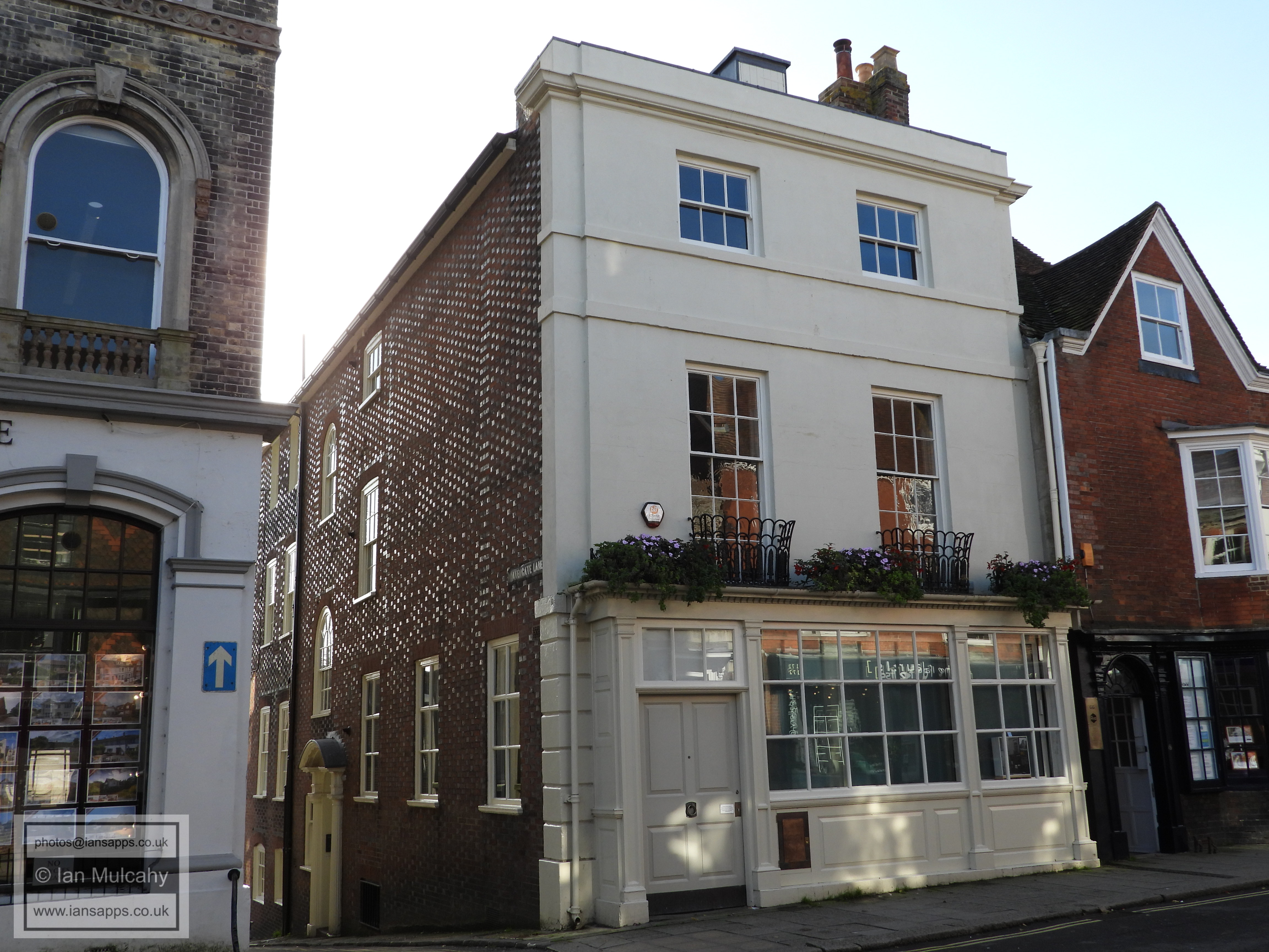 5 Fisher Street (centre left). Grade 2 listed building. Early C18 Star Brewery Gallery (rear of, Castle Ditch Lane, right). Grade 2 listed building. Late C18, altered C19