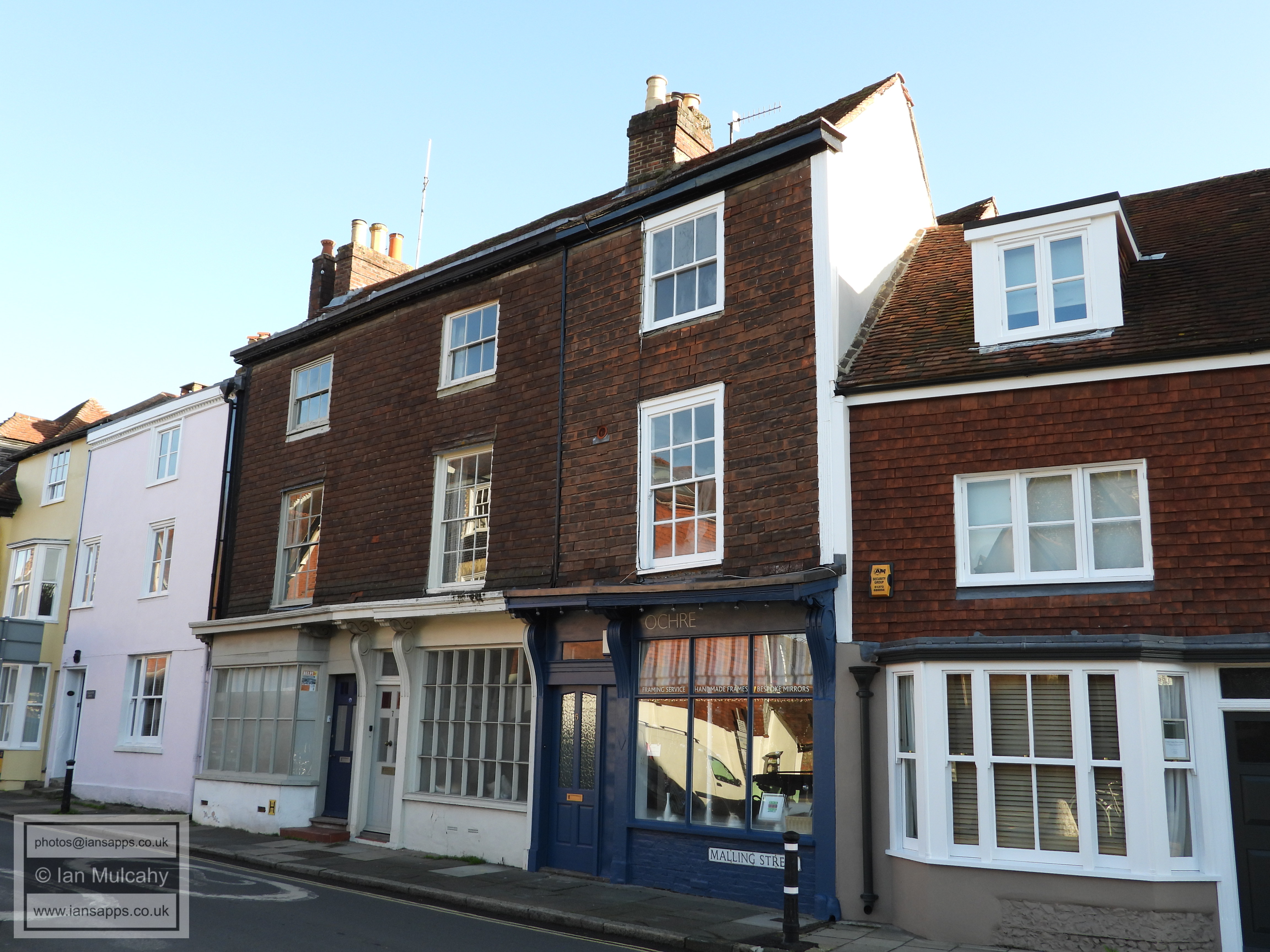 8 Malling Street (centre). Grade 2 listed building. Late C18 or early C19