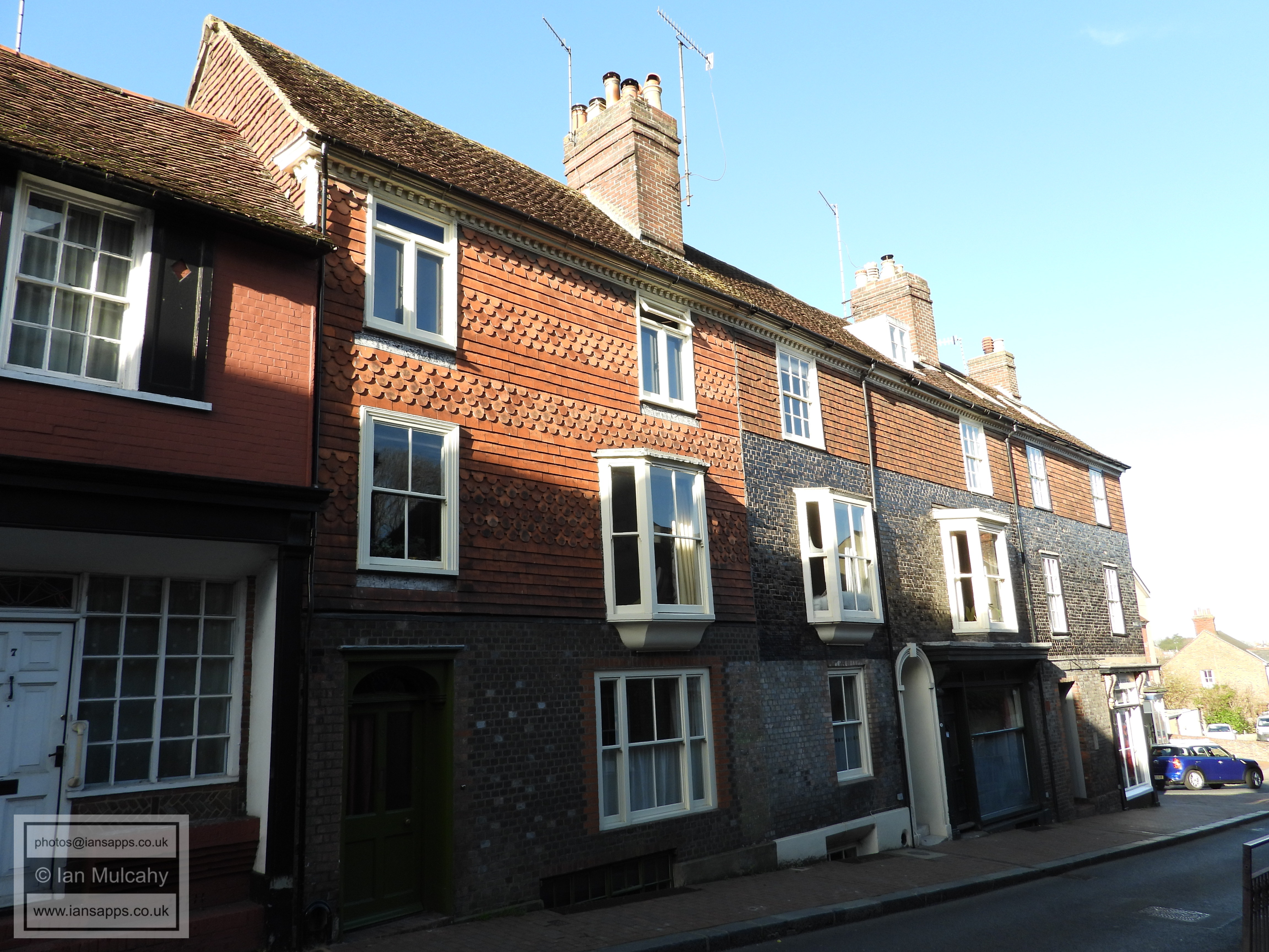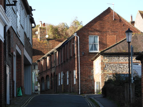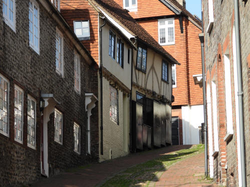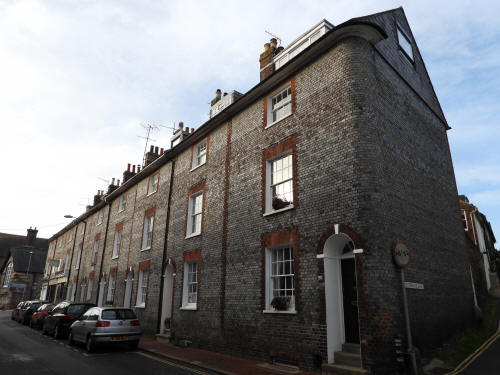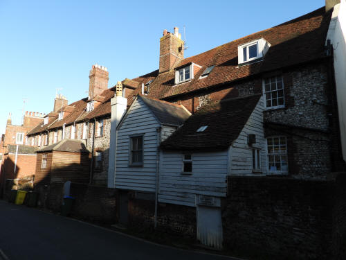 10 Keere Street (left centre). Grade 2 listed building. Mid C18 St Michaels Court, Keere Street (right centre). Grade 2 listed building. Early C18, rebuilt 1846
