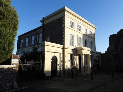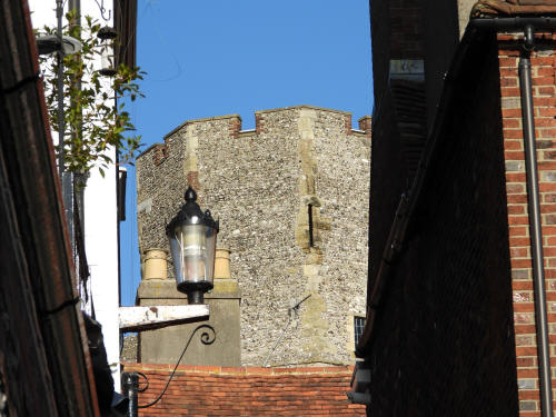 Keep to Lewes Castle. Scheduled Ancient Monument and Grade 1 listed building. C13 (86 High Street in front. Grade 2 listed building. Mid C19)