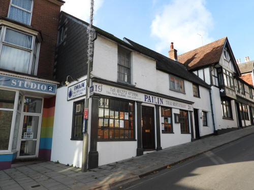 St Johns Timbers (left - 49 & 50 Southover High Street) Grade 2 listed building. C16 51 Southover High Street (corner plot) Grade 2 listed building. C16