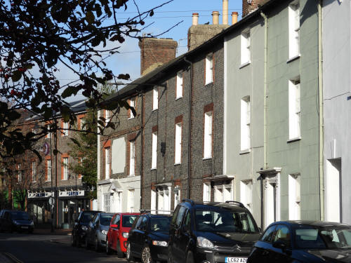Sun Street (odd numbers from 43, left, to 3, in the distance). A terrace of Grade 2 listed buildings from the early to mid C19.